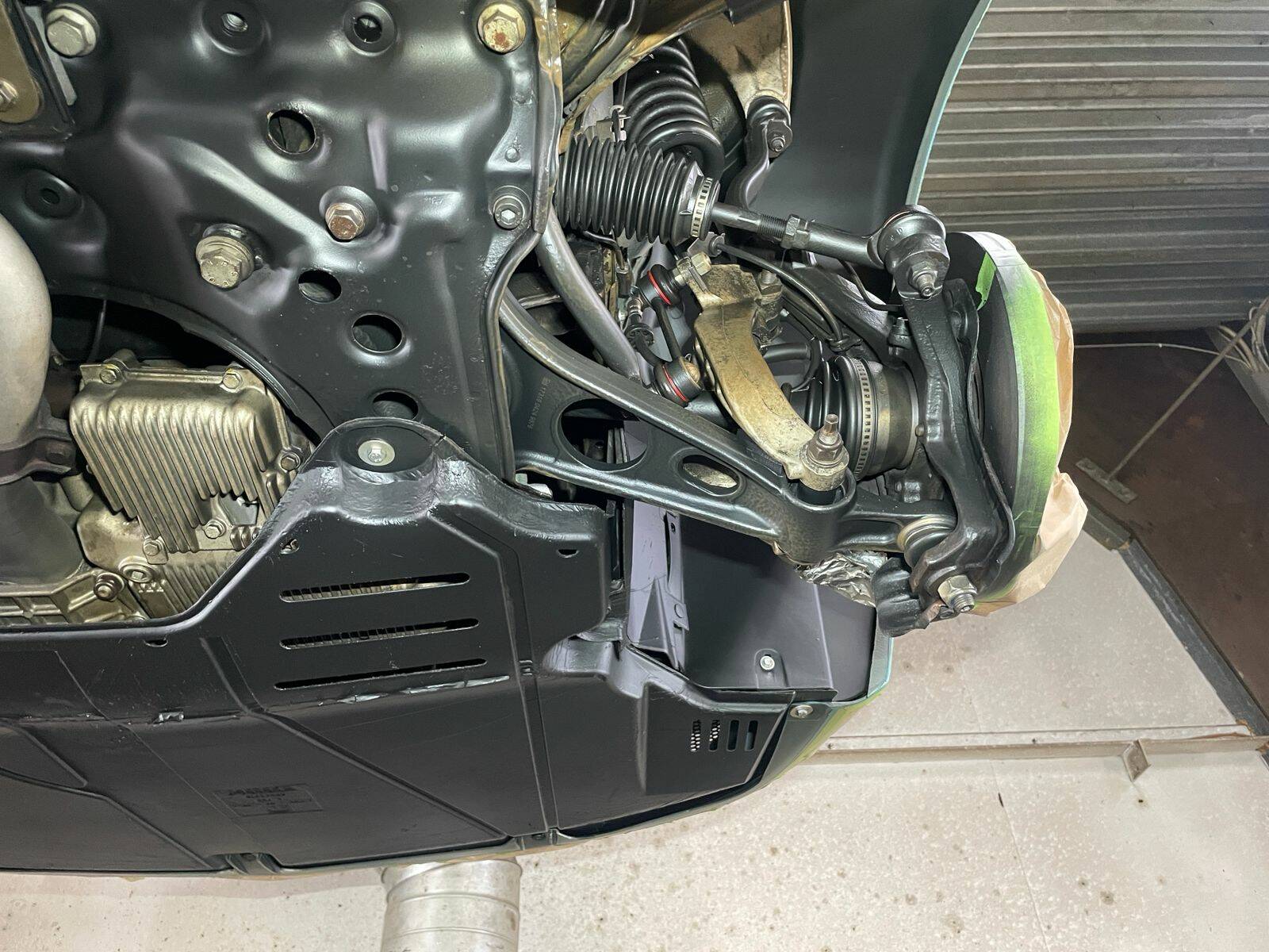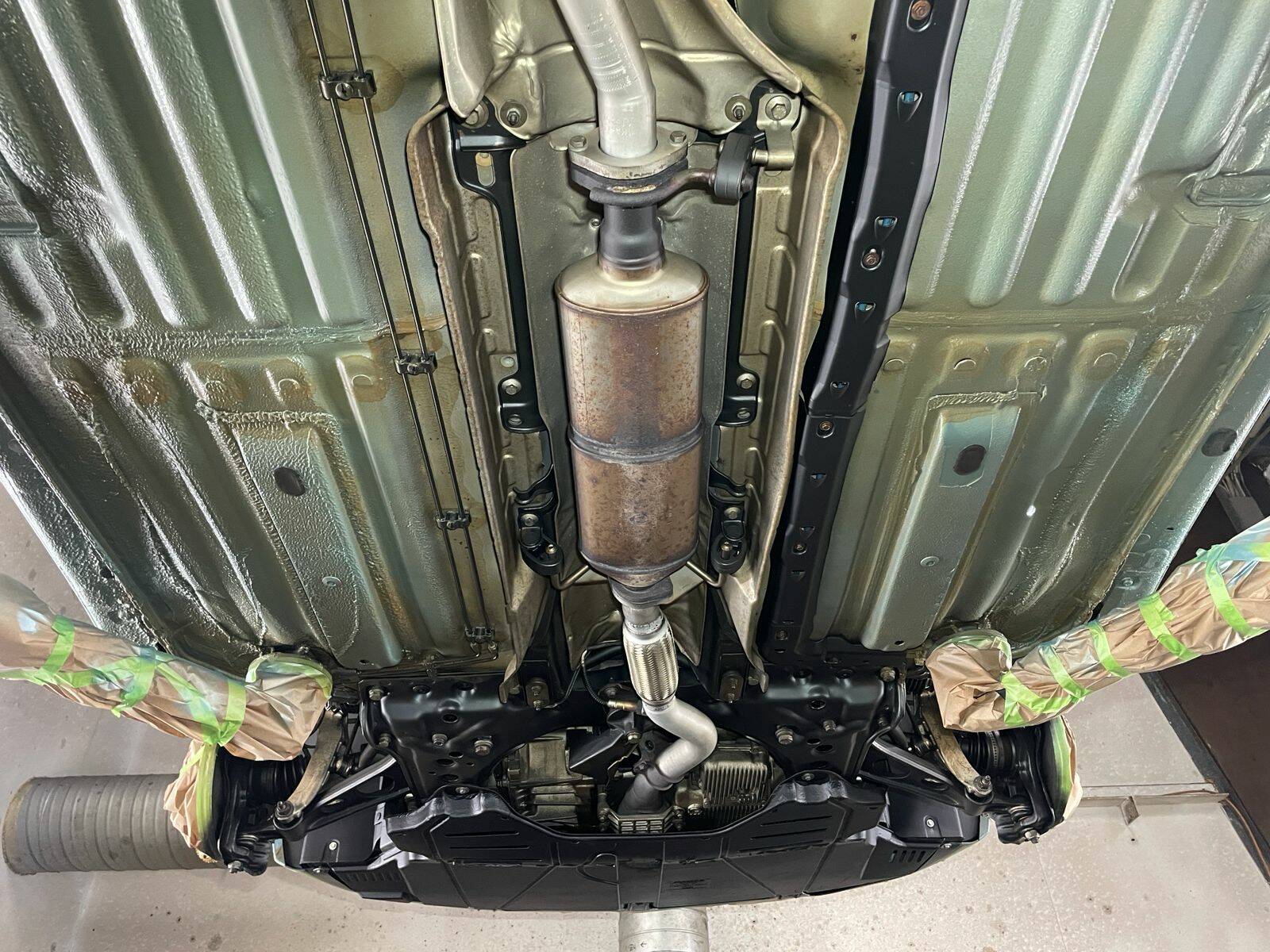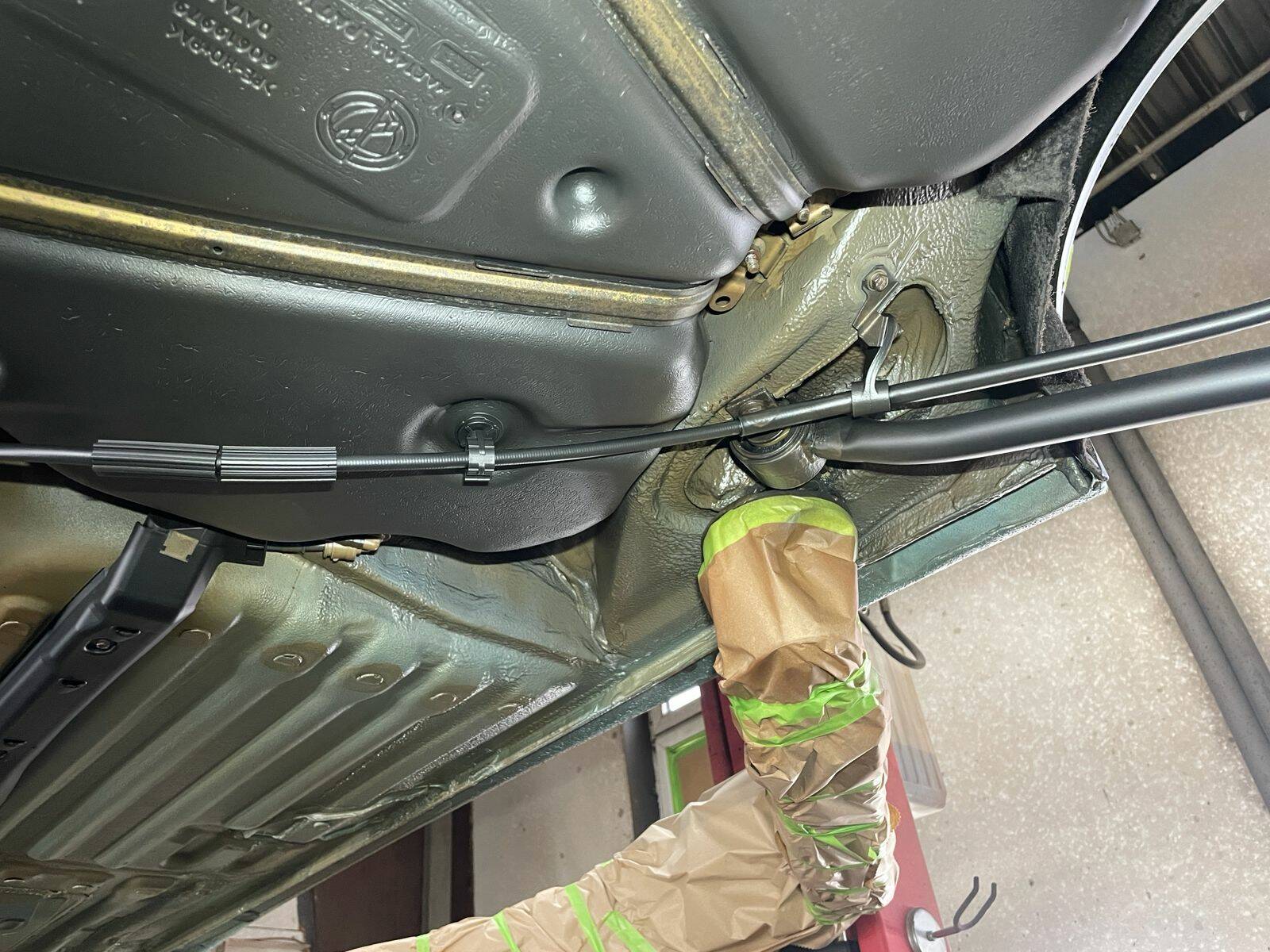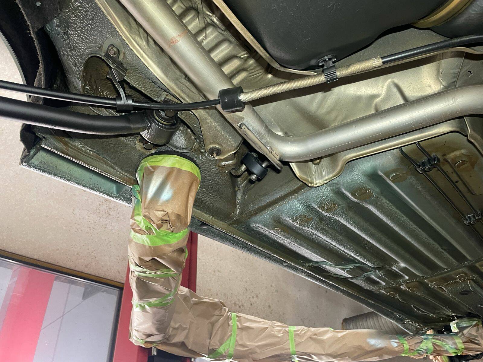 Von unten ist er genauso sauber wie obenrum, die klassischen Roststellen sucht man vergeblich. Vermutlich hatte das Auto keinen Wintereinsatz. Damit das so bleibt, wurde er aufwändig Eis-gestrahlt und versiegelt.