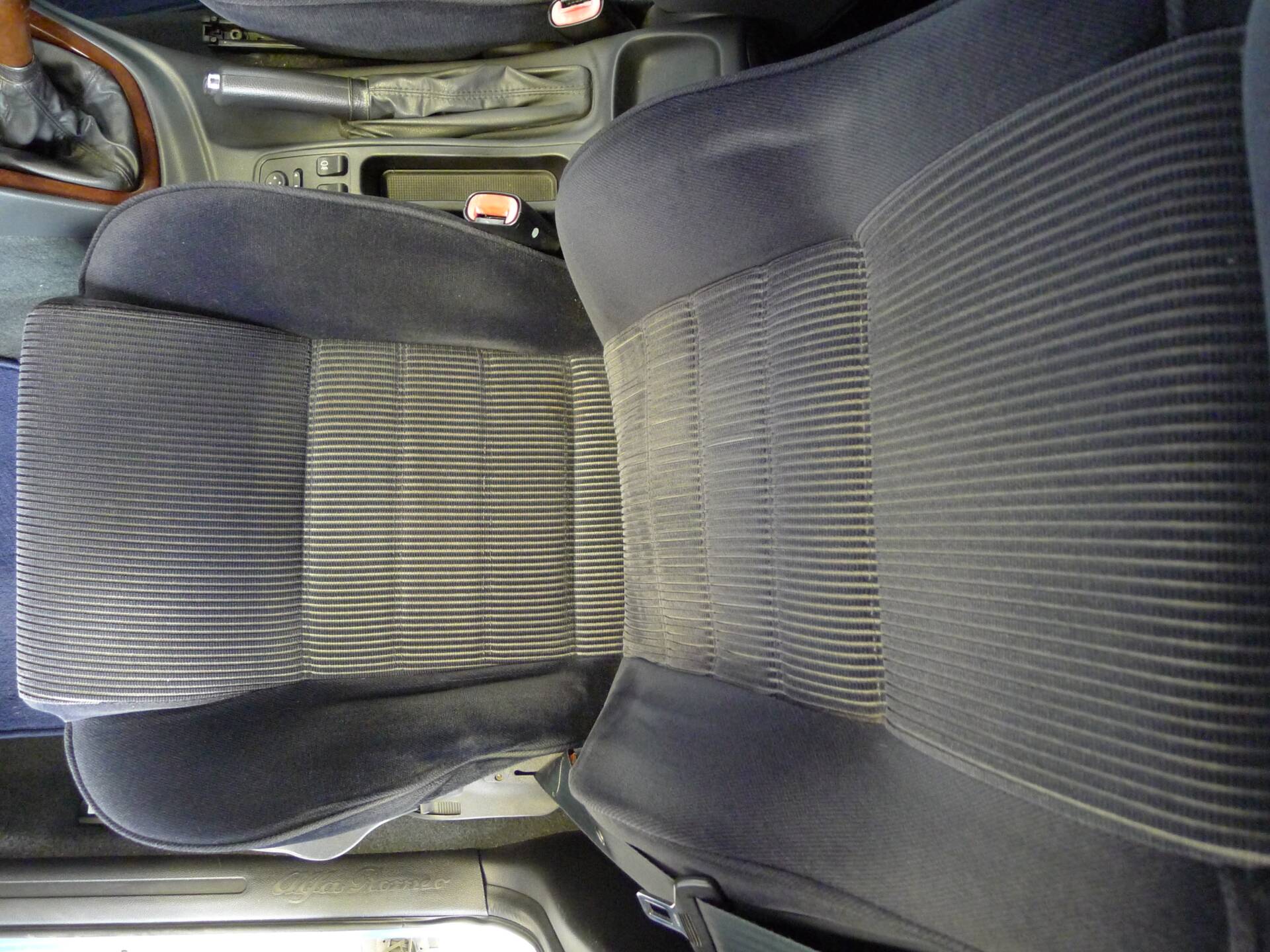 Der Innenraum mit der schönen blauen Velour-Ausstattung ist makellos, das originale Alfa Romeo Cassettenradio liefert Wohlklang auf allen Plätzen.