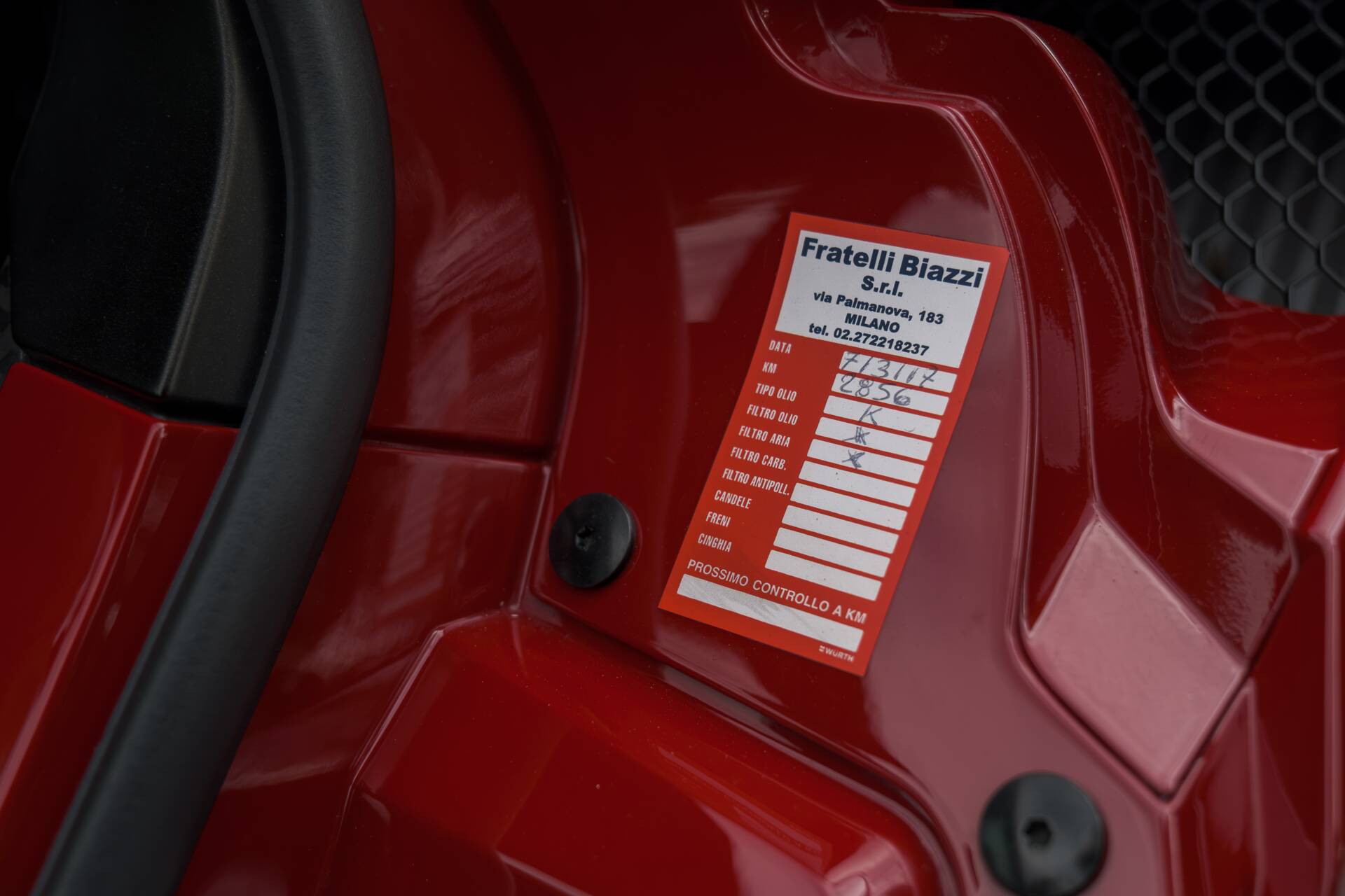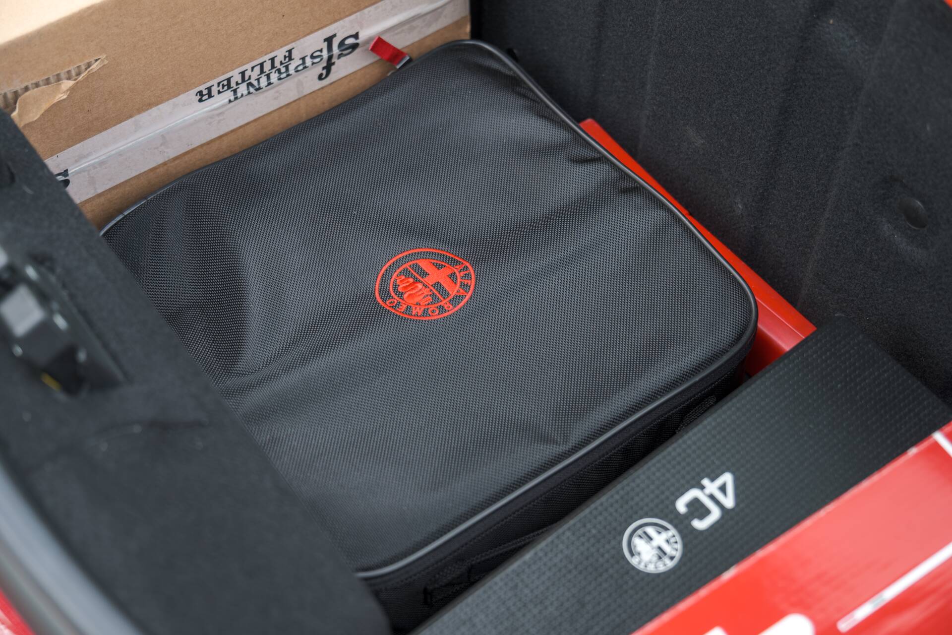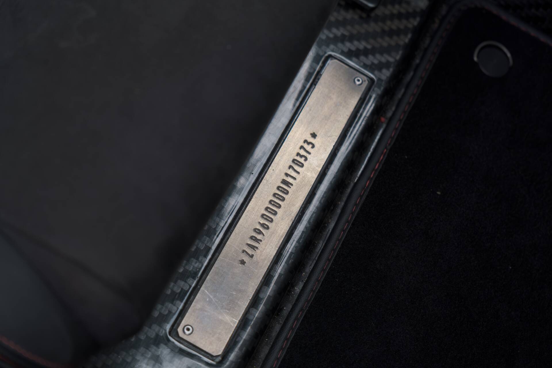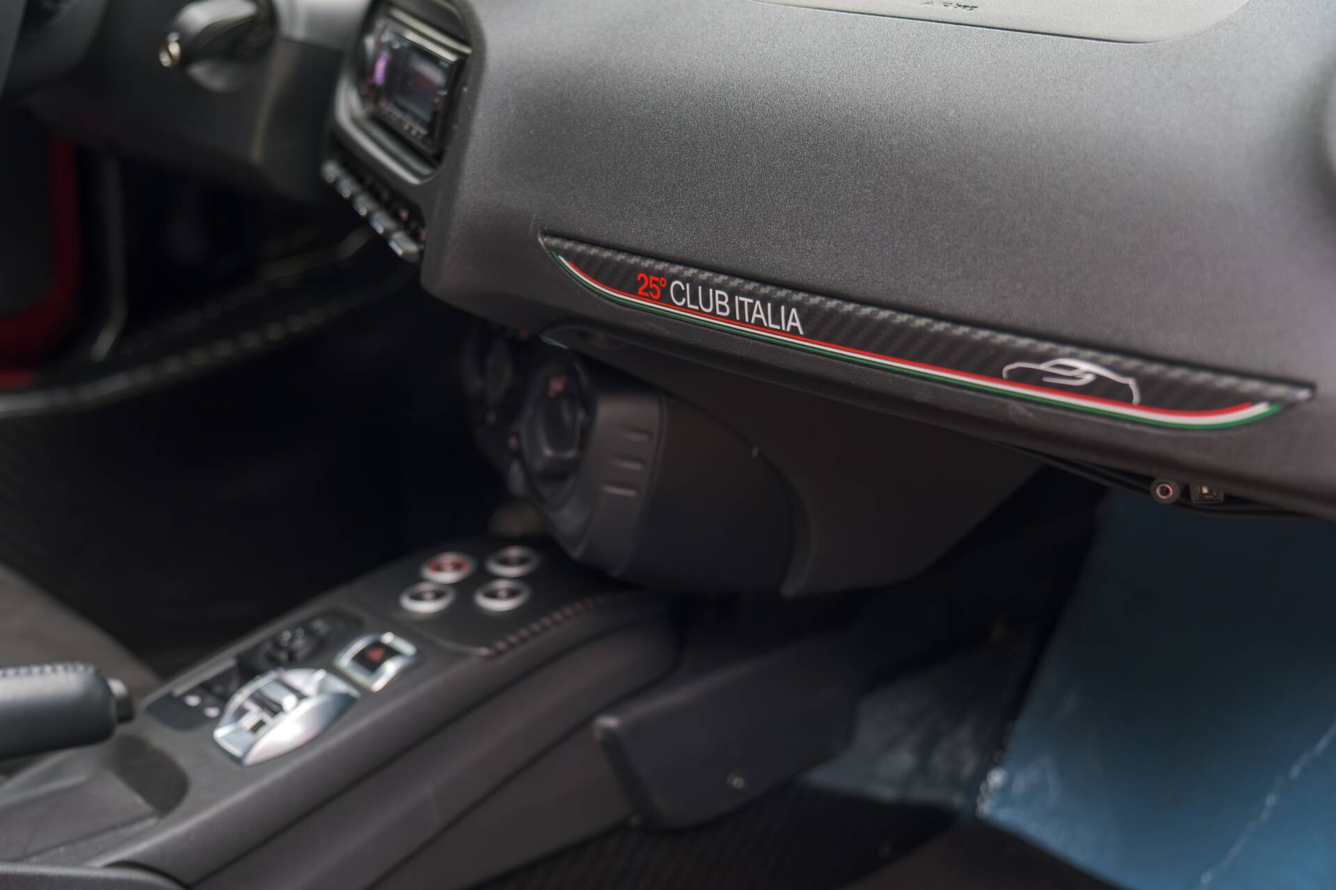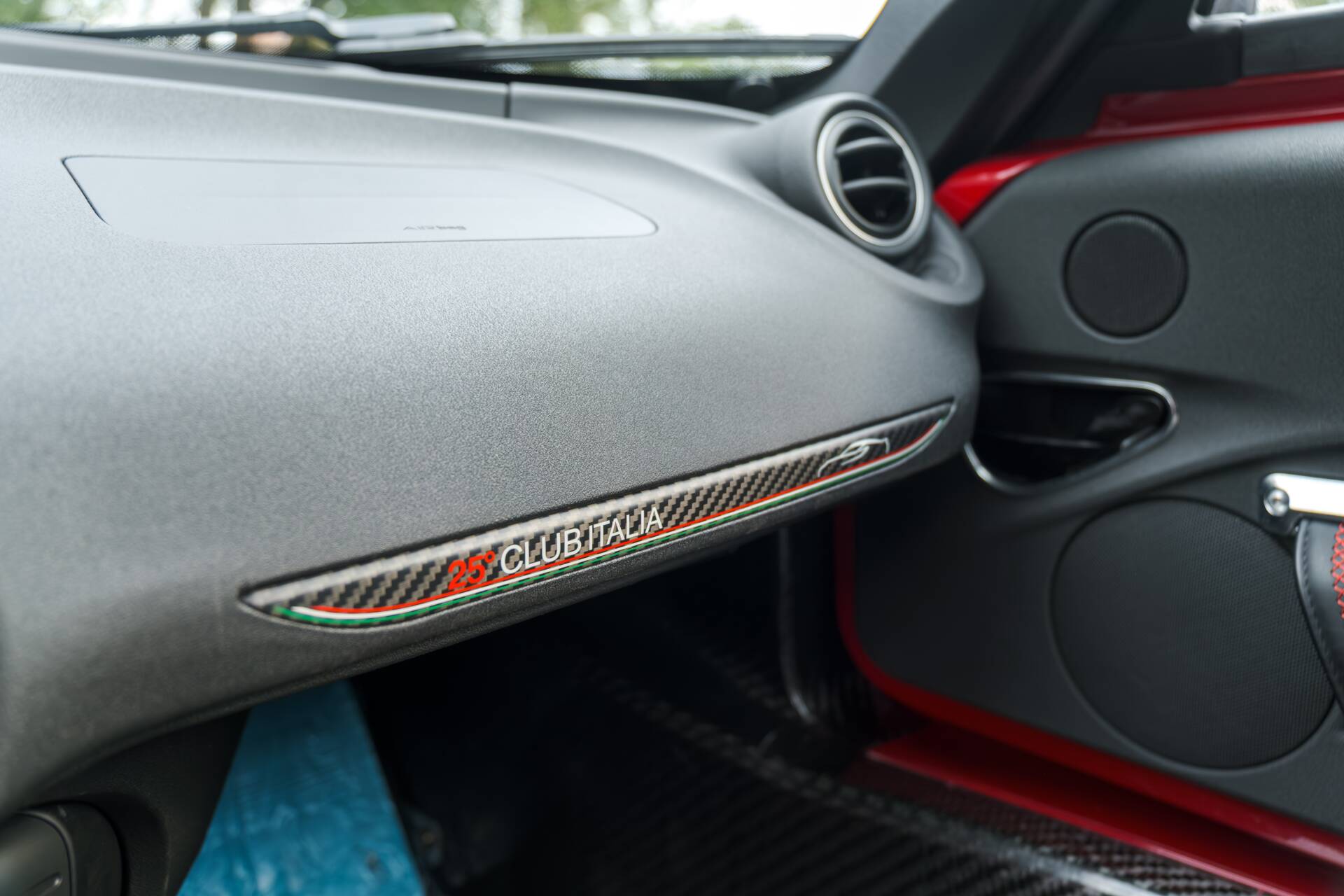 Pintado en un rojo especial inspirado en los Alfa de competición de finales de los 60. Detalles tricolores, escudos del Club Italia, y una placa que deja claro: número 1 y único.