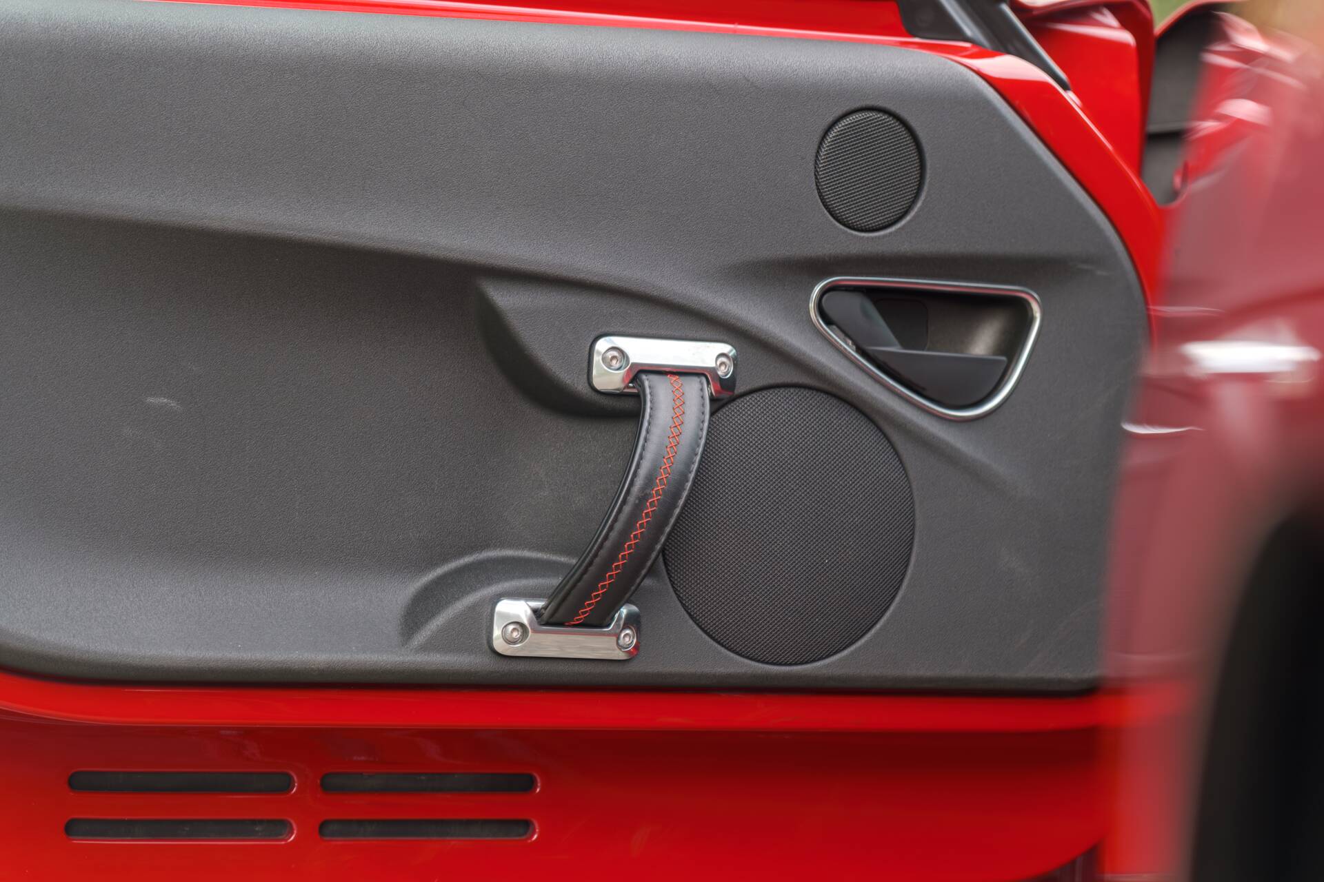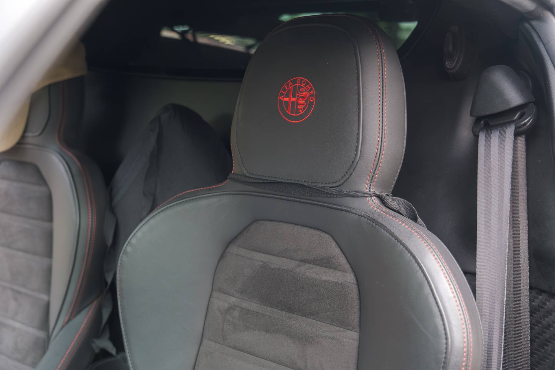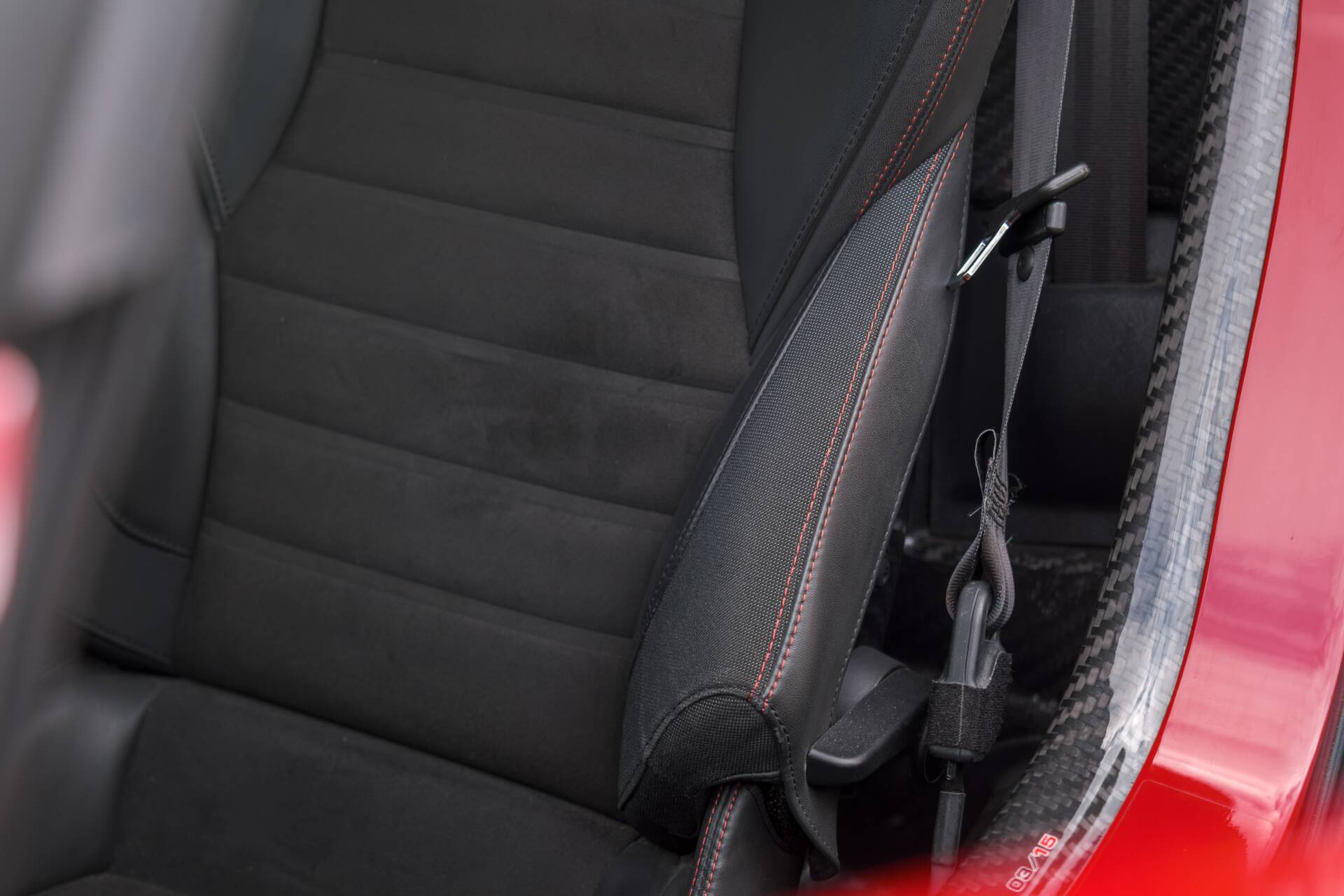 Interior con cuero, Alcantara y costuras rojas. Sin pantallas, sin artificios. Solo un habitáculo que grita: Condúceme – pero bien.