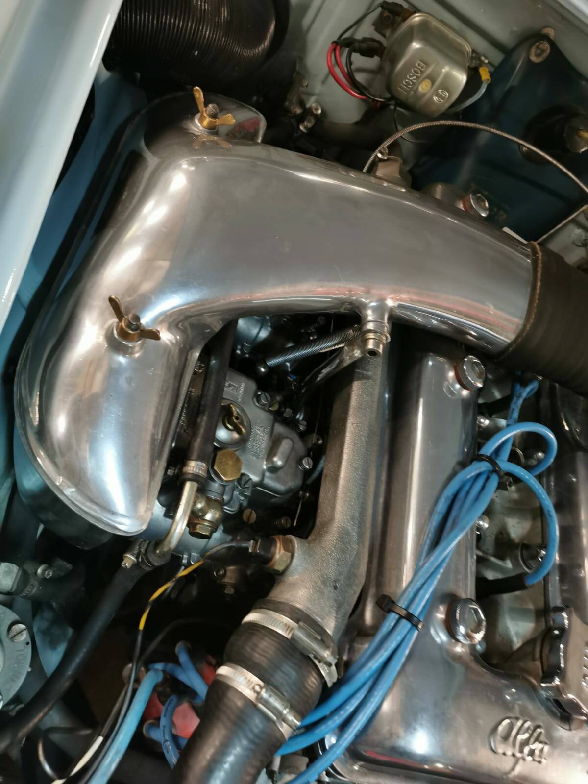 Elle a été En Tiè Re Ment Restaurée, Book complet, documents et un important dossier photos l'accompagne et la suive au fil des années - Démontée Complètement, Tout a été refait à Neuf, vérifié, validé, et Tel que d'origine ... Moteur, boite, freinage, essieu, châssis, triangles, rotules, silentblocs, suspension, électricité, manomètres, chrome et inox, enjoliveur divers, sellerie, planche de bord supérieure, capote, installé moquette sol et tapis, réservoir, circuit essence, pompe à eau, refroidissement, radiateur, compartiment coffre, roue de secours, cric, accessoires; avec ses soubassements en très bon état, Absolument Aucune Corrosion, Pas de rouille, Zéro !! Aussi Tout avait été traité, et ensuite repeint en couleur caisse comme d'origine Alfa Romeo Usine - (Pas de Blackson et/ou d'anti-gravillon qui pourrait faire office de camouflage)