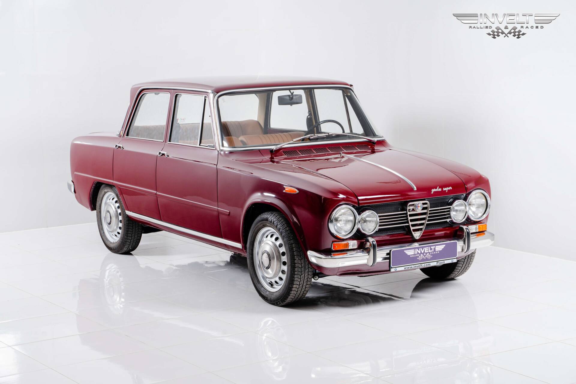 Classic Alfa Romeo Giulia Super 1600 1967 fo sale. First sold to Denmark. This concrete model is Giulia Super with 1,6l engine, feeded by twin Weber caburators, produce power of 100hp. With 5-speed gearbox it can accelerate from 0 to 100km/h in 12s and the top speed is 175km/h. The car is in excelent technical condition. Fully running car. All suspension and brake parts new. Body color Amaranth red, leather beige interior. More information and other cars for sale here: https://www.inveltcollection.com/alfa-romeo-giulia-super/p-15/