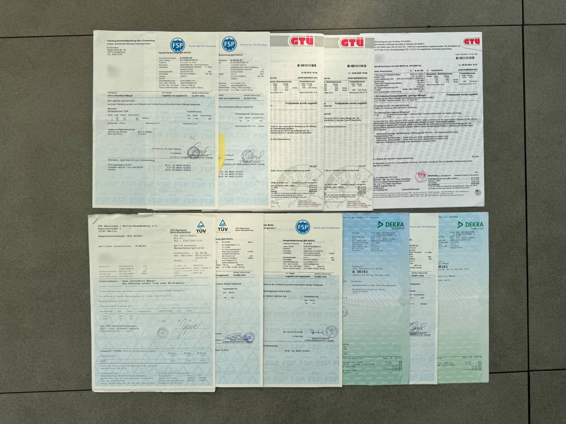 Neben der erwähnten Kaufrechnung liegen dem Angebot zufolge aktuelle Wartungsnachweise vor. Weitere Dokumente wie Scheckheft, TÜV-Berichte oder ein Classic-Data-Gutachten werden im Exposé nicht explizit genannt. Zum technischen Zustand liegen keine detaillierten Angaben eines Sachverständigen vor.
