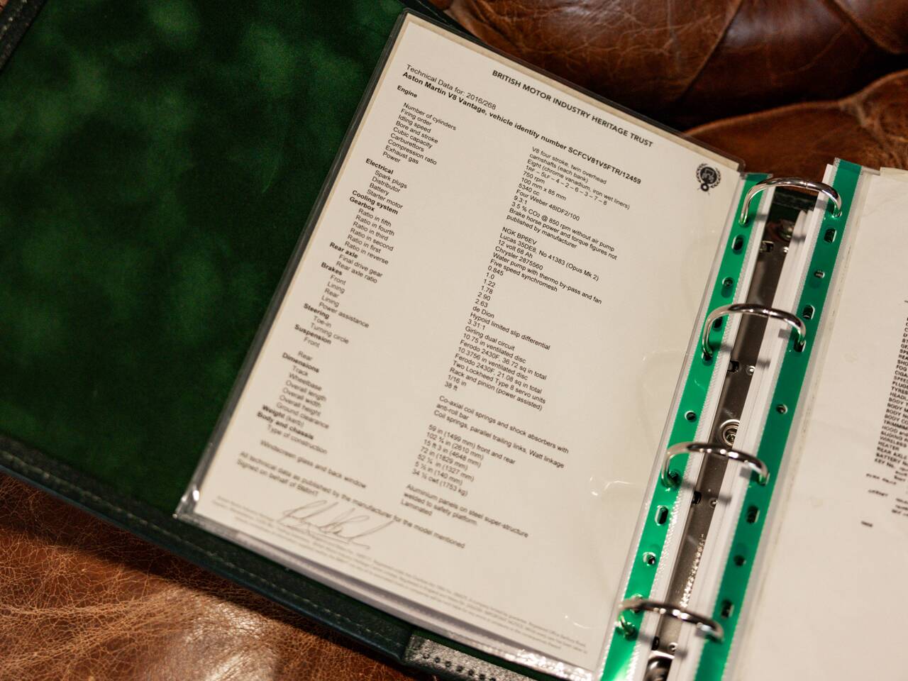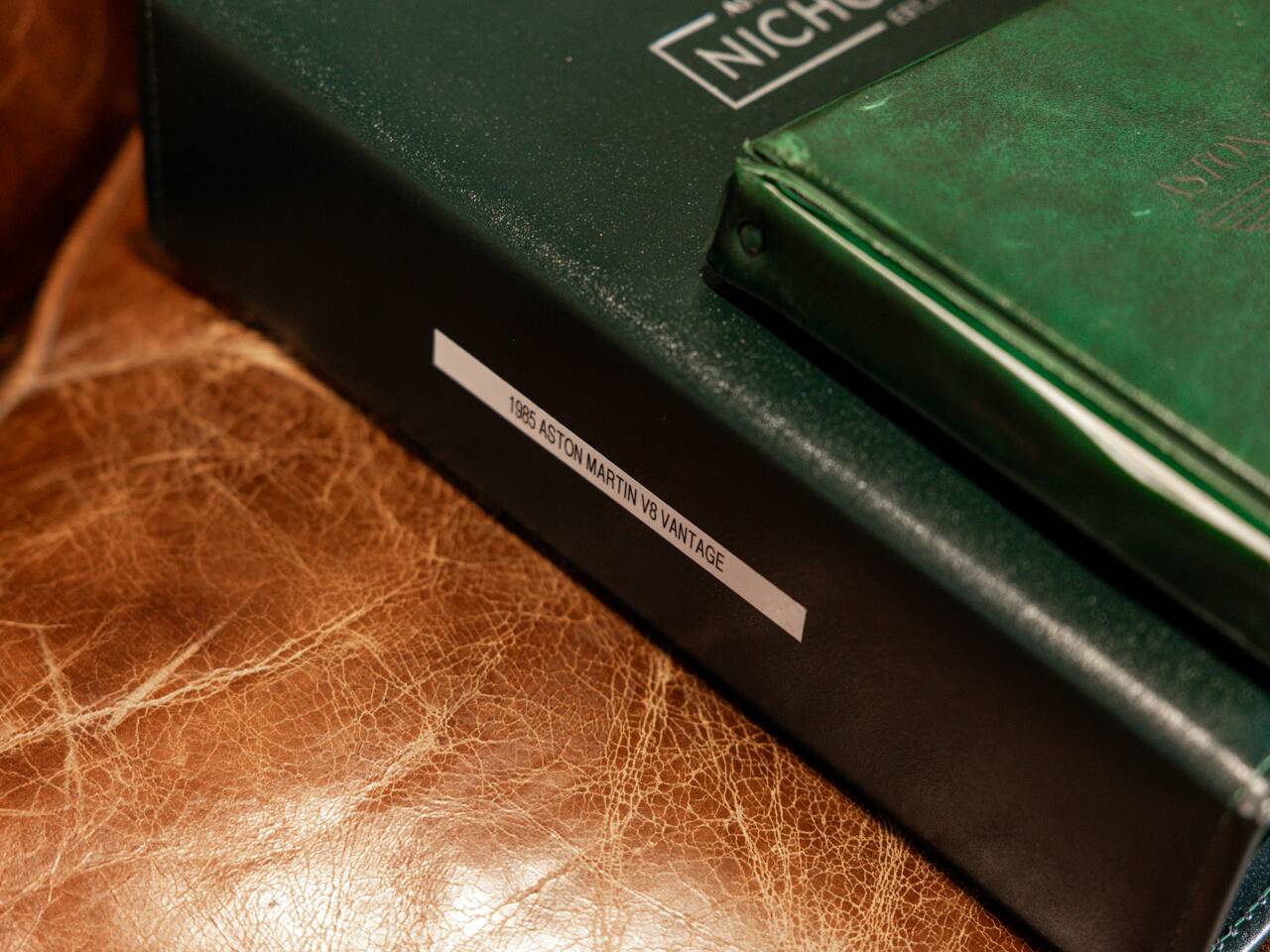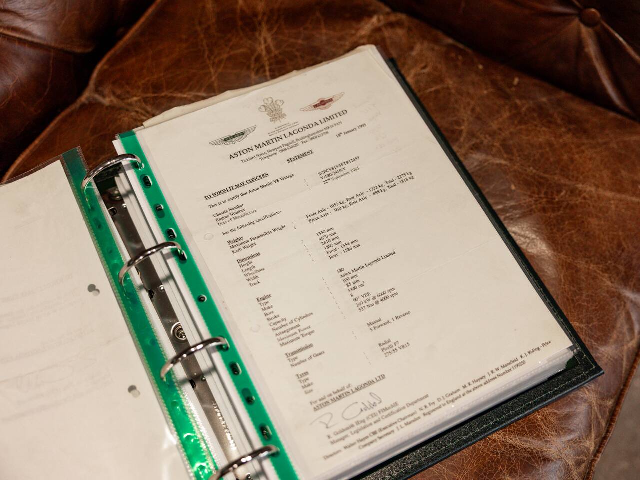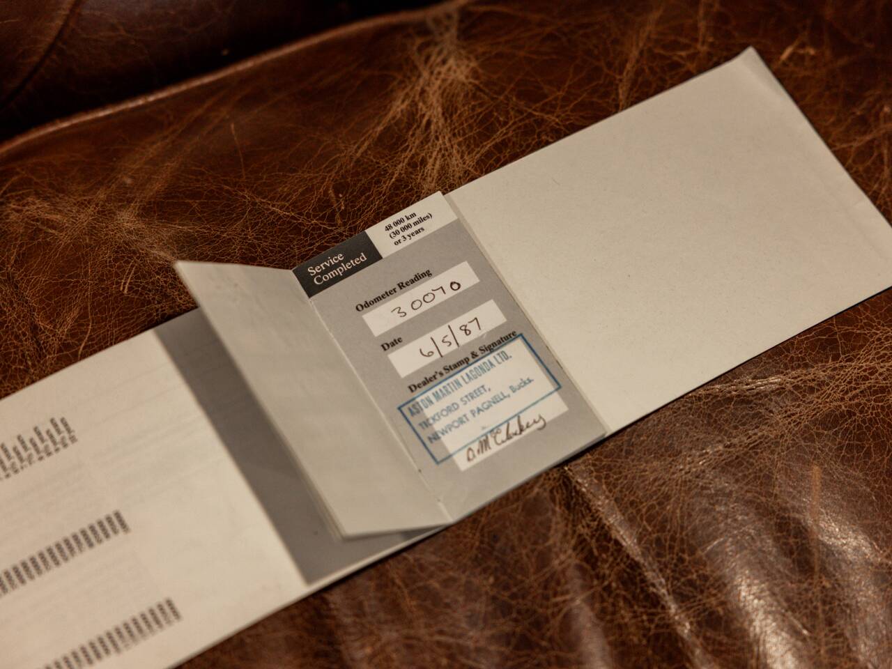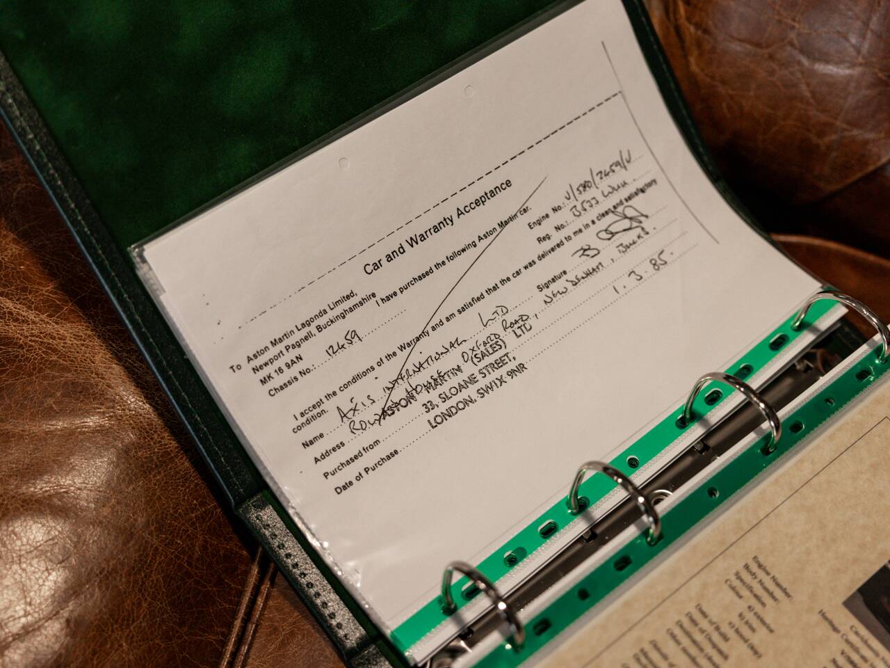 Offered with the vehicles comprehensive leather-bound history file containing all invoices and receipts covering the last 28 years of ownership, the original stamped service voucher book, original build data sheet, a BMHIT certificate of authentication and the original owners handbook, tool roll, vehicle Jack and spare keys. A set of fitted interior over mats and an additional pair of Aston Martin wing logoed headrest cushions, come with the car.