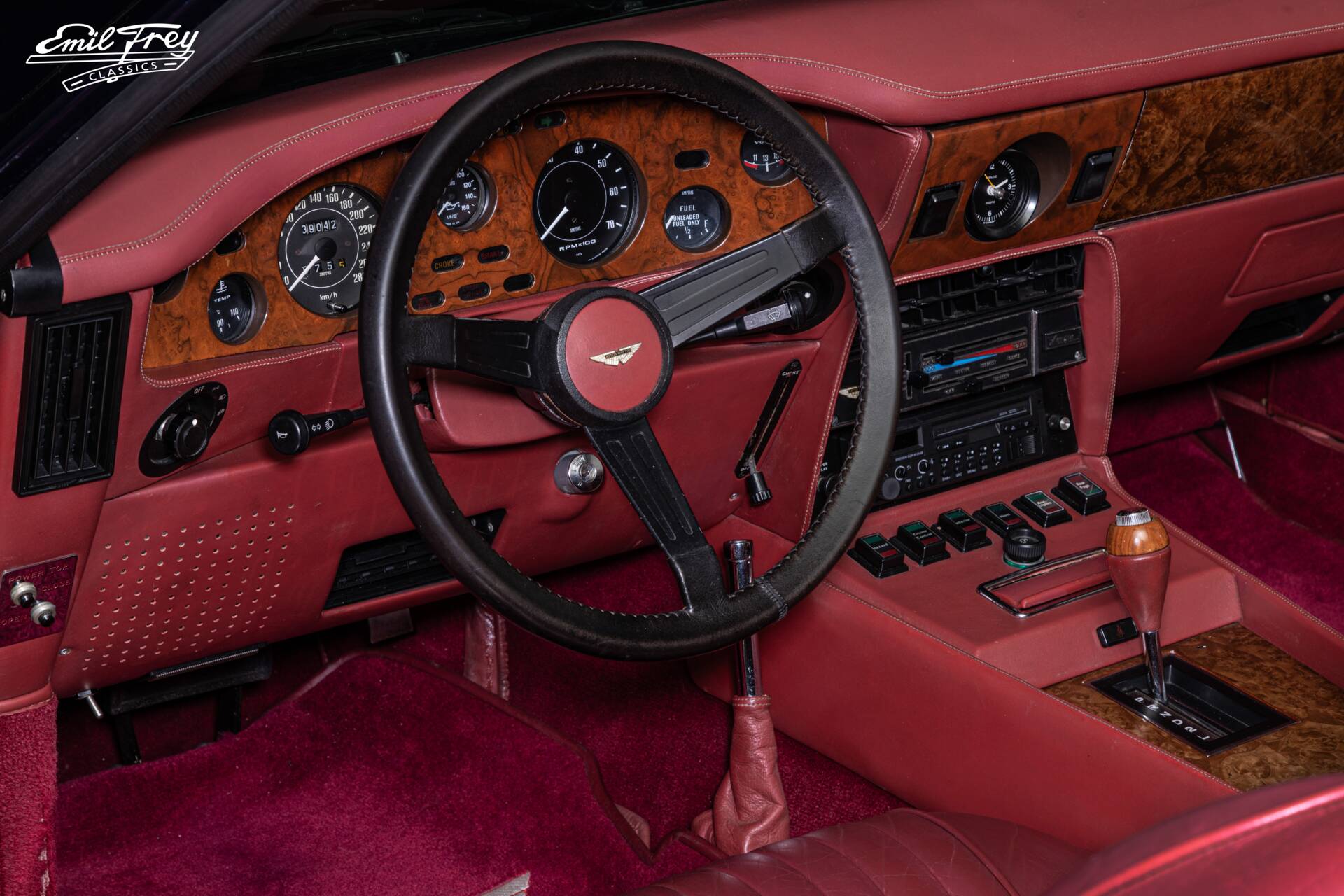 Der Aston Martin V8 ist auf den Aston Martin DBS zurückzuführen, der 1967 auf dem Pariser Automobilsalon debütierte. Der Wagen, vom Engländer William Towns gezeichnet, trug eine vollständig neue Karosserie und war als Nachfolger des Aston Martin DB6 konzipiert worden. 1972 wurde das Styling an der Frontpartie zum ersten Mal verändert. Während der DBS über vier Doppelscheinwerfer und einen verchromten Grill verfügte, hatte der neue, nun nur noch Aston Martin V8 genannte Wagen lediglich zwei grosse Einzelscheinwerfer. Das berühmte Kürzel «DB» wurde gestrichen, weil die neuen Eigentümer von Aston Martin jegliche Referenz an den ehemaligen Besitzer, David Brown, eliminieren wollten. Der Aston Martin V8 wurde stetig weiterentwickelt und bis 1990 in insgesamt fünf Serien zu 100% in Handarbeit gebaut. 1987 hatten das Cabriolet und das Coupé einen Auftritt im James Bond-Film «Der Hauch des Todes». Das angebotene Fahrzeug wurde 1982 produziert und ist eines von 39 V8-Volante-Modellen, die in diesem Jahr gefertigt wurden. Es wurde an den ersten Besitzer in Newport Beach, Kalifornien, ausgeliefert. In den folgenden Jahren kam das Fahrzeug nach Europa und hatte danach vier Besitzer. Im Jahr 2023 wurde das Fahrzeug im Auftrag des letzten Besitzers aus England durch Emil Frey Classics AG in die Schweiz eingeführt und für diesen perfektioniert. Ein wunderschöner, dank Klimaanlage und Servolenkung entspannt zu fahrender und bestens erhaltener Aston Martin V8 Volante, wie man ihn nicht mehr jeden Tag zu sehen bekommt.