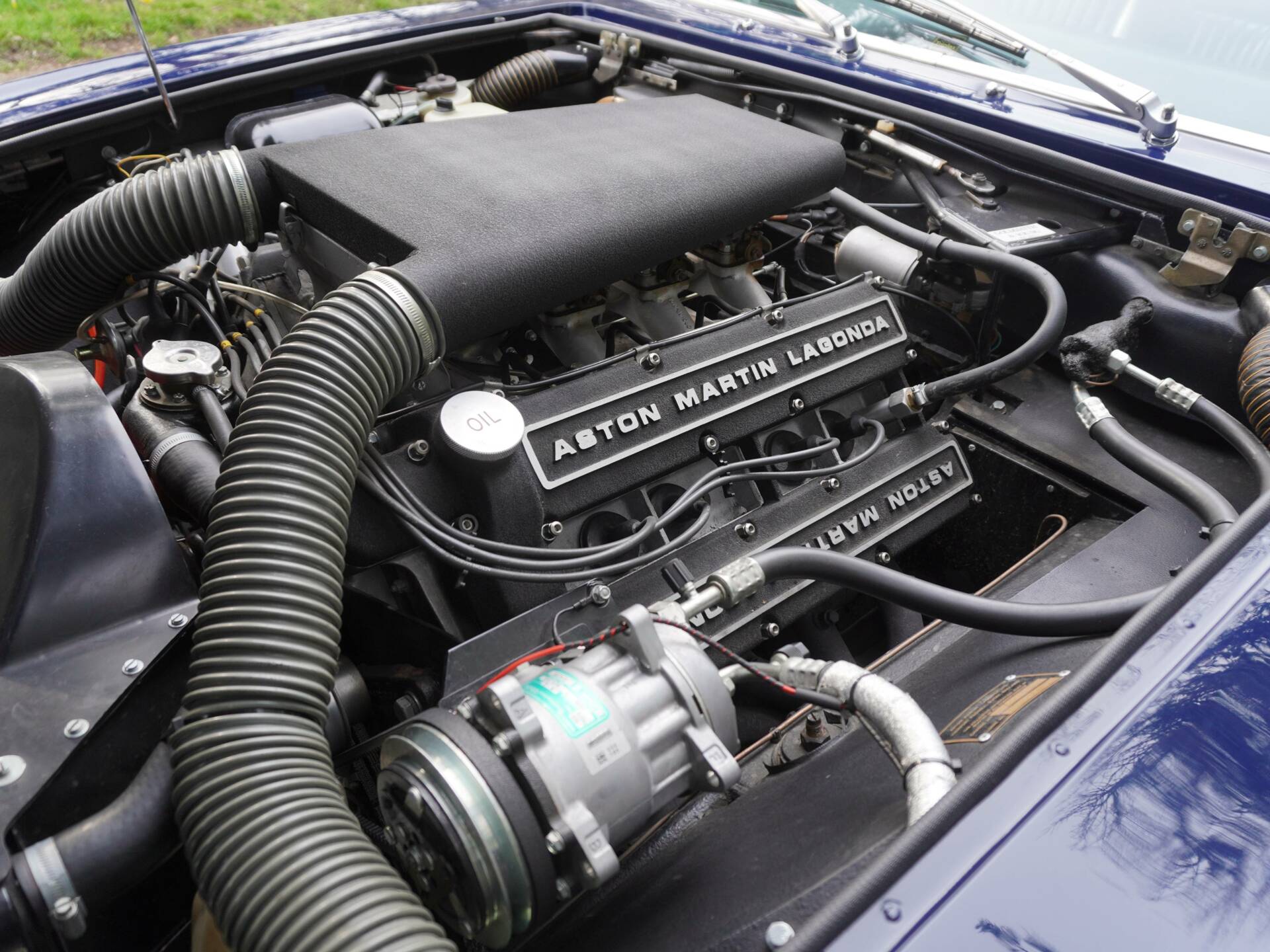 The Aston Martin had a brake upgrade, and new parts included brake calipers, brake discs, disc bell mounting kits, mounting brackets, brake pads and all new brake hoses. The majority of expense was on a full engine rebuild and upgrade to 5.7 specification/pistons. A detailed invoice with several pages cover off all parts to include the 5.7 pistons, main and big end bearings, inlet valves, valve guides, stainless manifold studs, valve springs, cam followers, oil pump, oil pump chain and specialist services including boring, balancing, re-grinding, machining, zinc plating and ceramic coating. With the engine and ancillaries removed, the engine bay was fully re-furbished and restored as required. The automatic transmission was overhauled and various ancillaries such as the starter motor and alternator replaced. Whilst with the specialists a modern, Fenair air-conditioning upgrade was carried out, and windscreens and rear quarter light windows were removed for new rubbers and re-sealing. Other work included refurbishing various gauges, renewal of all vacuum pipes and re-assembling the dash to carry out this work, new boot springs and ahead of its overseas touring, both servos were sent away for exchange ‘high boost' servo's. On completion of almost £60,000 of preparation work, the Aston Martin was ready for on the Continent touring.