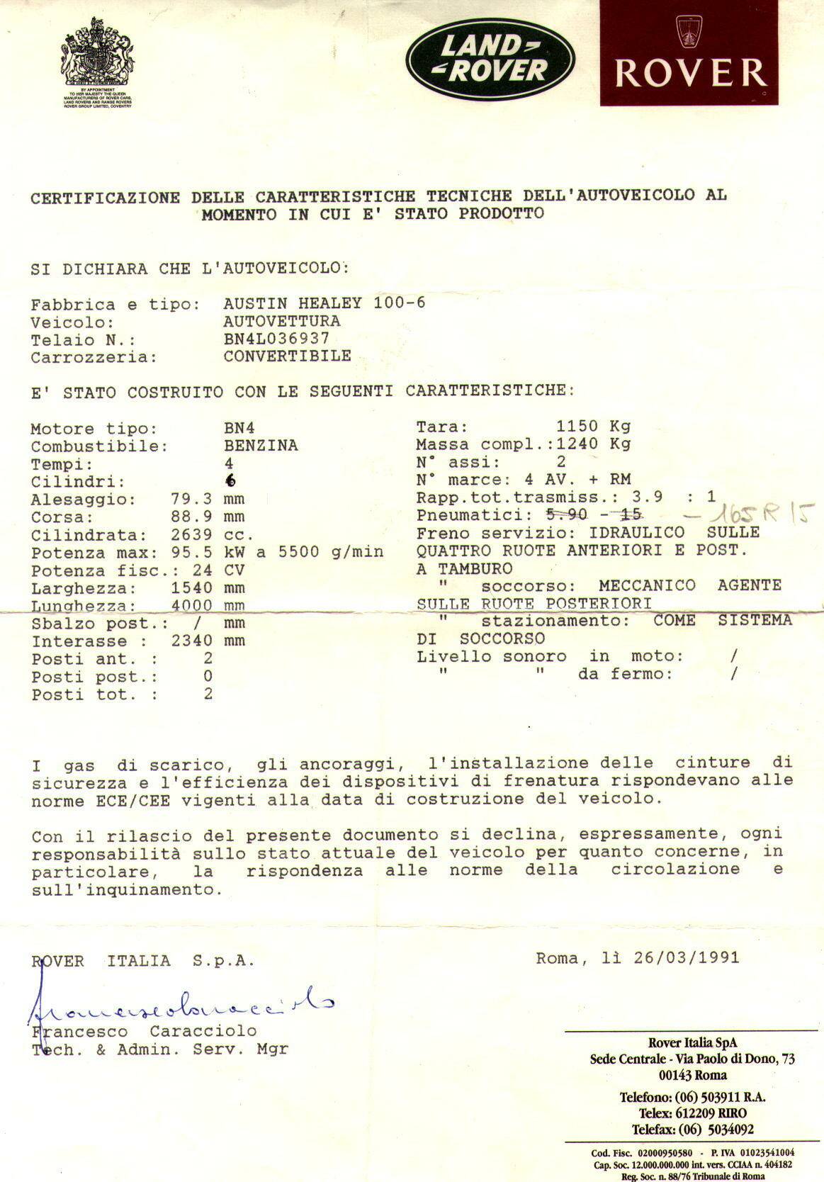 Thanks to its year of manufacture, original configuration, state of preservation, and official certifications, this Austin Healey 100/6 is an ideal candidate not only for the Mille Miglia but also for the most prestigious international historic regularity events.