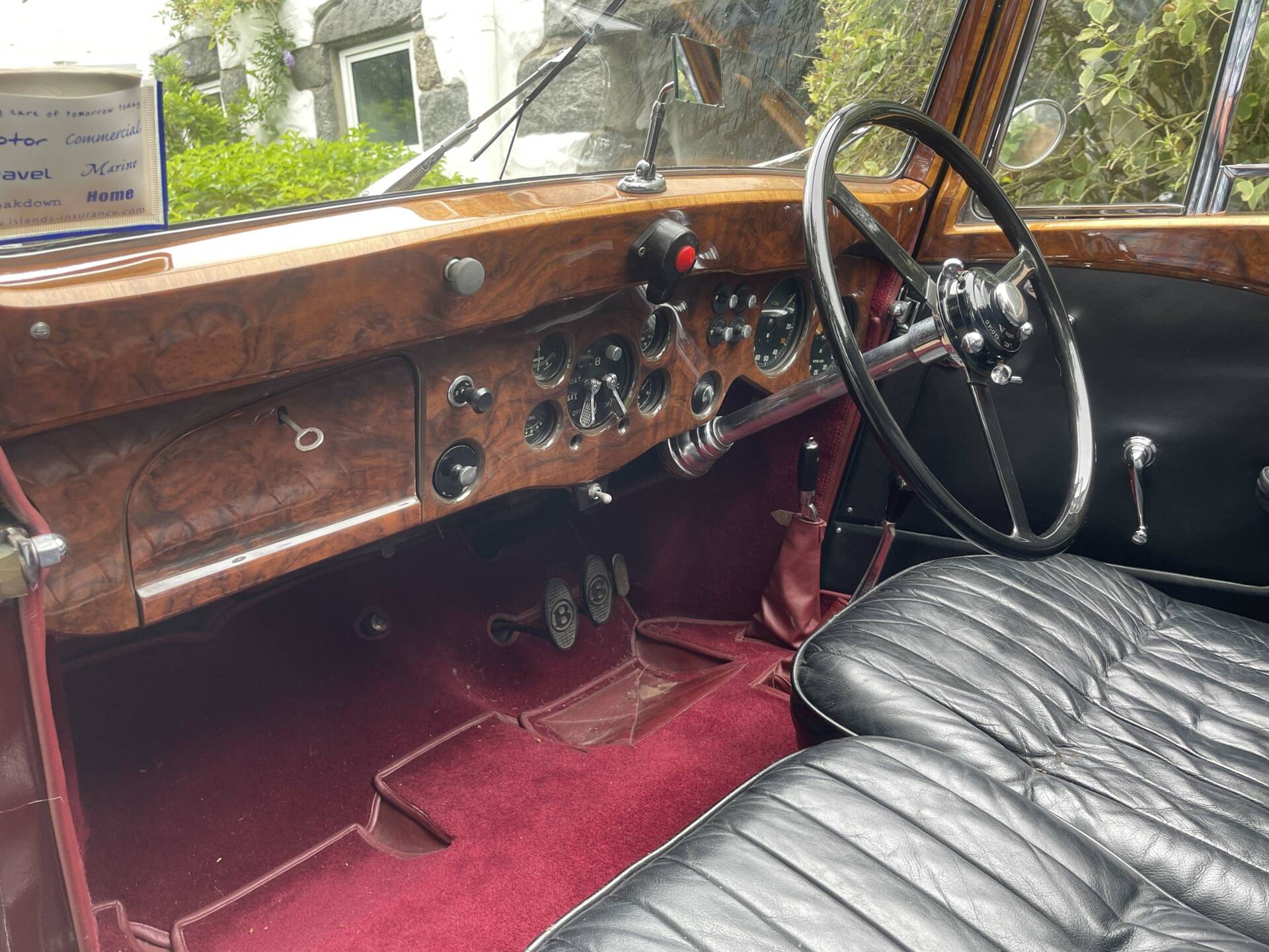To complement the exterior work, the interior woodwork was renovated and new burgundy Wilton carpet fitted. The black leather seating is in very good condition and adds to the sumptuous surroundings.