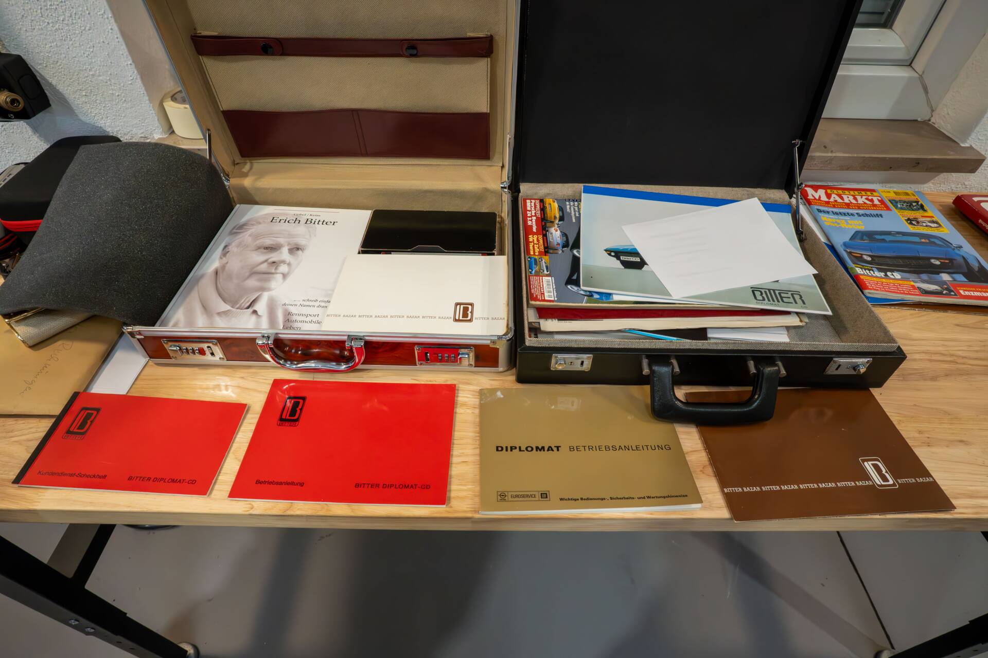 Über die Jahre wurde das Fahrzeug stets gewartet, jedoch nie vollständig restauriert. In den 1990er Jahren erfolgte eine Neulackierung im originalen Farbton, zudem wurde eine hochwertige Nierosta Edelstahl-Auspuffanlage verbaut.Zum Fahrzeug gehören umfangreiche Originalunterlagen und Zubehör, darunter der originale Lieferschein von Erich Bitter, Betriebsanleitungen, Scheckheft, Ersatzteilkatalog sowie diverse Sammlerstücke und Medien rund um den Bitter CD.