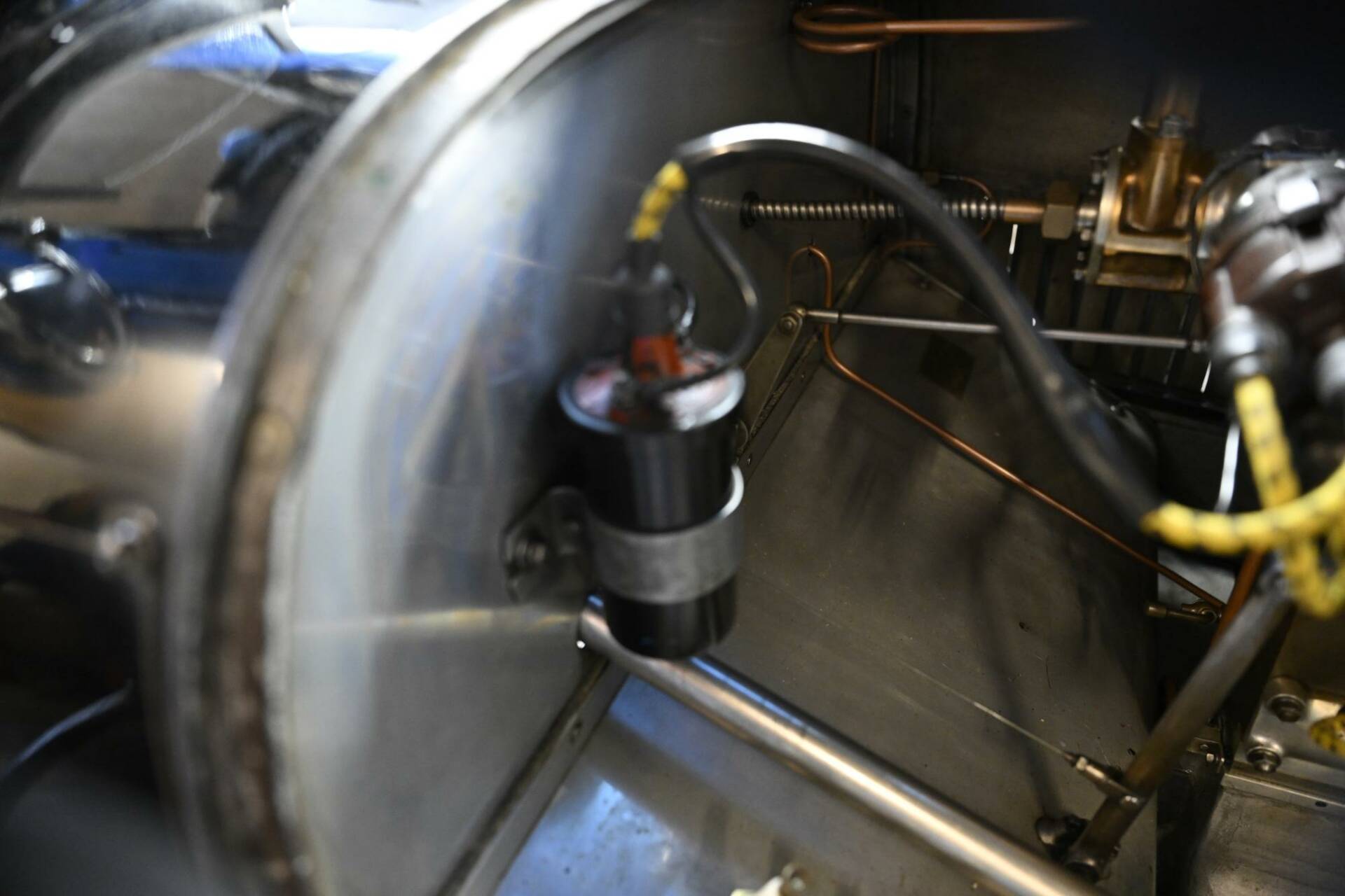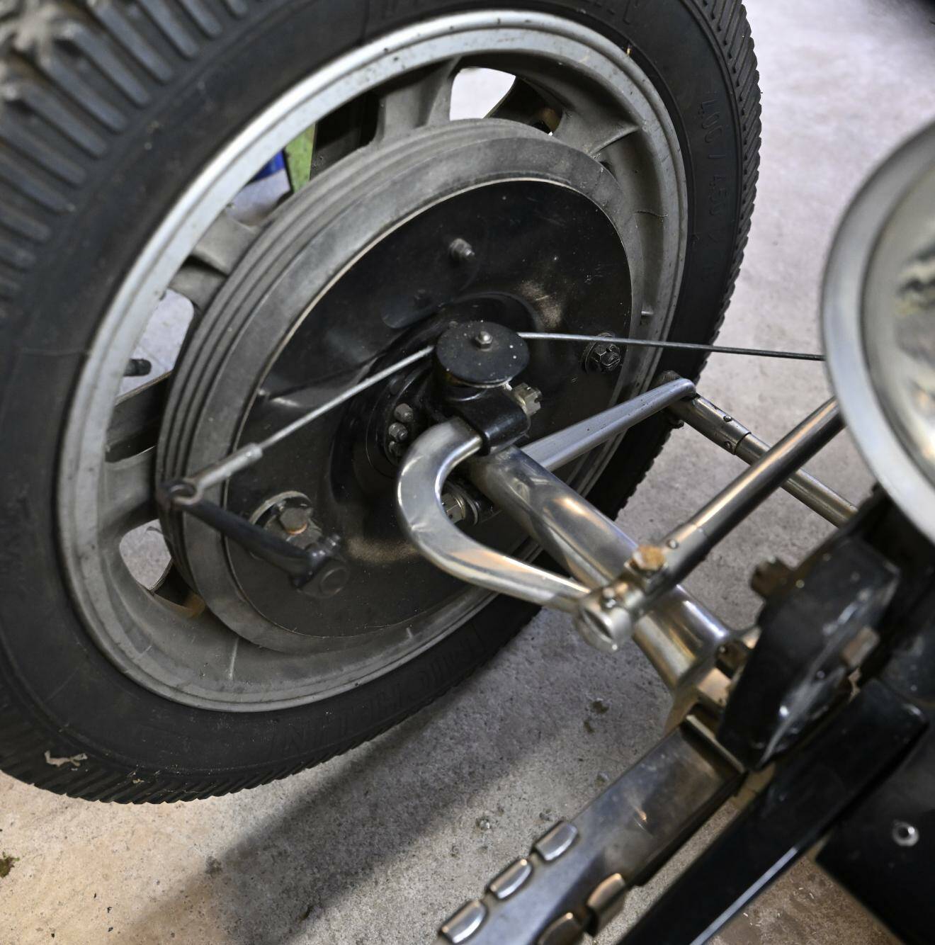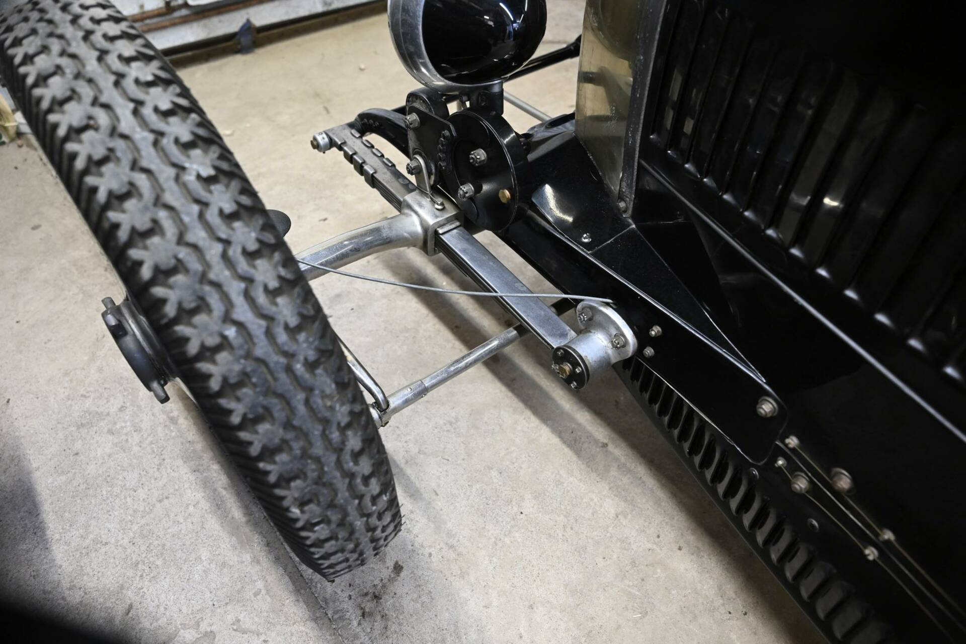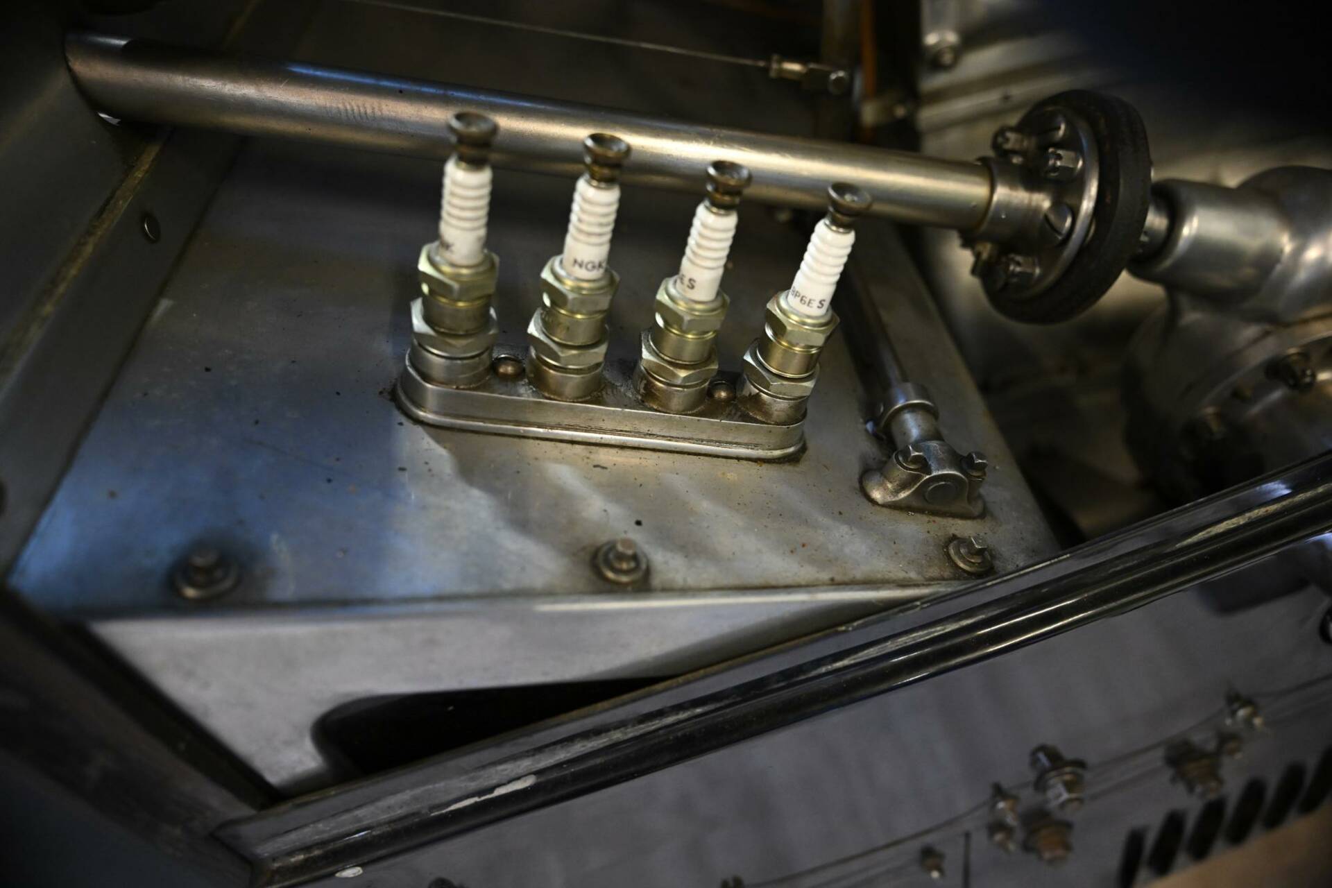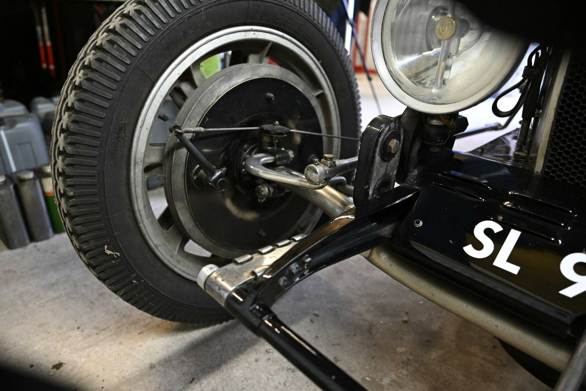 Finished in immauclate black paintwork, the cockpit is clad in maroon leather in perfect condition. The car sits on 4 cast bladed style wheels shod with period correct syle Michelin tyres that have seen very very little use. A supercharger unit with its assciated gears is also available by separate negotiaton should the buyer wish to convert it to Blown specification. There is also an MGF starter motor plus ring gear to bolt to the clutch should electric starting be required as an upgrade. I can however attest to hte ease of starting it on the handle.