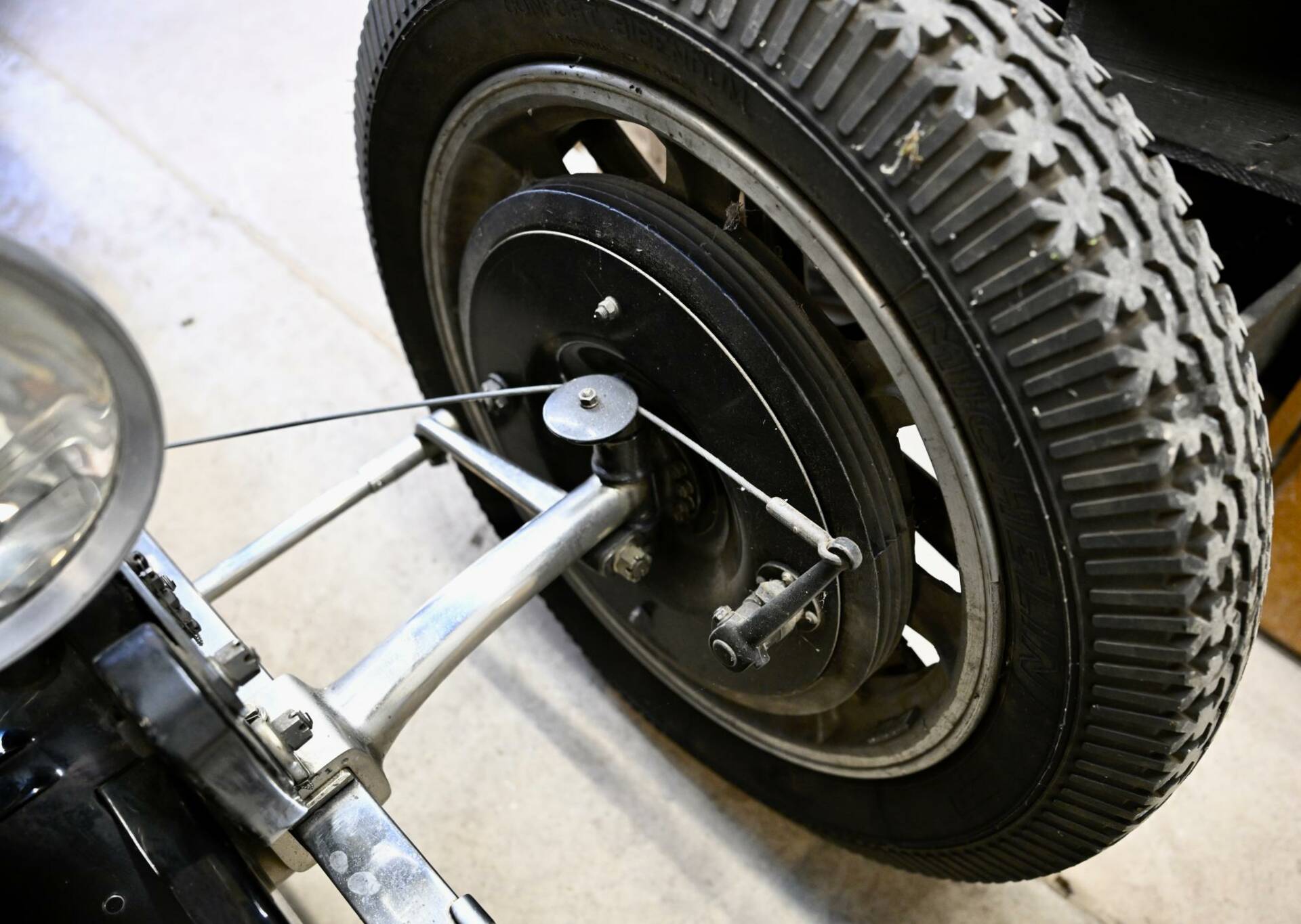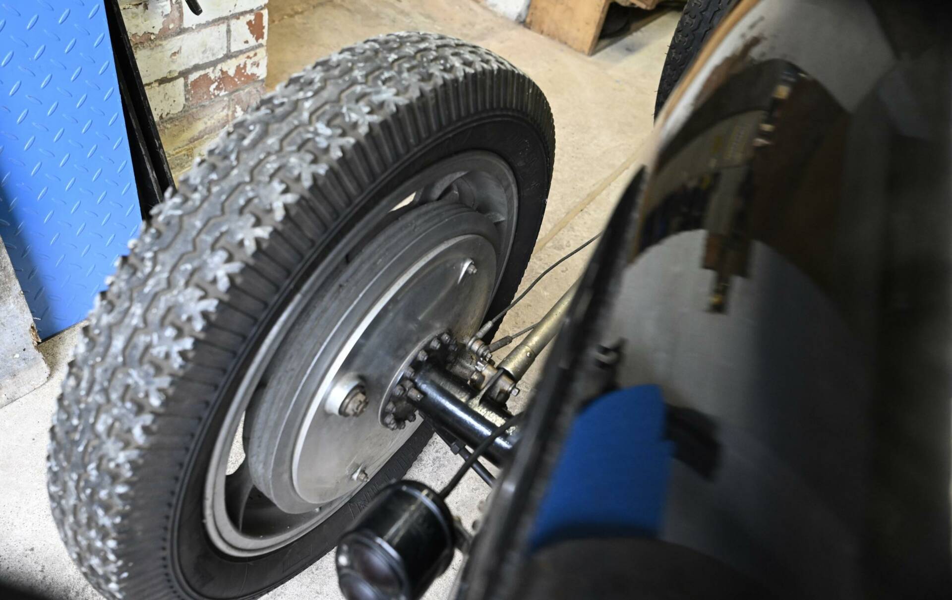 The car had not run for two years, but upon arrival after pumping the fuel pressure & tickling the carburettor the car fired up on the third turn of the starting handle & ran for 10 minutes up to temperature making all the right noises. The engine & mechanicals on the car are in excellent condition with serious performance available. Behind the rear seat is a useful rubber bungee equipped rack for stroing 5 assorted cans of lubricants etc.