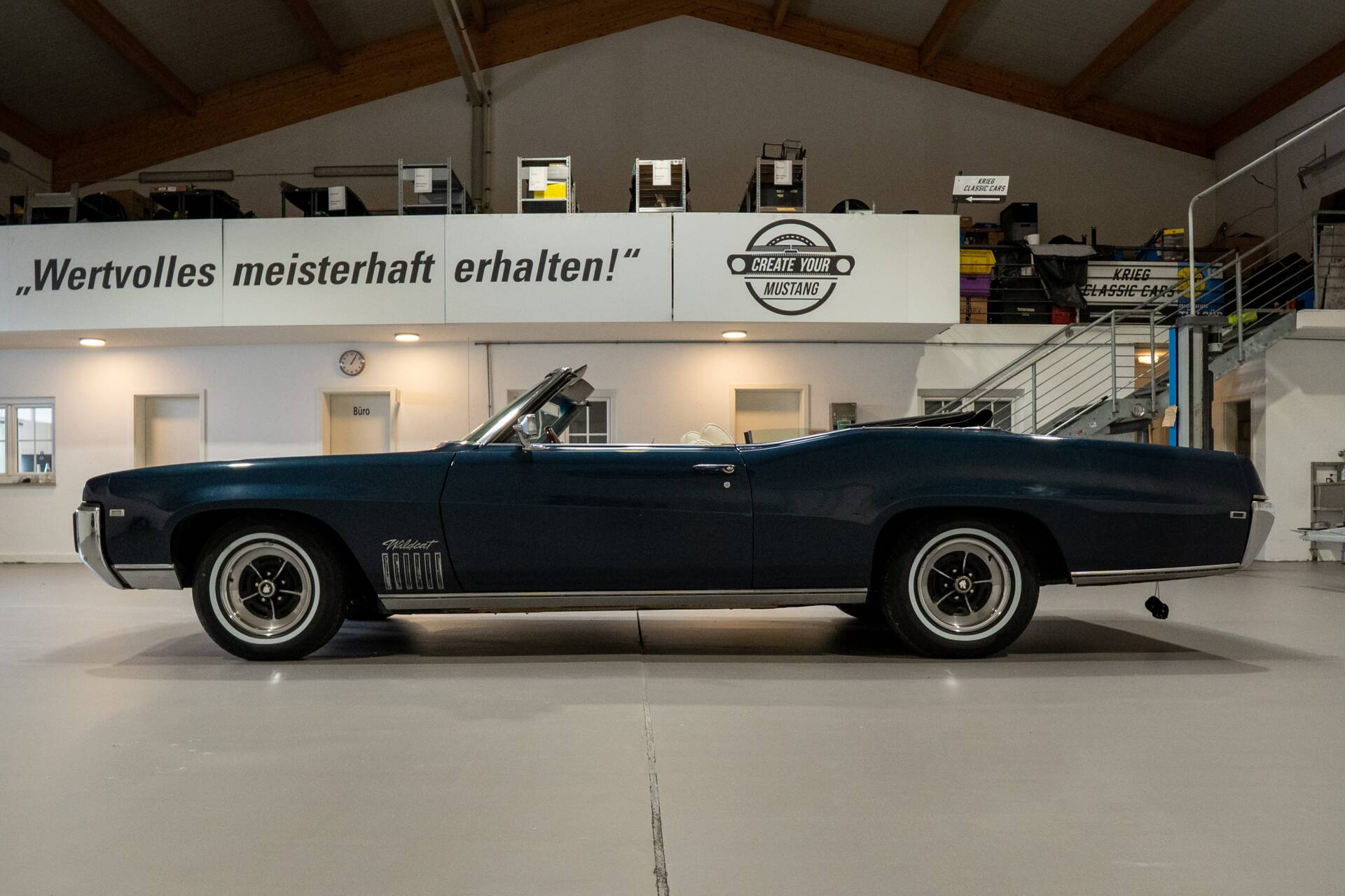 Der Innenraum überzeugt mit handgefertigtem Vollleder (Kunstleder) und einem individuell gestalteten Dashboard. Die elektrisch verstellbaren Sitze sowie die elektrischen Fensterheber funktionieren einwandfrei und unterstreichen den gepflegten, komfortablen Zustand des Cabrios.Von den insgesamt 2.374 produzierten Wildcat Convertibles im Jahr 1969 ist dieses Fahrzeug aufgrund der extrem niedrigen VIN und der originalen Substanz besonders selten und wertvoll. Seit dem Import nach Deutschland wurden über 40.000 € investiert, darunter eine hochwertige Edelstahl-Auspuffanlage von einem renommierten bayerischen Auspuffbauer, Ölwechsel, neue Dichtungen (Ventildeckel, Kraftstoffpumpe, Ölablass), überholte Bremsanlage inklusive Bremstrommeln, Beläge und Radlager, Einstellung der Seitenscheibe hinten links, Abdichtung des Getriebes sowie Achsvermessung. Die Reifen sind neu und das Fahrzeug ist sofort fahrbereit.