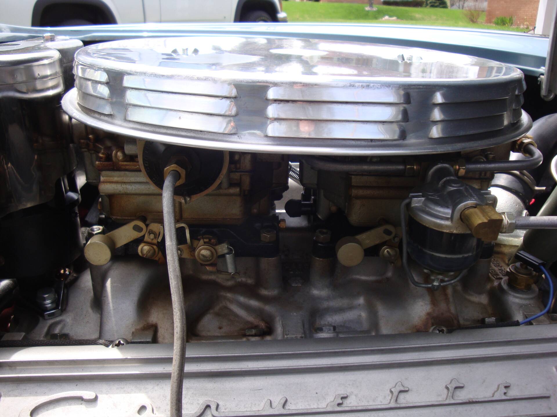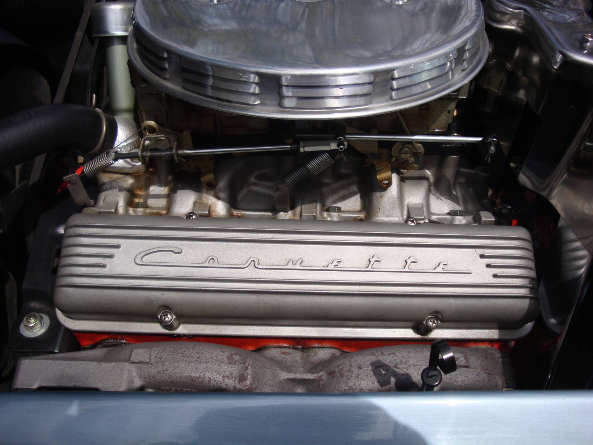 Die Corvette ist mit dem 283cui V8 und der seltenen Option von zwei Doppel-Register-Vergasern sowie einem 4-Gang Schaltgetriebe und elektrischen Fensterhebern ausgestattet.