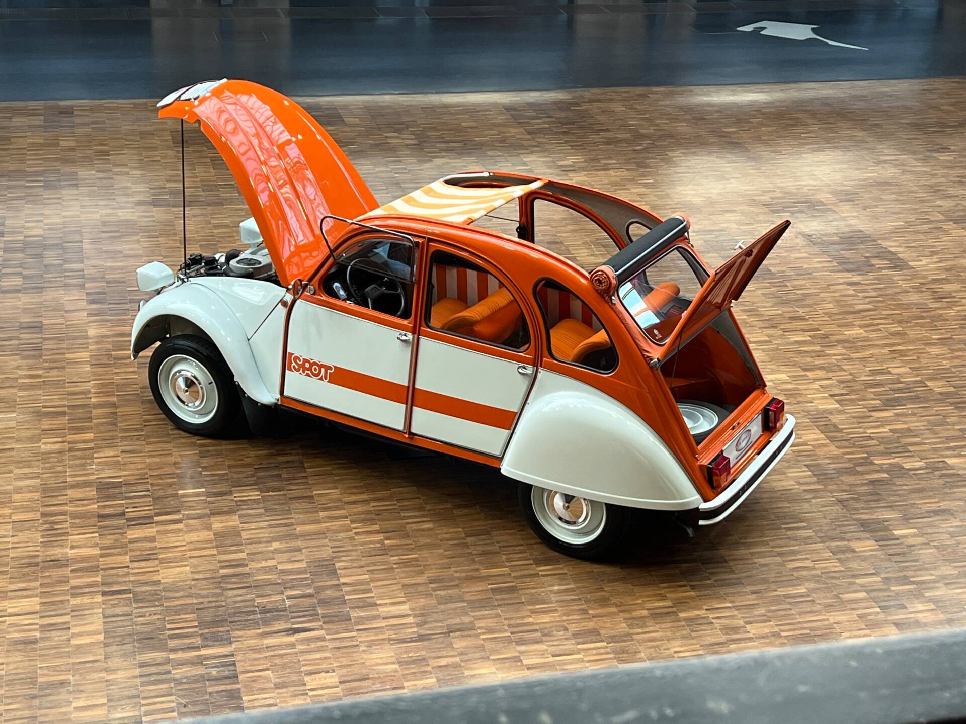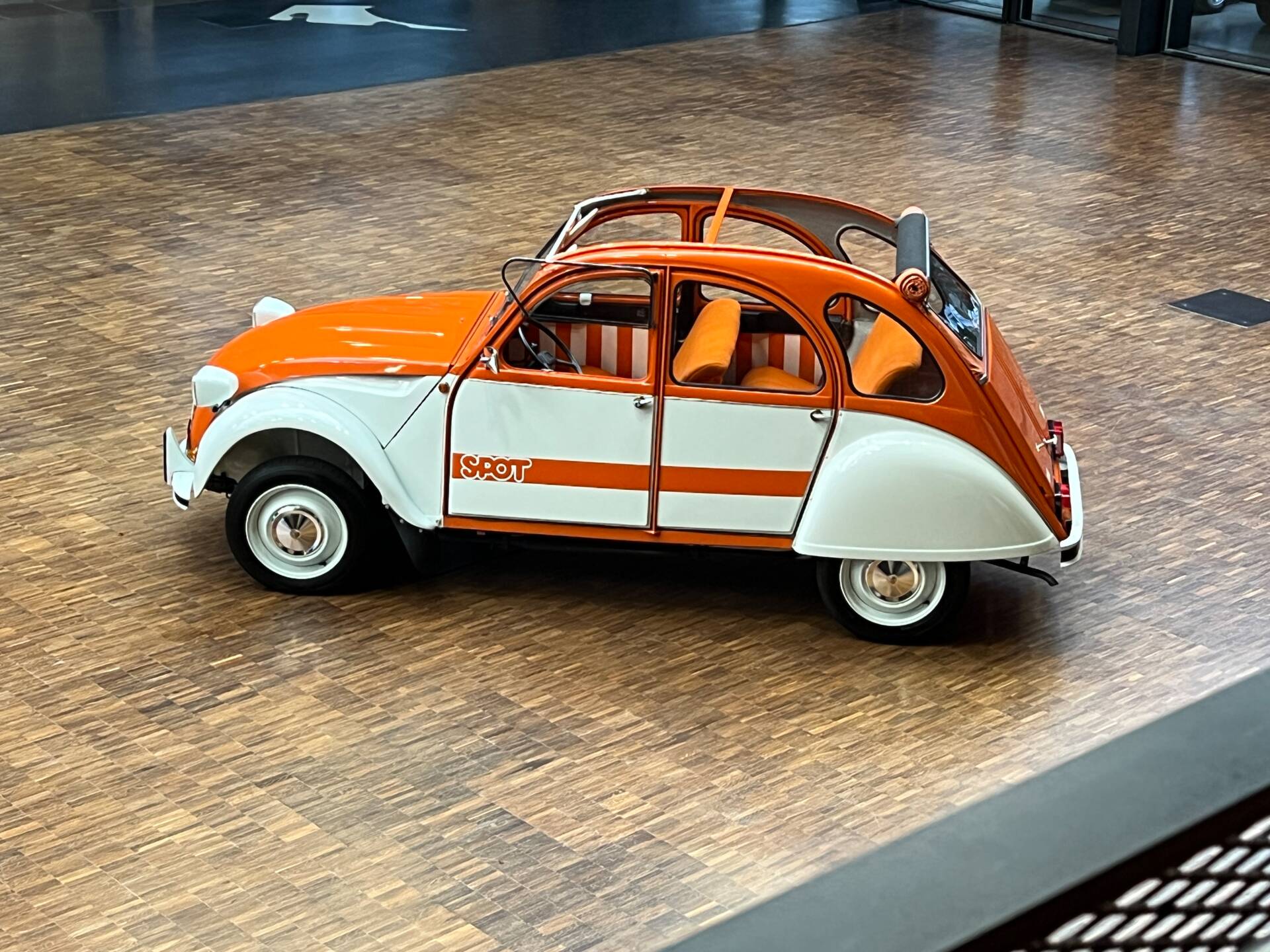 Pierre Michelin hatte 1935, nach dem Tod des Firmengründers André Citroën, die Leitung der Firma Citroën übernommen. Um das Unternehmen wirtschaftlich auf gesündere Beine zu stellen, begann man mit der Entwicklung des TPV, des Toute Petite Voiture (französisch für das ganz kleine Auto). Um den Sinn des Projekts klarzustellen, sprach man intern vom Regenschirm mit vier Rädern, mit dem man vier Personen und einen Korb roher Eier durch die Lande fahren sollte. Damit war klar, dass es sich um ein extrem günstiges Fahrzeug handeln sollte, das vier Personen und etwas Gepäck so bequem transportieren kann, dass die Eier auch heil am Ziel ankommen. Der TPV wurde 1939 vorgestellt, aber aufgrund des Kriegsausbruchs wurden nur 250 Vorkriegsautos produziert. Nach dem Krieg wurde das Projekt gründlich überarbeitet und 1948 präsentiert. Der Serienanlauf war 1949 und bis 1990 wurden 3.868.631 Cabrio-Limousinen und 1.246.335 Kastenlieferwägen produziert. Das bedeutet, dass das Fahrzeug über 42 Jahre in Produktion blieb! Bereits in den 60er Jahren wurde das inzwischen in Deutschland „Ente“ genannte Fahrzeug zum weltweiten Kultauto der Flower-Power- und Achtundsechziger-Generation. Es gab diverse limitierte Sonderserien und das Sondermodell Spot von 1976 gilt als eines der begehrtesten. Nur 1.800 Stück wurden von der Spot-Ente gebaut. In Deutschland wurde dieses Modell nie angeboten, aber z. B. in Frankreich, den Niederlanden, Italien und Norwegen. Die Spot-Ente basierte, bis auf die nach Norwegen ausgelieferten Autos, stets auf einer 2 CV 4 und nur in Norwegen auf einer 2 CV 6. Nach Italien wurden 200 Spot-Enten ausgeliefert. Aber egal welches Modell, ein Kultauto ist die Ente auf jeden Fall, vielleicht das Kultauto schlechthin.