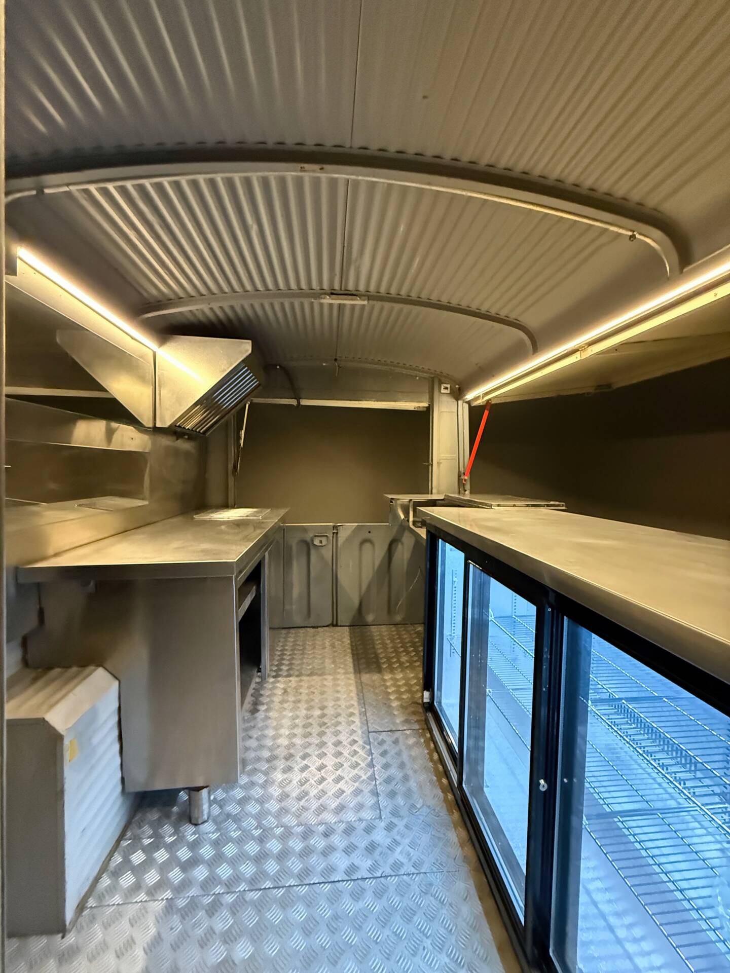 The rear has been converted, offering a versatile and functional space, ideal for private use, gatherings, parties, or private events, while maintaining the classic and original character of the vehicle.
