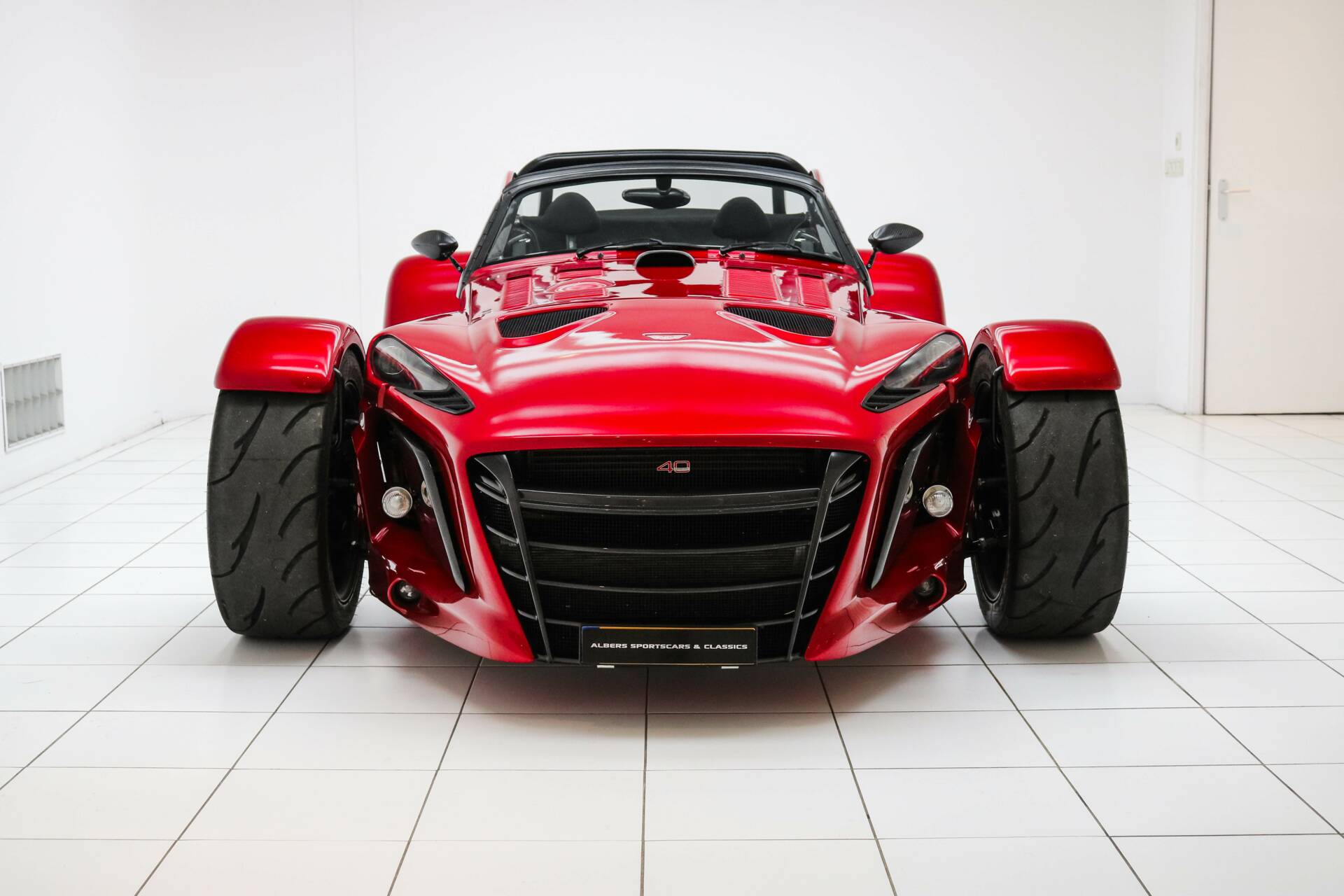 El interior está tapizado en Alcantara negro con costuras rojas en contraste. Los logotipos ‘40’ están bordados en los respaldos de los asientos. El vehículo dispone de arneses de 6 puntos Luke Donkervoort, así como cinturones de 3 puntos, volante desmontable y pantalla AIM Pista. El interior también está ampliamente acabado en carbono visto gracias al paquete interior de carbono y al Black Pack interior. El salpicadero incluye diversos indicadores y controles, como el reparto de frenada, control de tracción y sistema de calefacción.