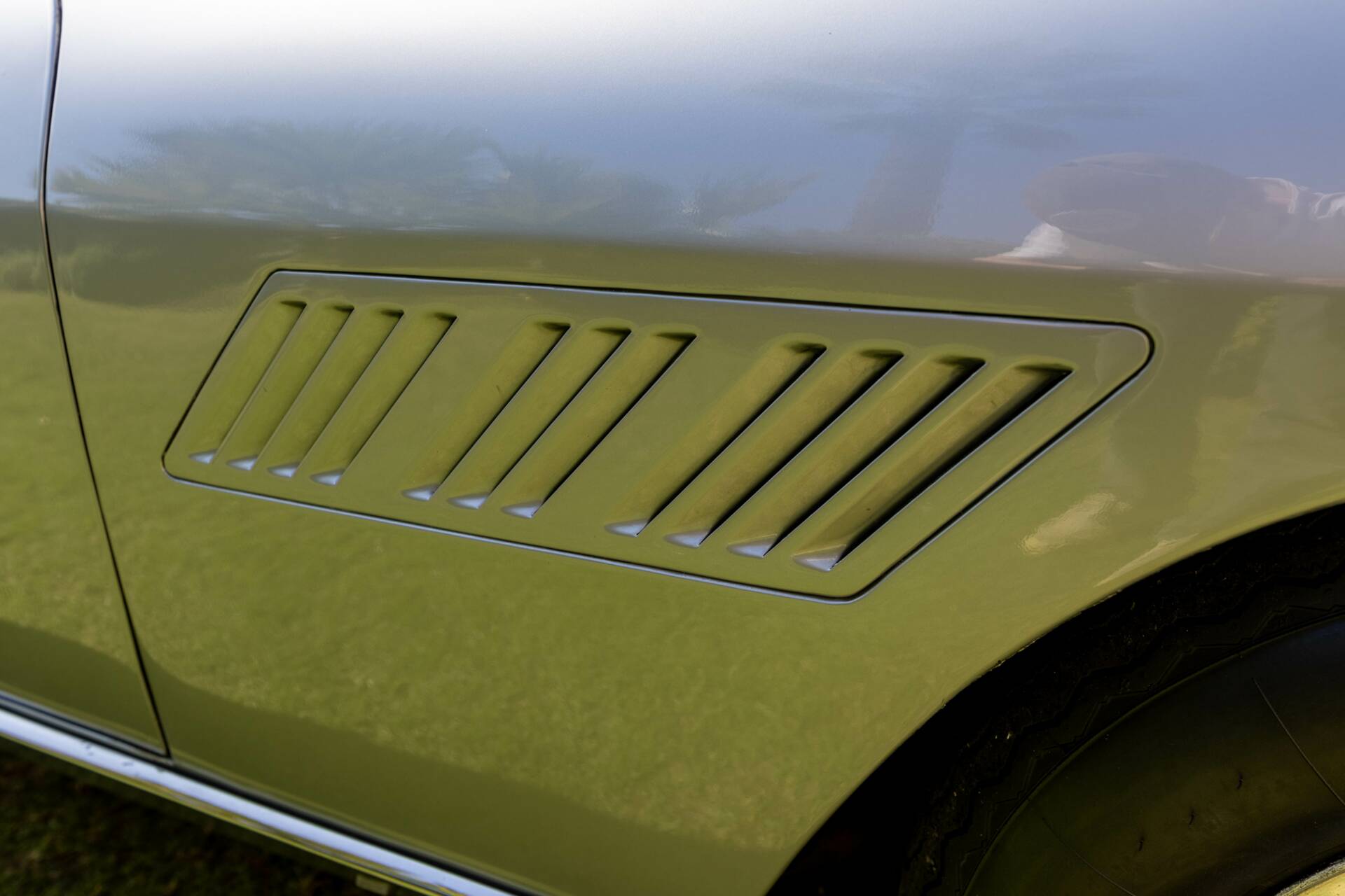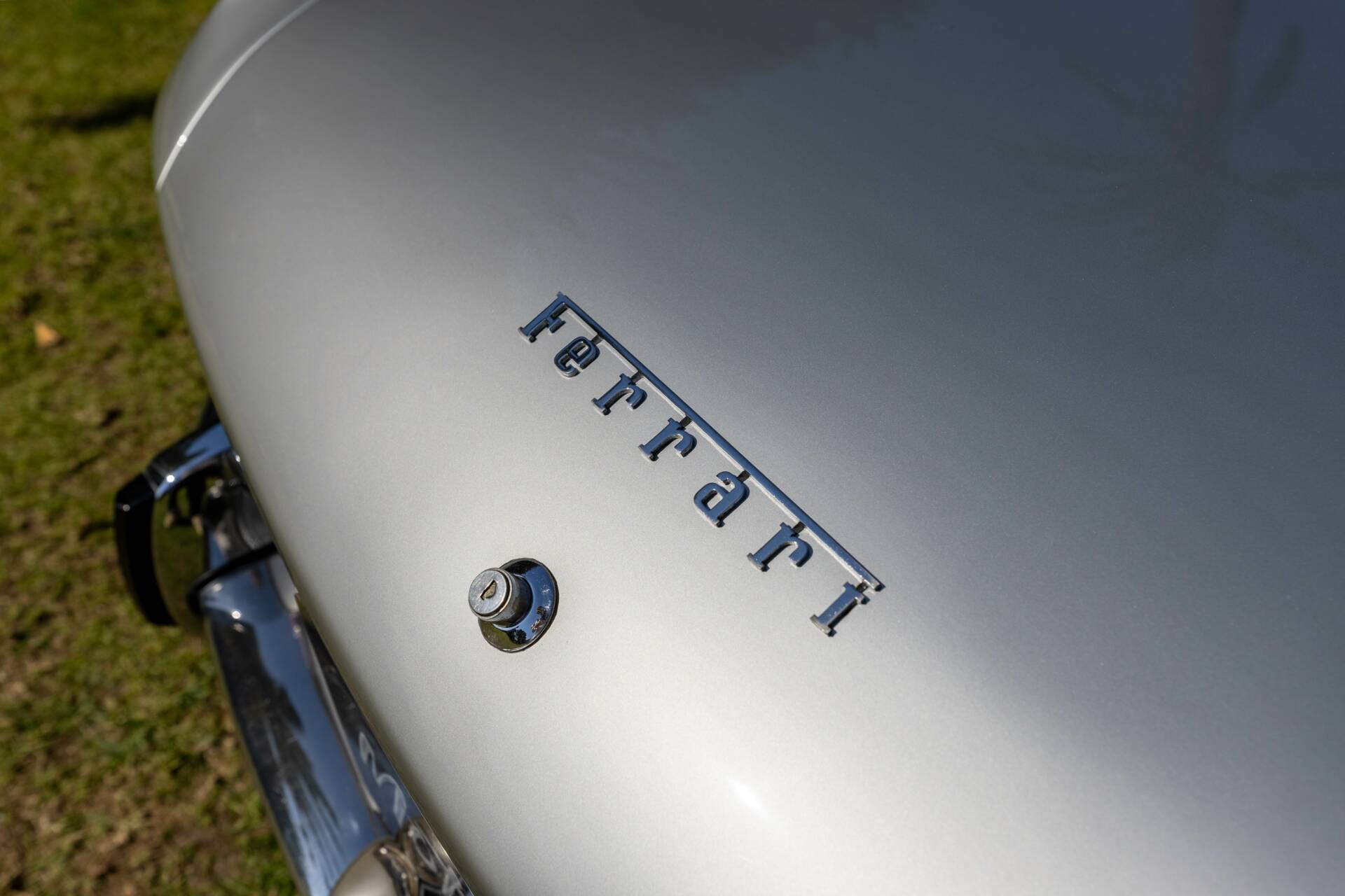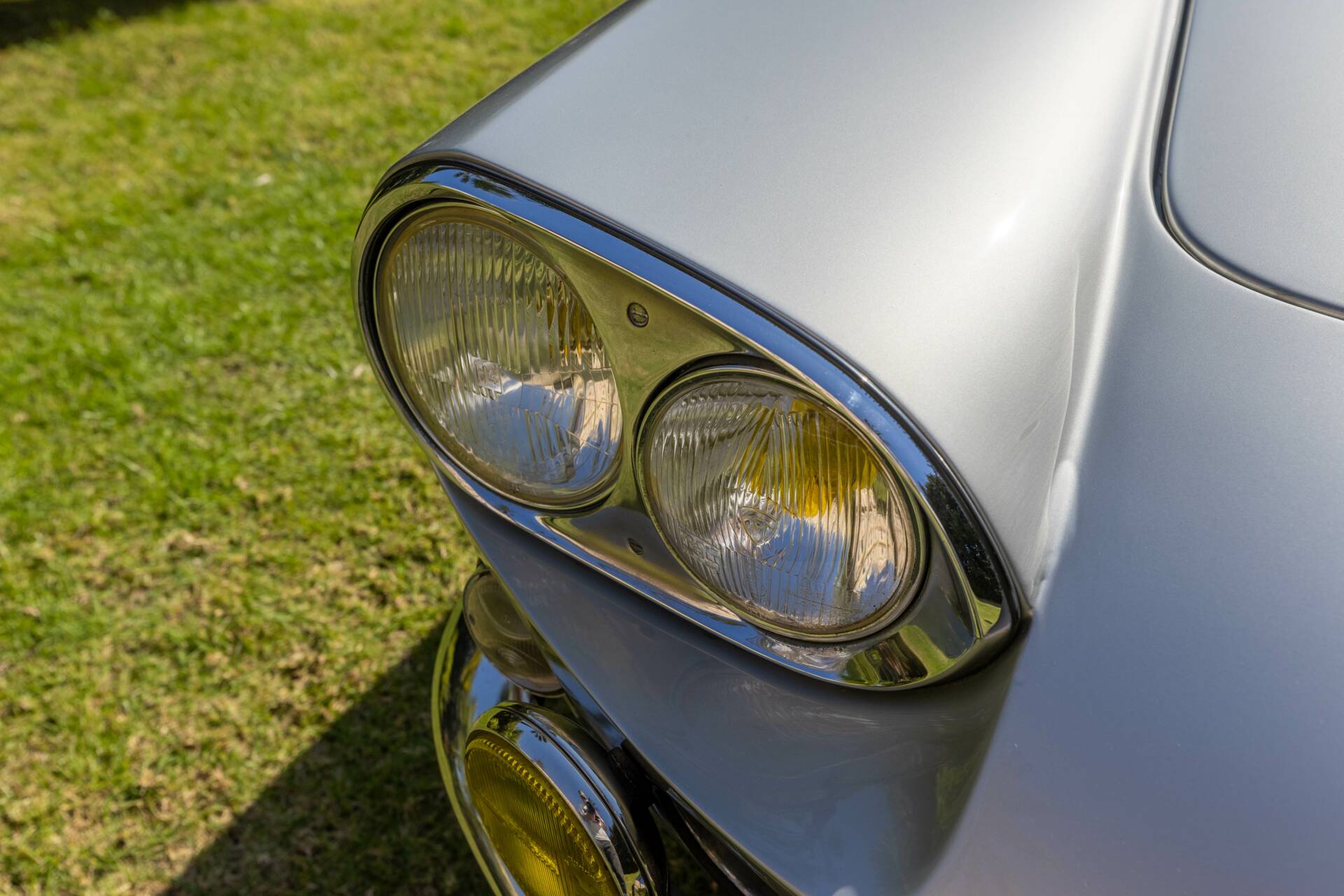 La carrosserie, dans sa teinte d’origine « Grigio Argento », a bénéficié d’un polish complet. Lui offrant un très bel éclat. Tous les alignements de la voiture sont bons. Les chromes sont complets, en bon état.