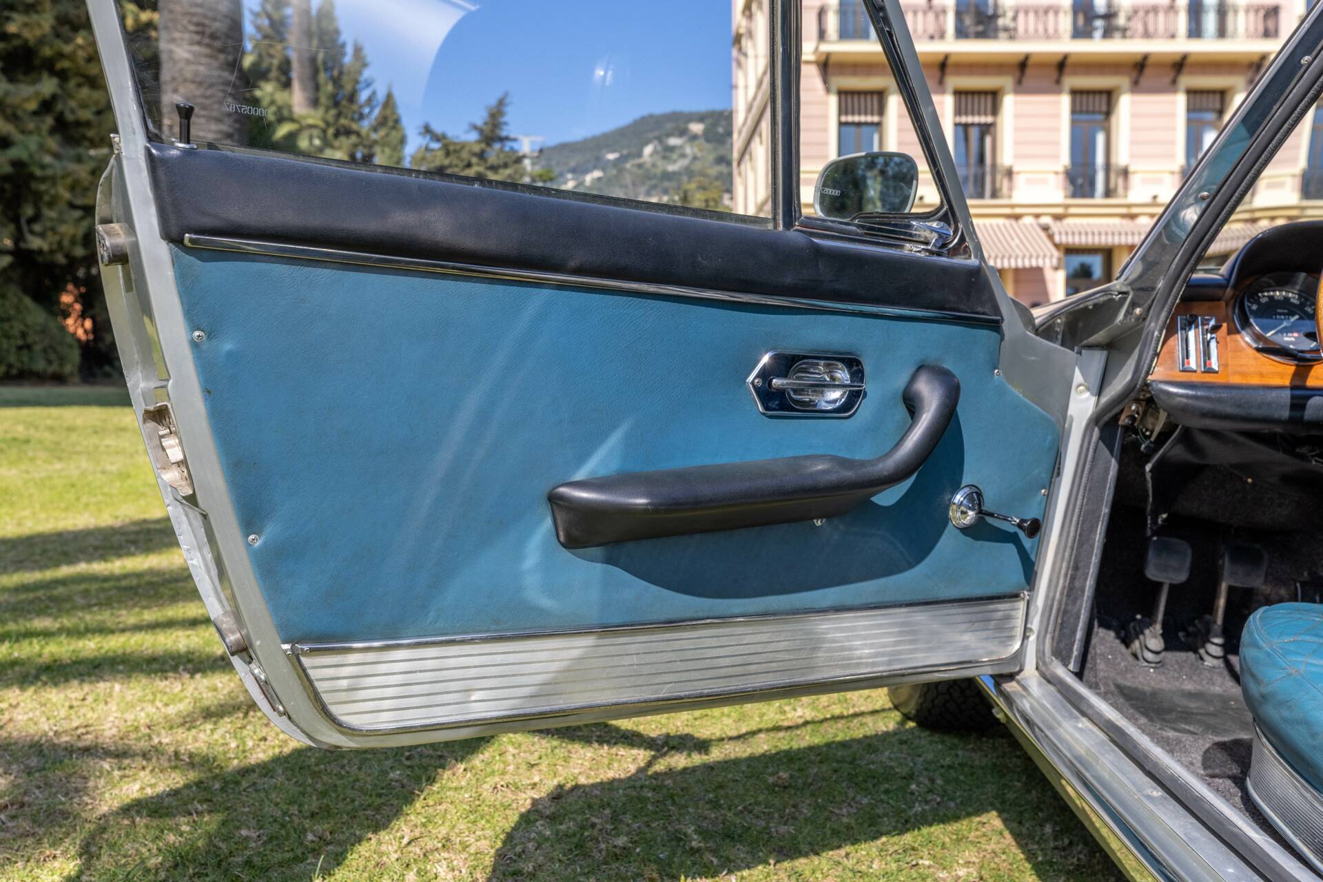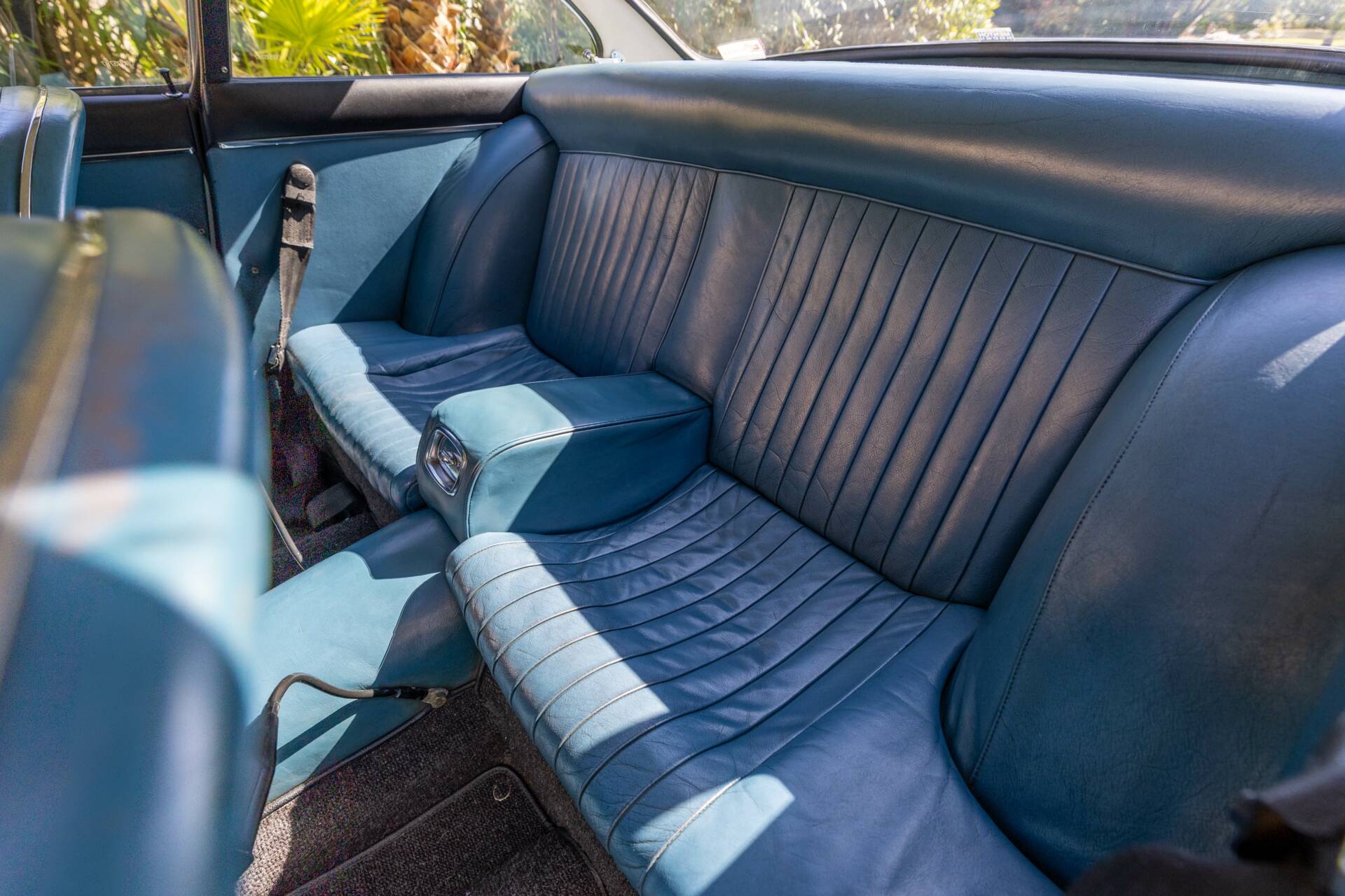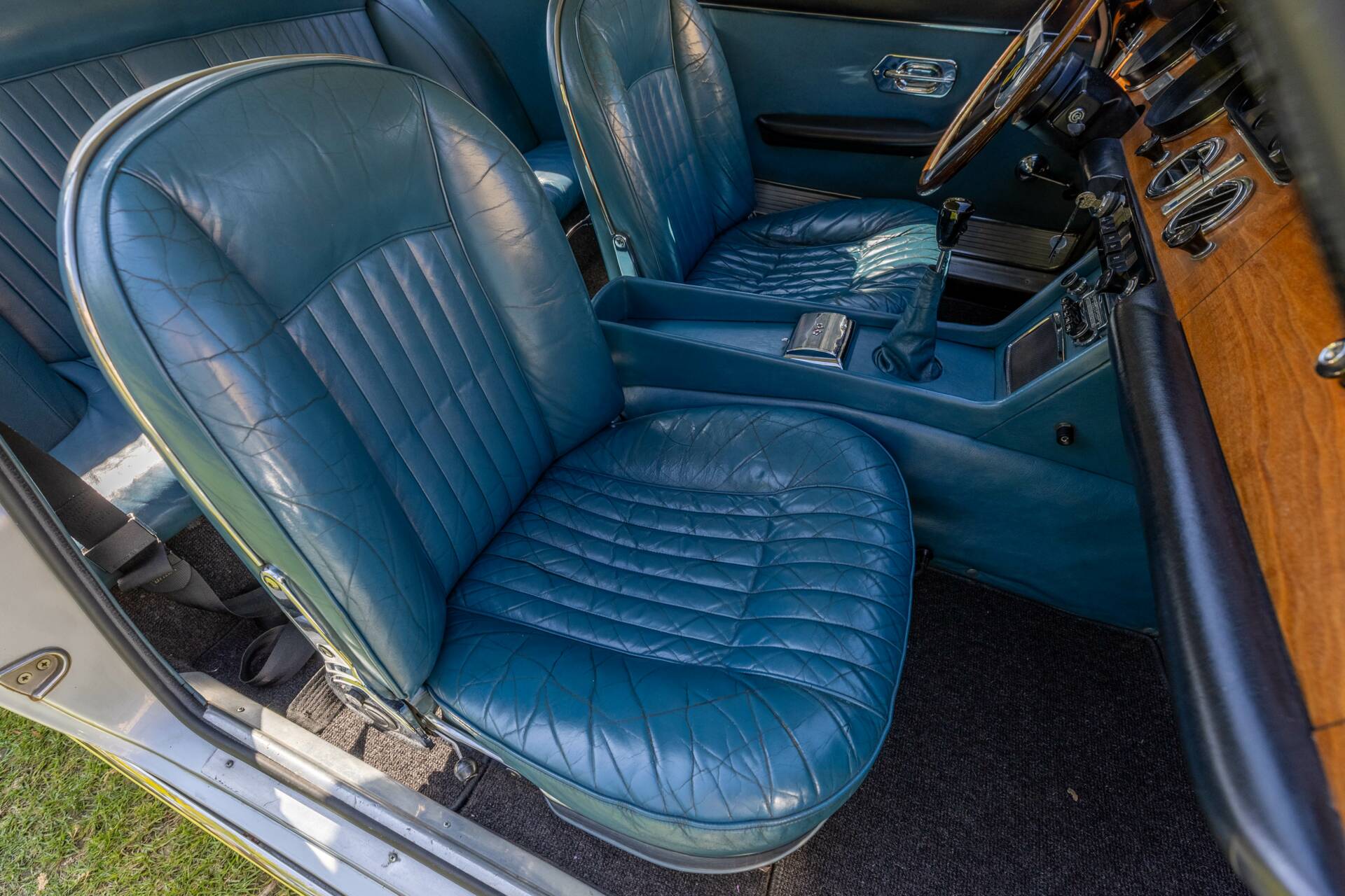 Les cuirs « Bleu Nuvola », avec une patine d’époque préservée, viennent d’être nettoyés et nourris