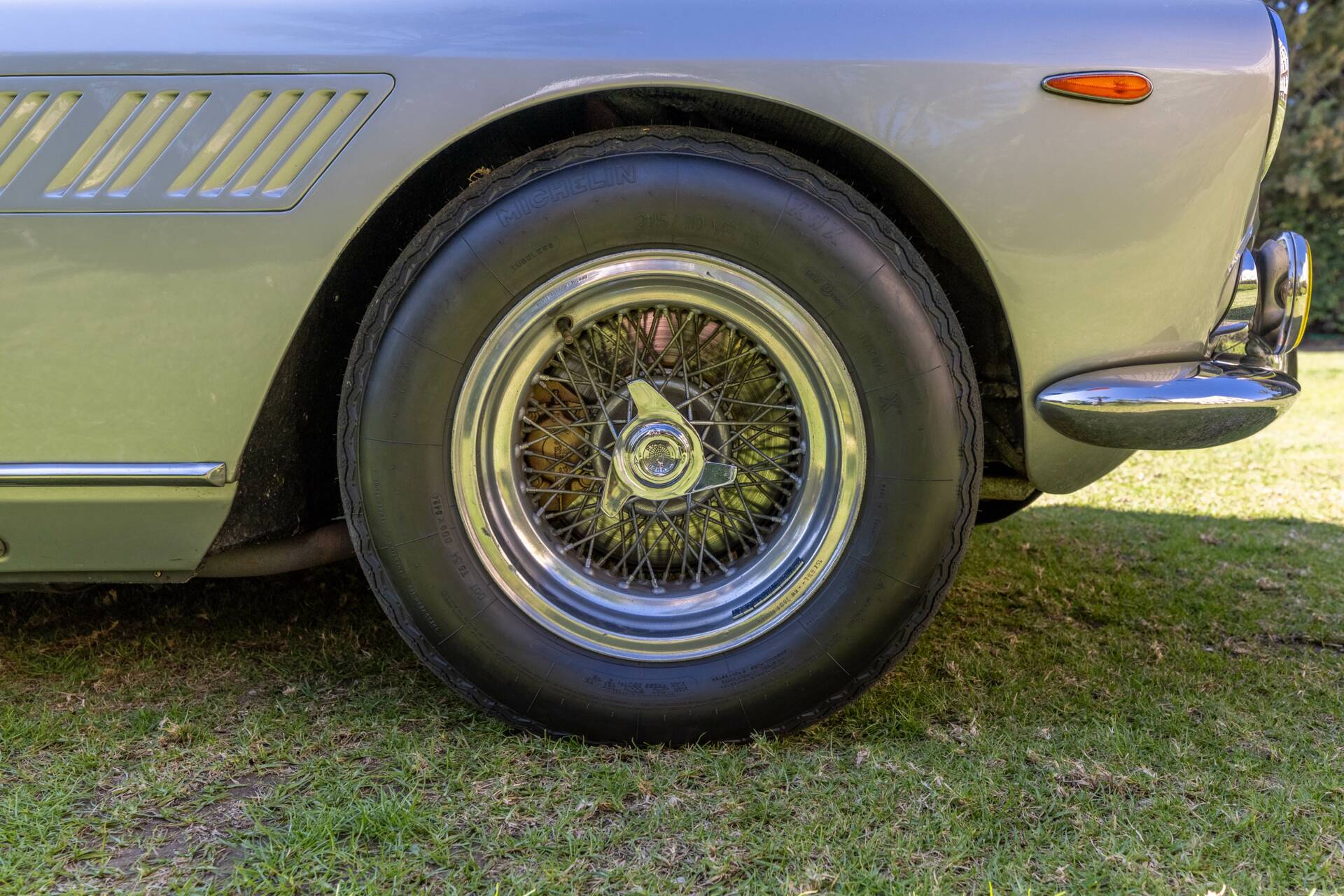 Les jantes Borrani sont en bon état de conservation, et sont chaussées de pneus neufs Michelin adaptés.
