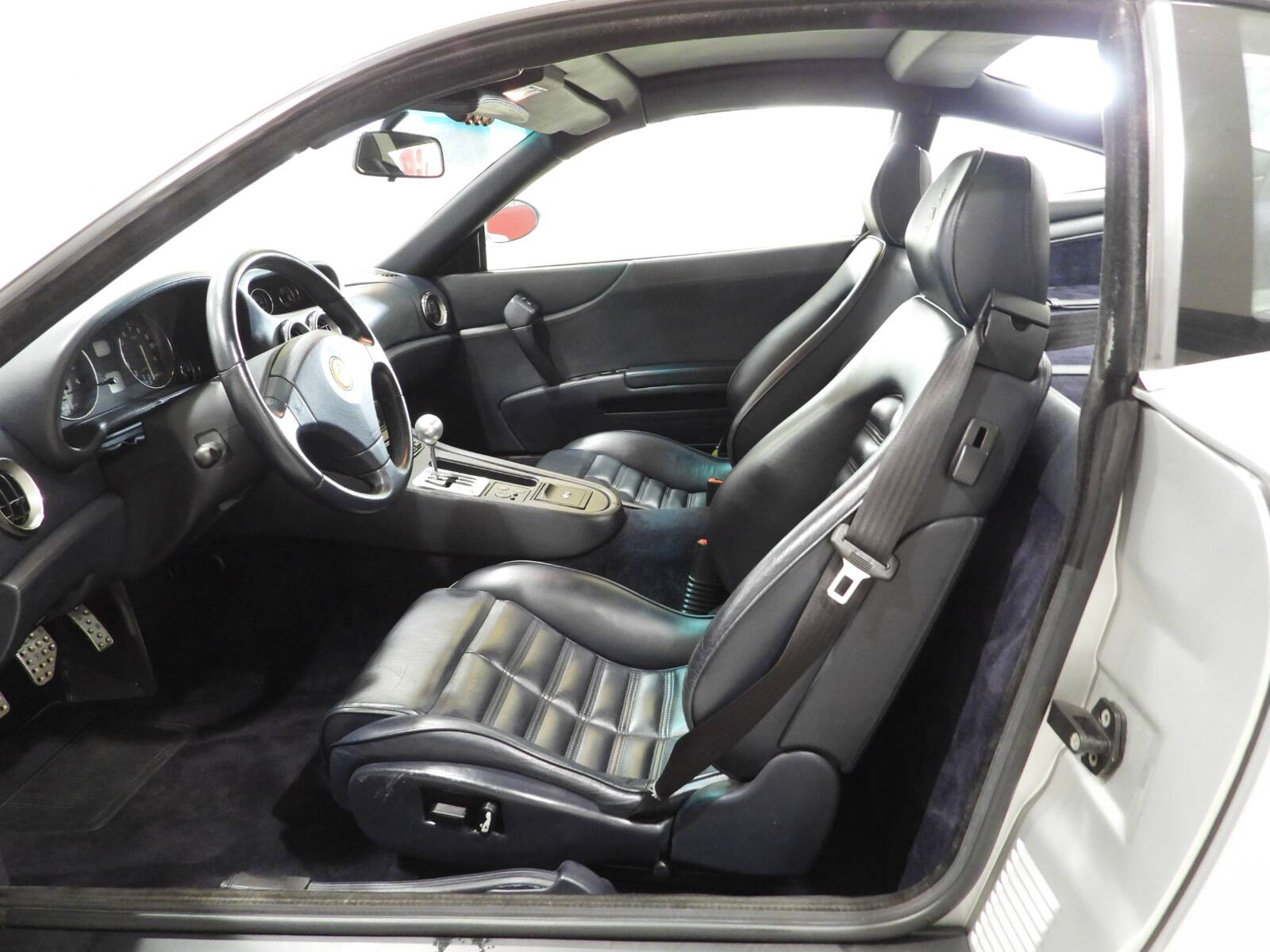 Sedili a regolazione elettrica, pannelli e cruscotto in tutta pelle connoly blu scuro, Volante con Airbag a tre razze Ferrari con corona in pelle, Moquette in lana blu al pavimento, Pedaliera sportiva in alluminio, Climatizzatore automatico, Autoradio AM/FM a cassetta Stereo 7 Ferrari XR – F21RDS originale dell’epoca con caricatore CD, Doppio specchio esterno a regolazione elettrica in tinta carrozzeria, Vetri elettrici, Fari fendinebbia a luce bianca, Cerchi in lega Ferrari a 5 razze con calipper nere con pneumatici Michelin pilot super sport anteriori 255/40 ZR18 e posteriori 295/35 ZR18