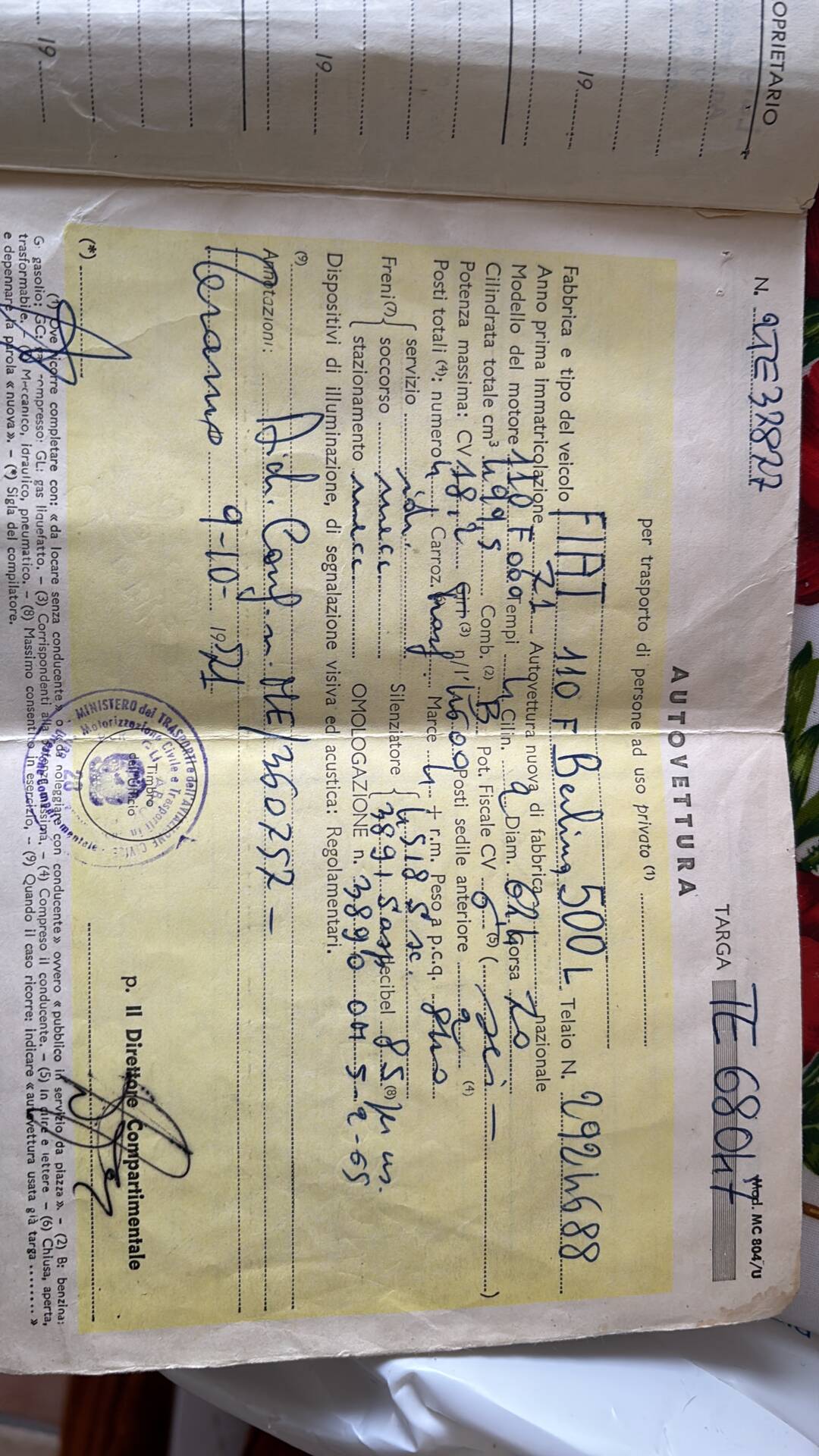 Beautiful example of a 1971 Fiat 500 L, in original, well-preserved condition, with matching numbers, CRS (Historical Relevance Certificate) and only two owners from new.