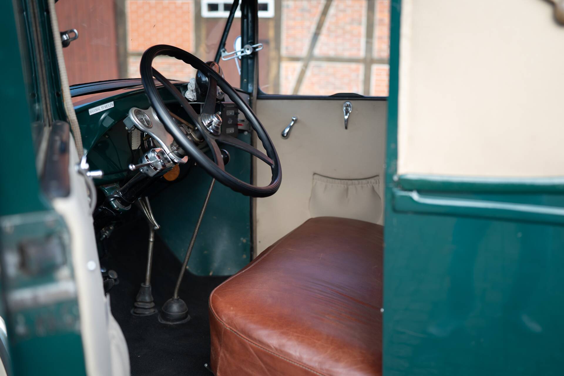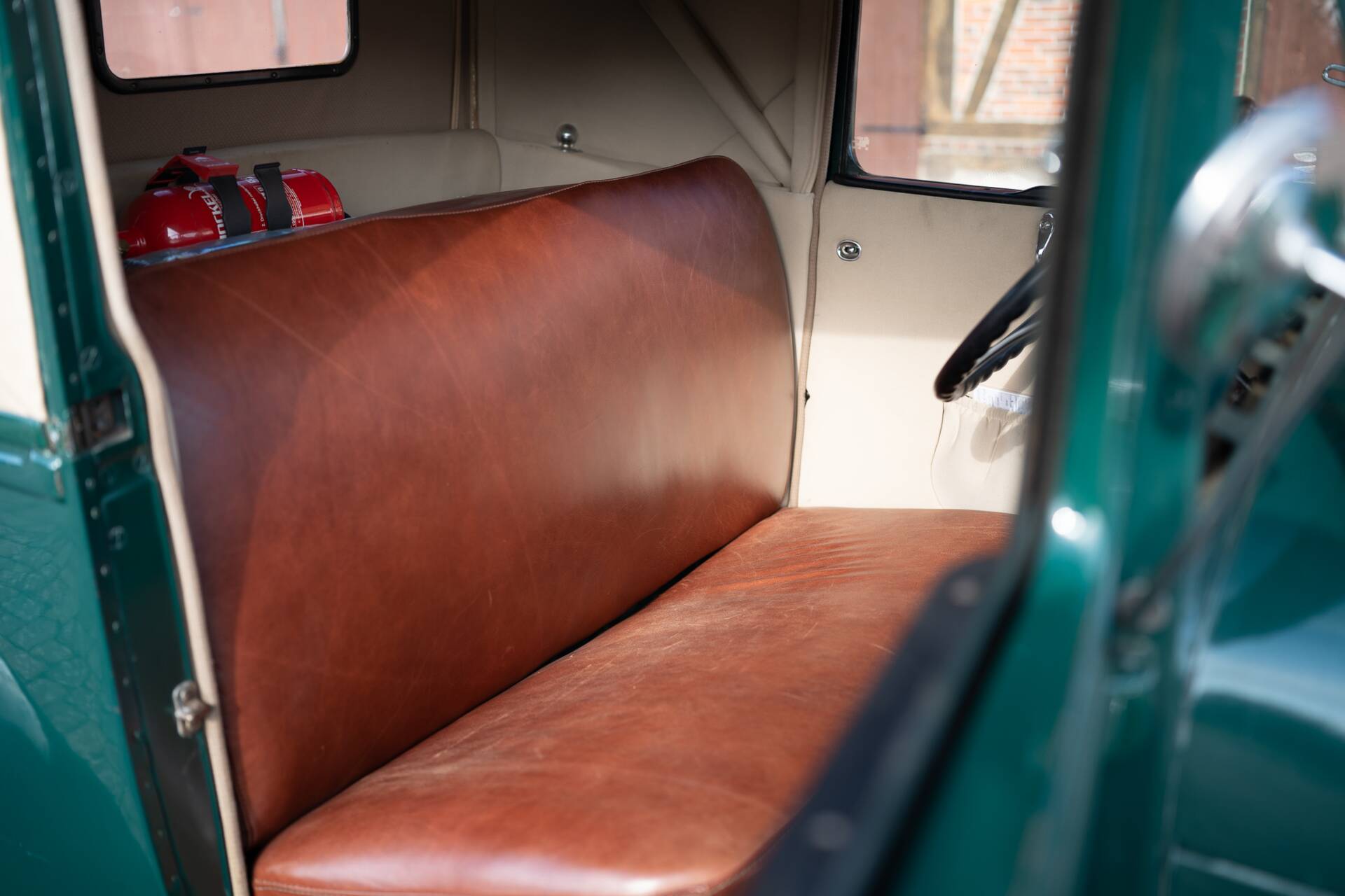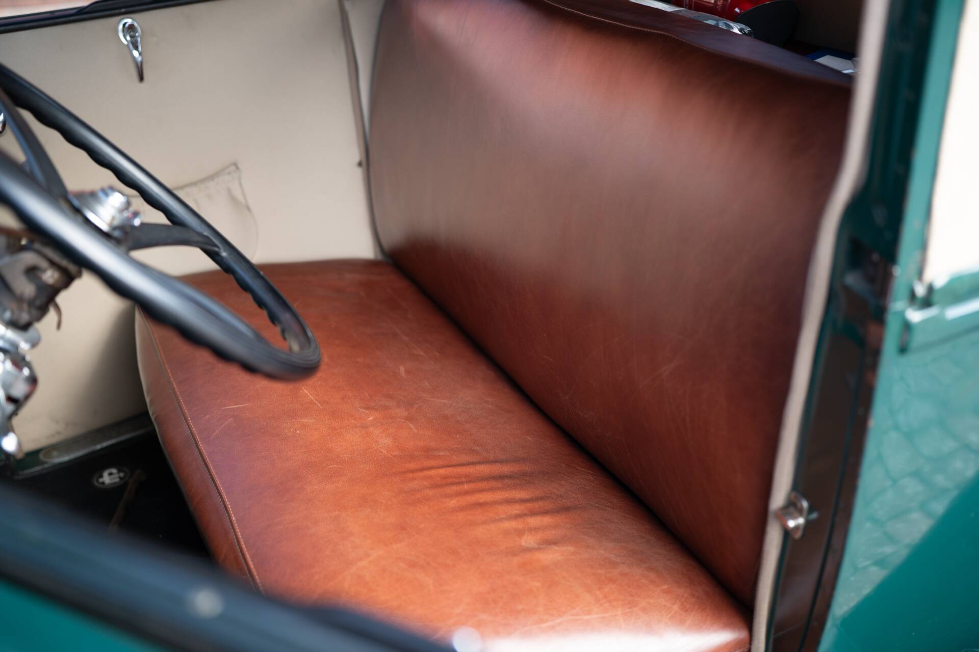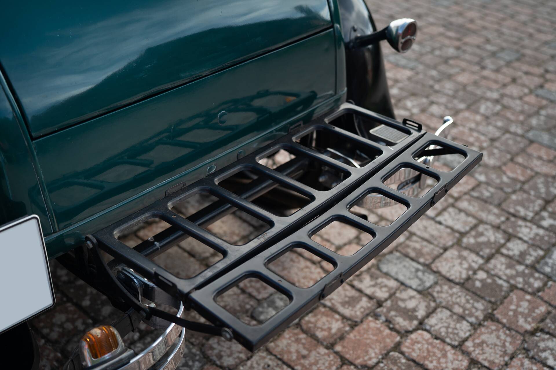Unter der Haube knistert ein ehrlicher 3300 ccm Vierzylinder-Motor, der tapfere 39 PS auf die Straße bringt. Das ist keine Rakete, das ist ein Statement: Wir haben Zeit. Genug Zeit, um die Landschaft zu genießen und vor allem genug Zeit, um die wahre Hauptattraktion dieses Prachtstücks zu würdigen: den legendären Schwiegermuttersitz!