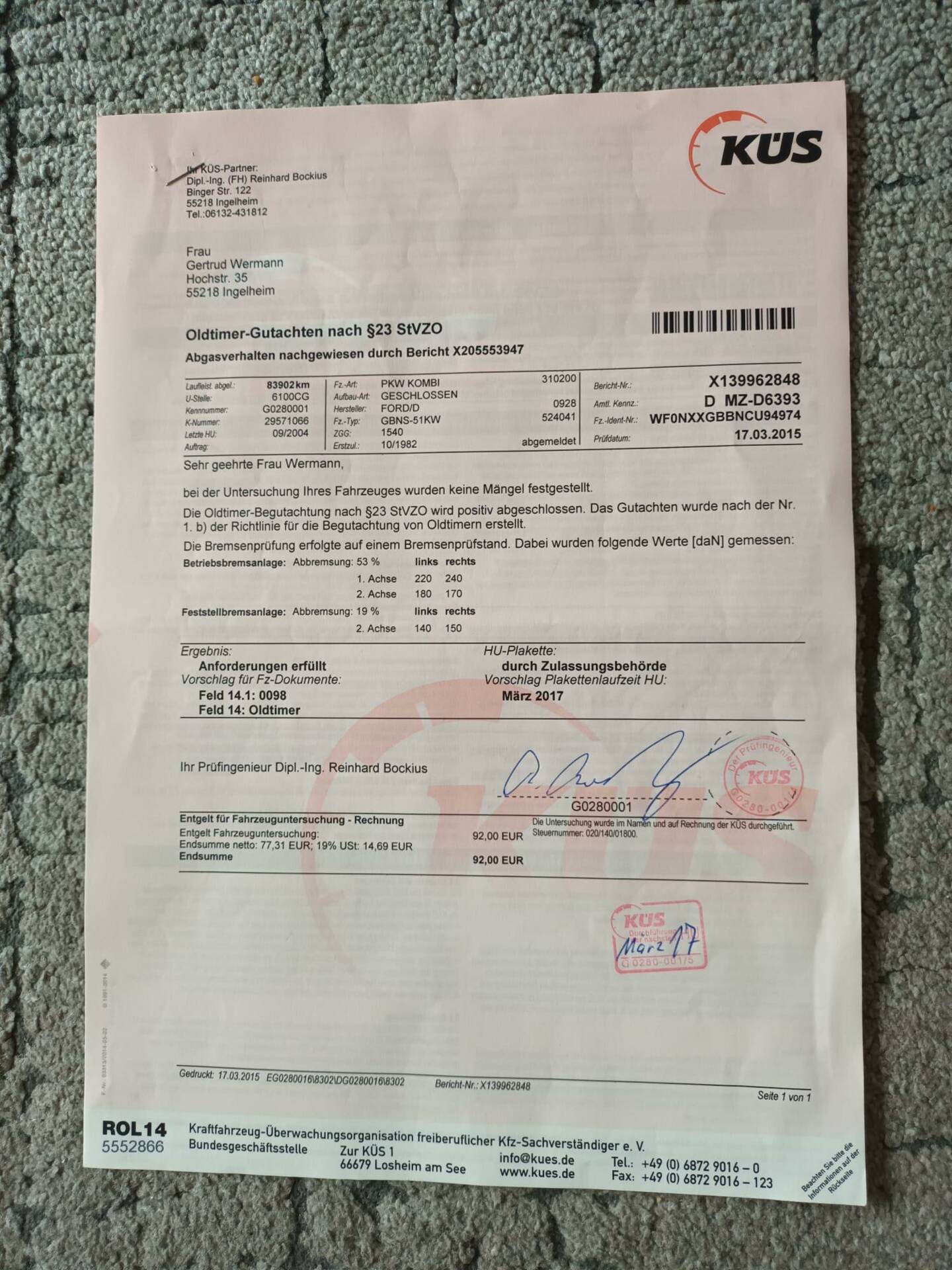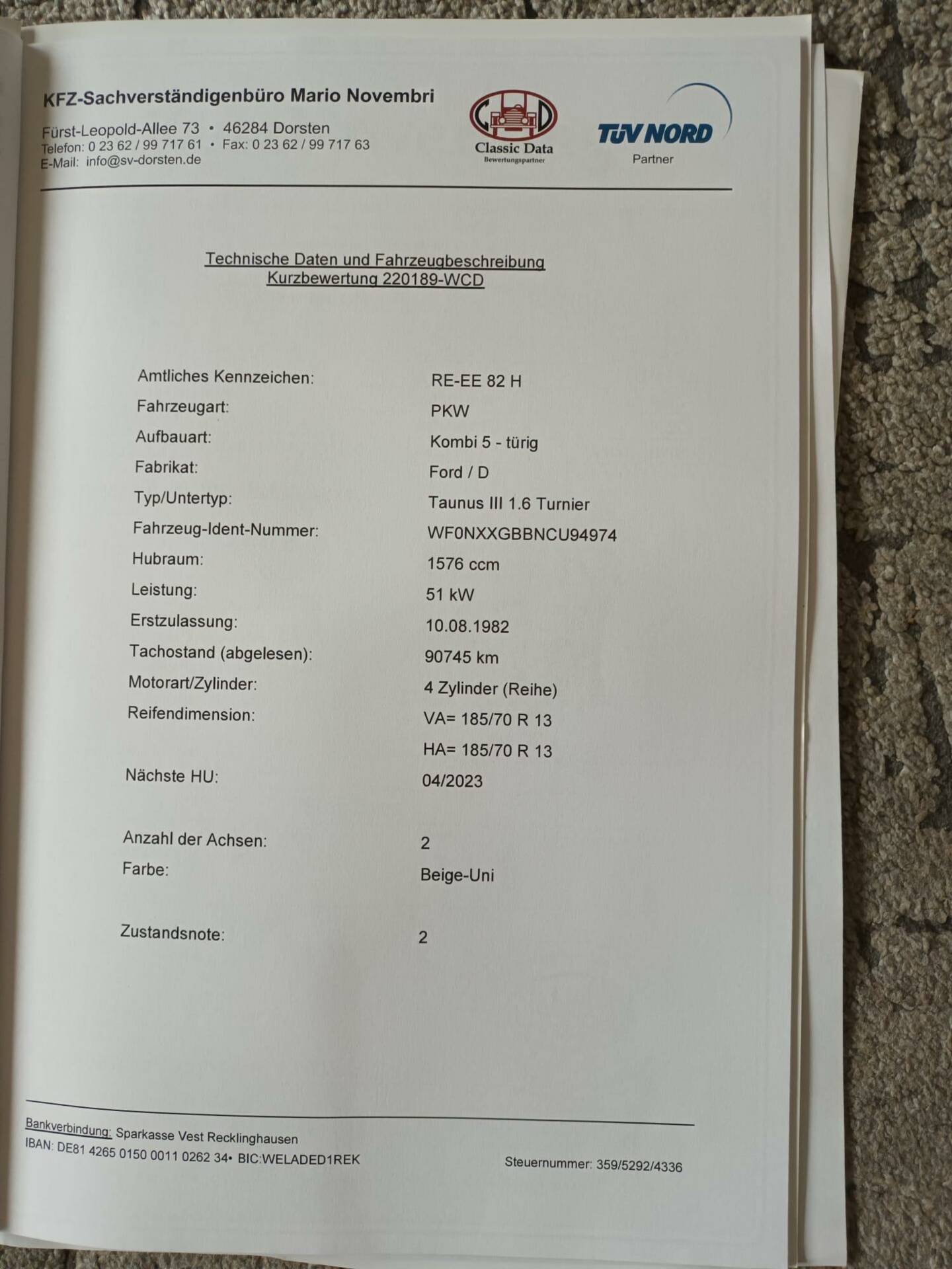 Zu verkaufen ein schöner weitgehend Orginaler Ford Taunus tunier bauj 82 mit H Kennzeichen