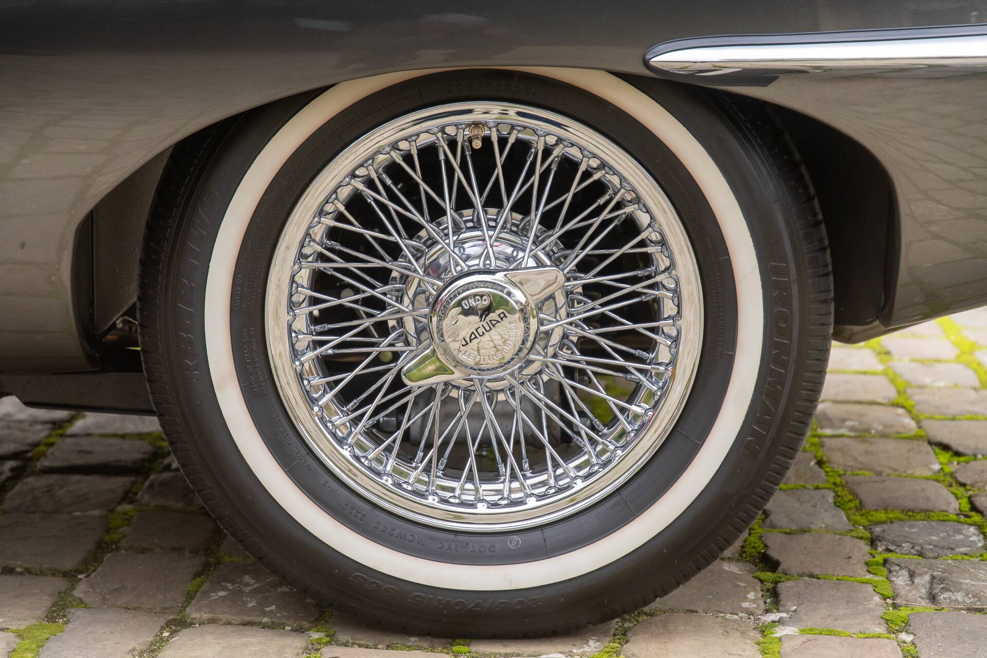 The interior has been restored with equal fidelity. Its aluminium-trimmed centre console, early-pattern toggle switches, and beautifully trimmed leather seats recreate the unmistakable atmosphere of a first-series E-Type. All instruments have been rebuilt, wiring looms replaced, and every detail—from the weave of the carpets to the stitching of the hides—completed according to original specifications.