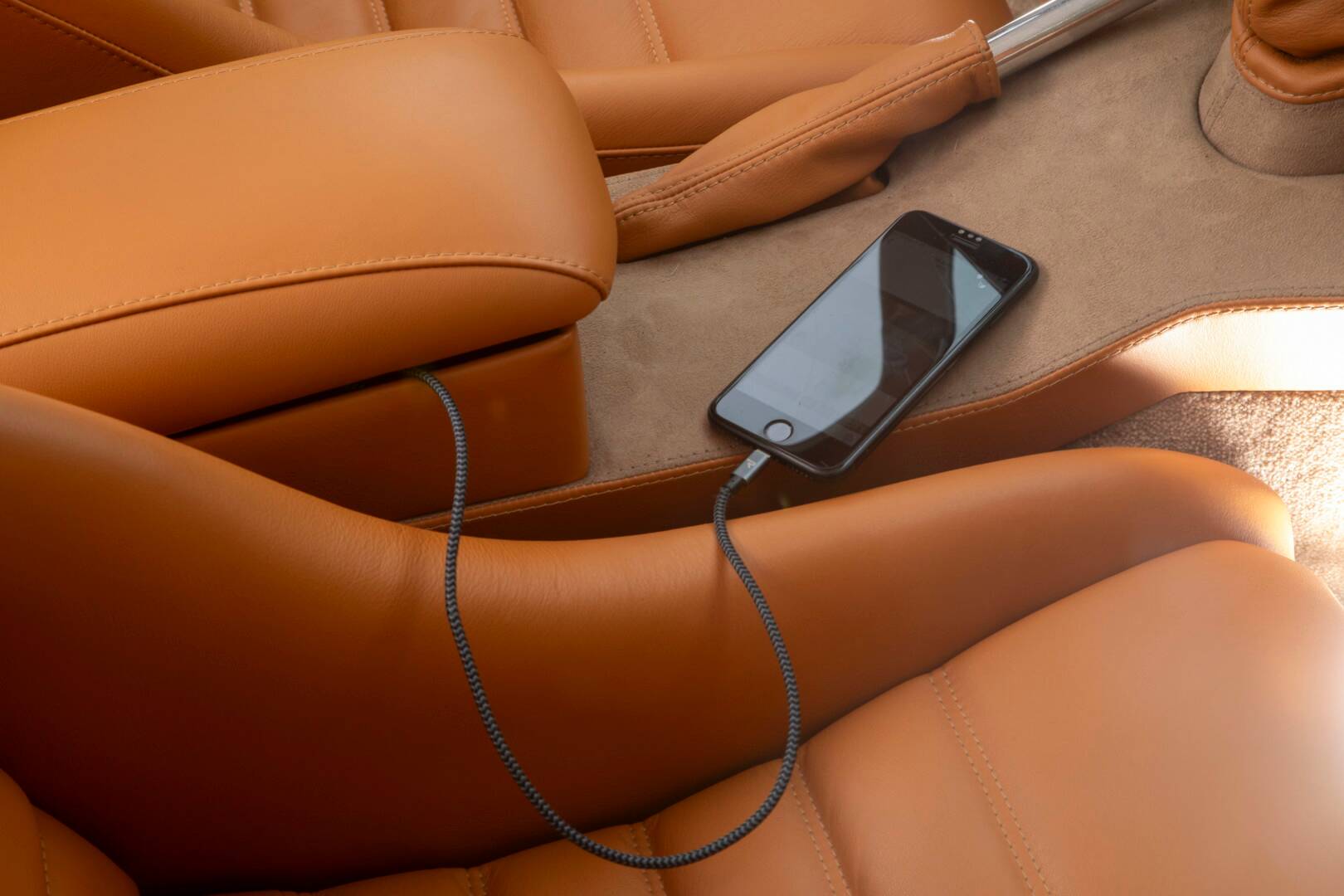 Lors de sa restauration de cette Jaguar type E, nous avons intégré un système multimédia Pioneer équipé d’Apple CarPlay, permettant également l’ajout d’une caméra de recul, ainsi qu'une direction assistée électrique - un véritable atout pour les manœuvres.