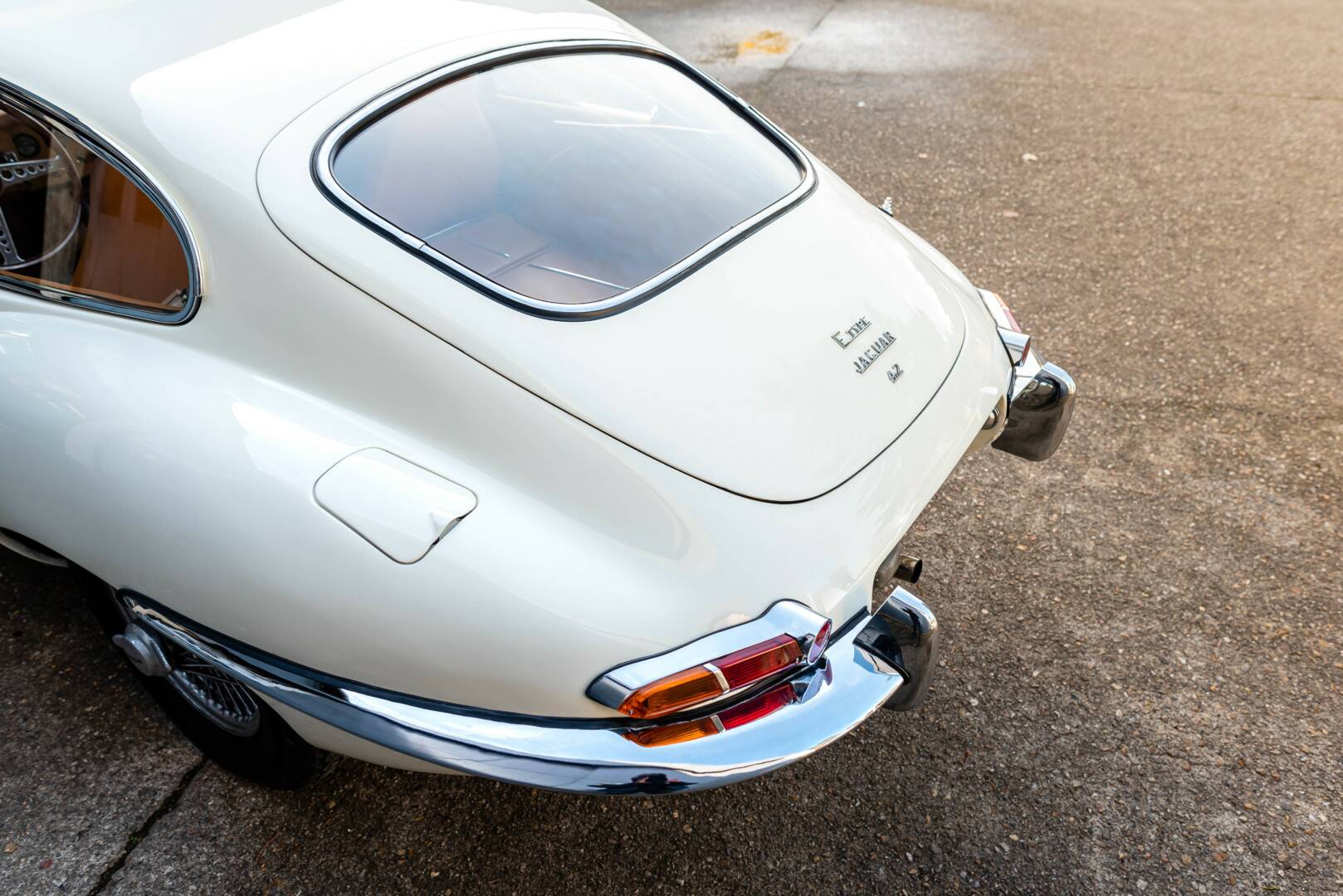Livrée neuve en juillet 1965 à Saint-Cloud (92), cette Jaguar Type E arborait à l’origine une élégante teinte Golden Sand associée à un intérieur en cuir beige. Après plusieurs décennies discrètes, elle réapparaît en 2018 à Lyon, conservée avec soin par son propriétaire des vingt dernières années. Séduit par son authenticité, nous en faisons alors l’acquisition.