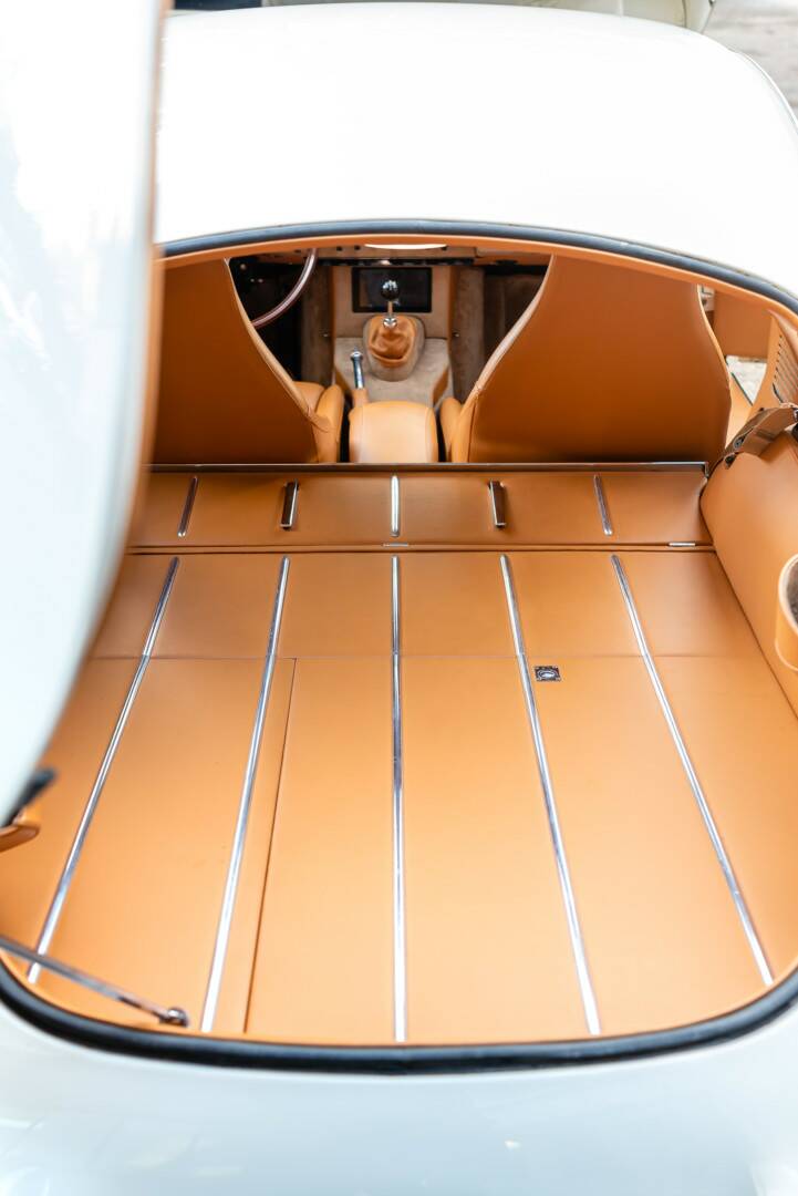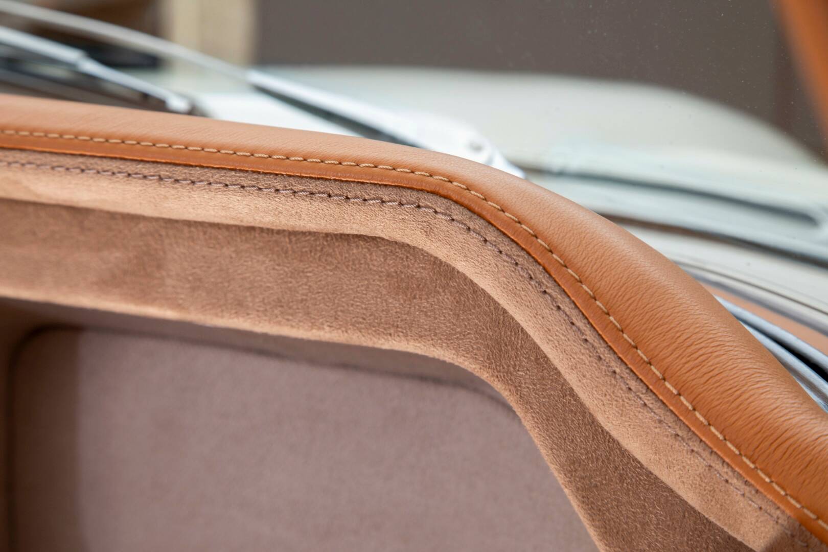 Sa sellerie a été intégralement refaite et repensée dans nos ateliers en 2023. Les cuirs Tan et l'alcantara , soigneusement sélectionnés, sont encore aujourd’hui dans un état remarquable.