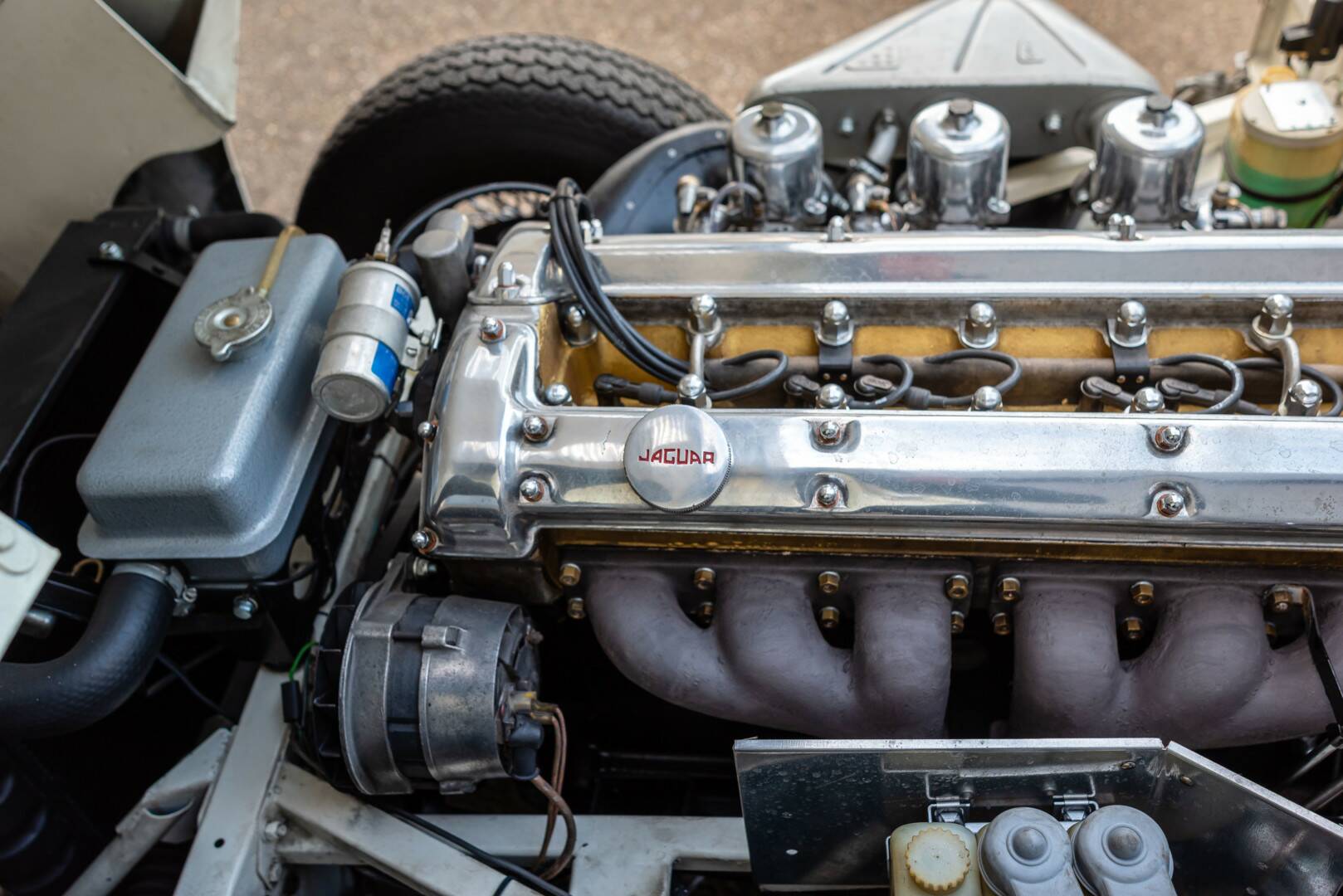 Quatre roues indépendantes à rayons et freins à disques, un volant bois et un tableau de bord tout en aluminium, les sièges-baquets et les phares carénés, les 3 carburateurs SU chromés en ligne et les 265 chevaux du moteur XK... Voilà ce que représente cette nouvelle ligne Jaguar appelée TYPE E.