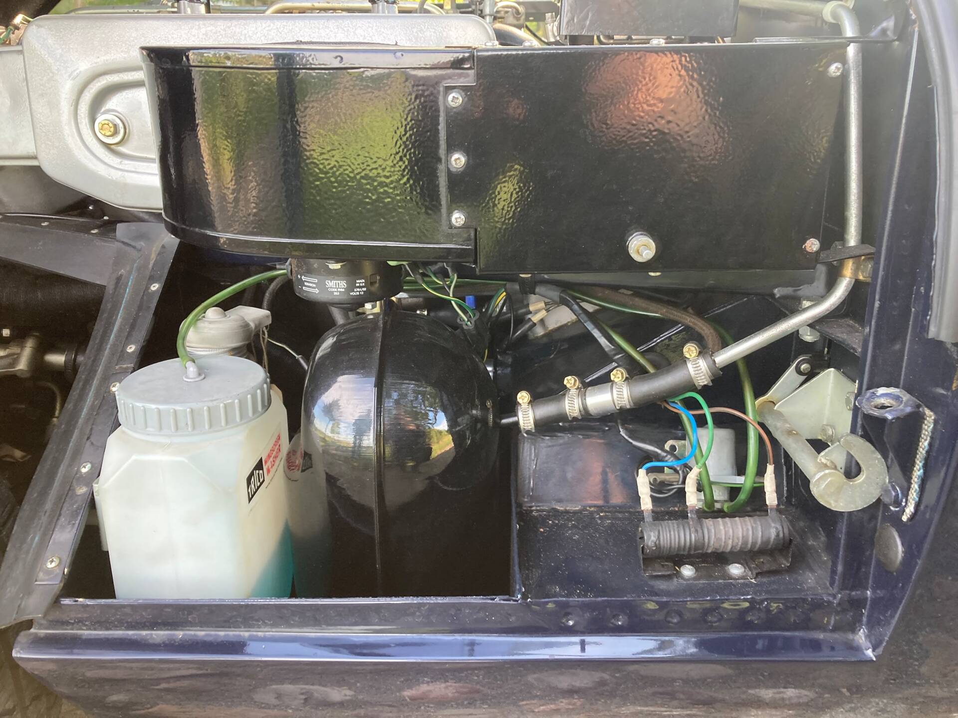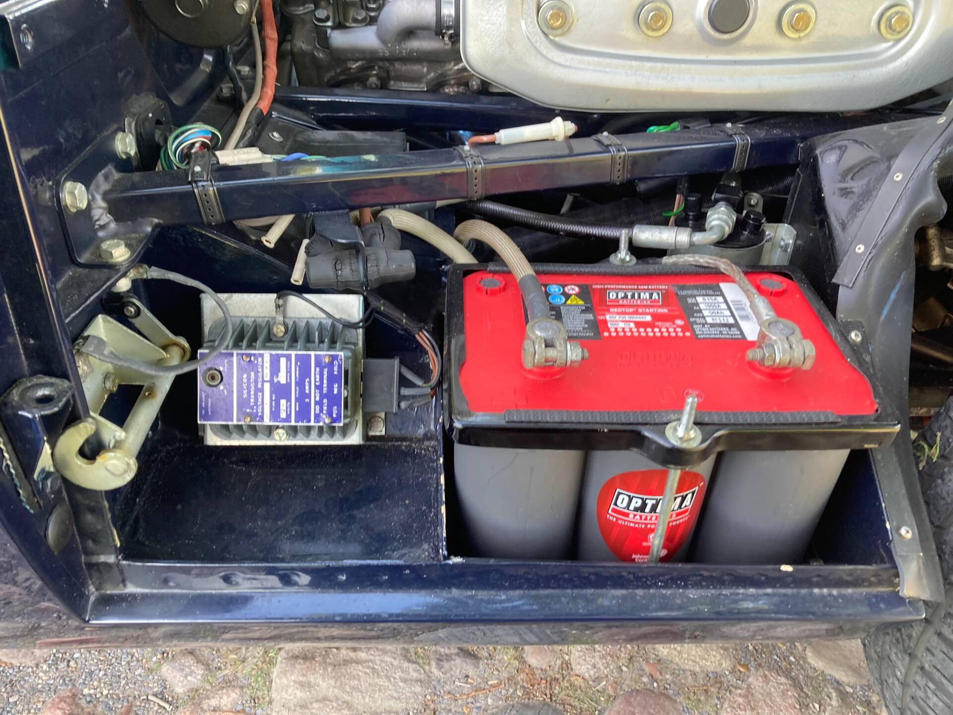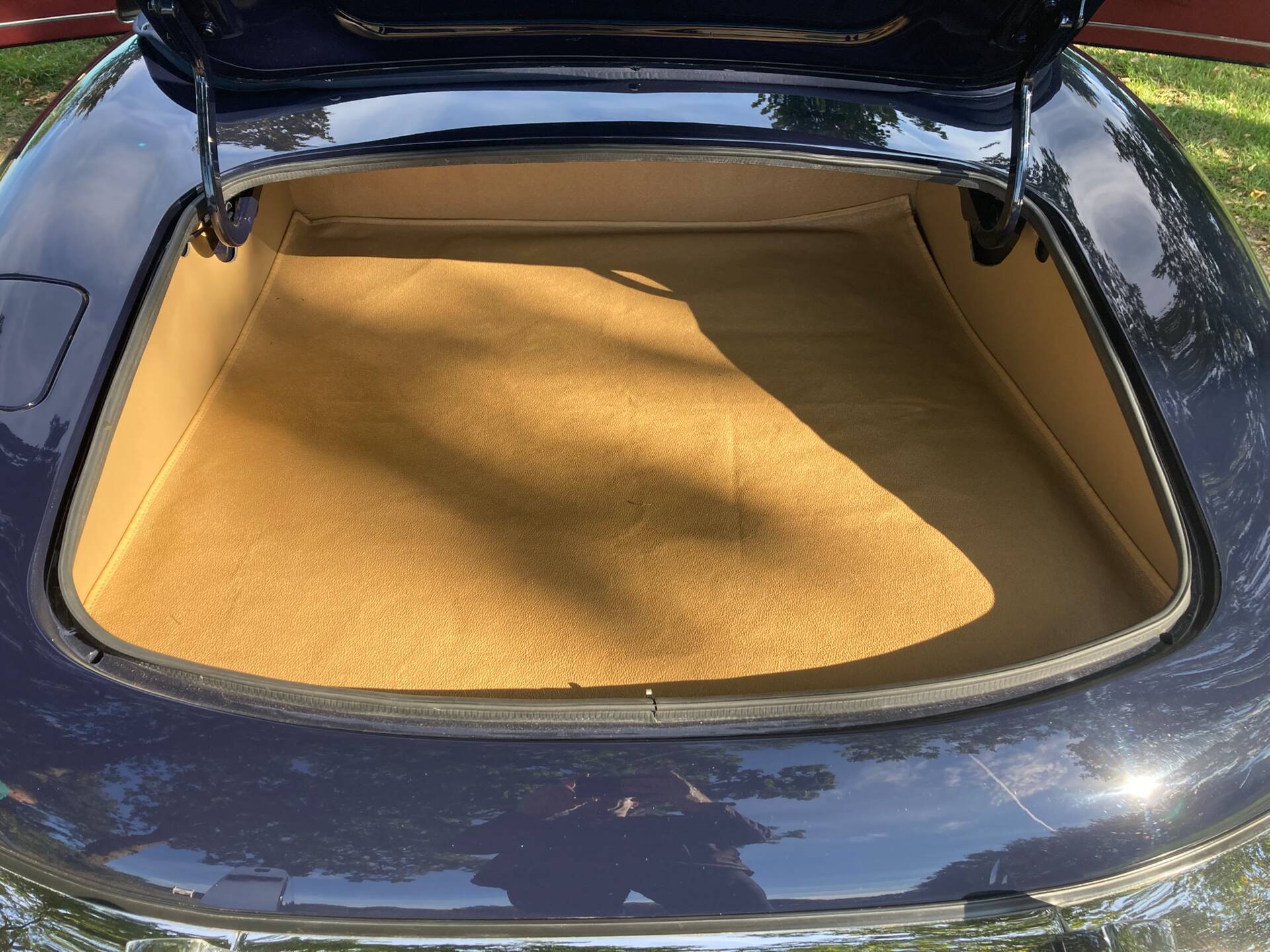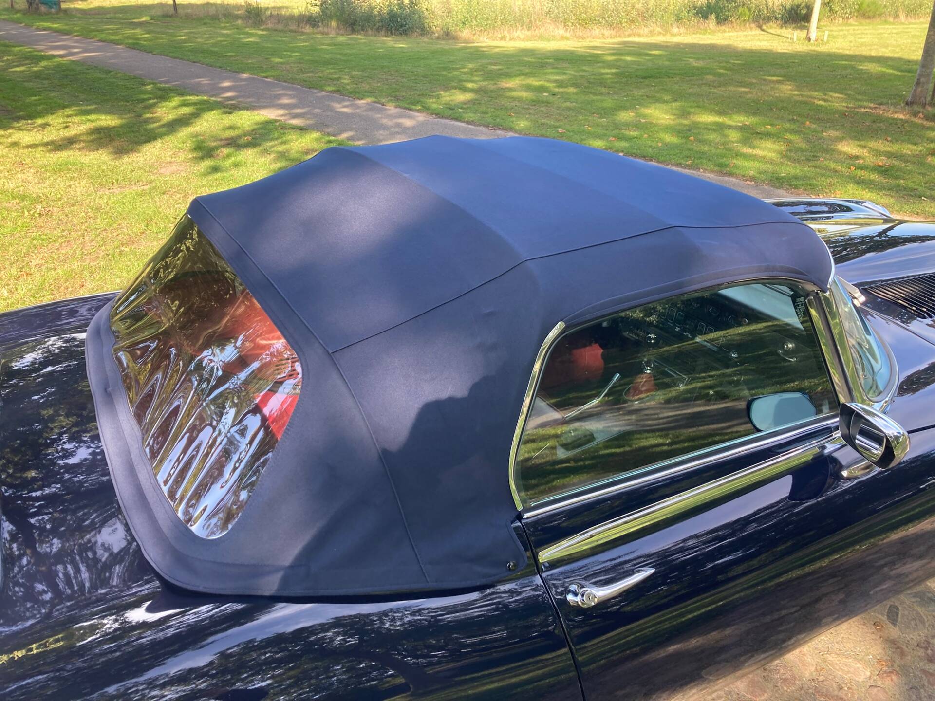 Este Jaguar E-Type Serie 3 Roadster de 1973, presentado en azul oscuro con techo duro a juego, representa lo mejor del espíritu deportivo británico. Equipado con un potente motor V12, ofrece una conducción suave, potente y llena de carácter.