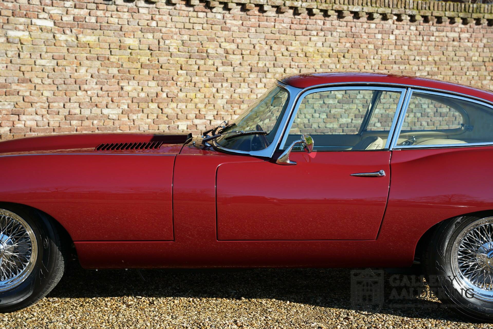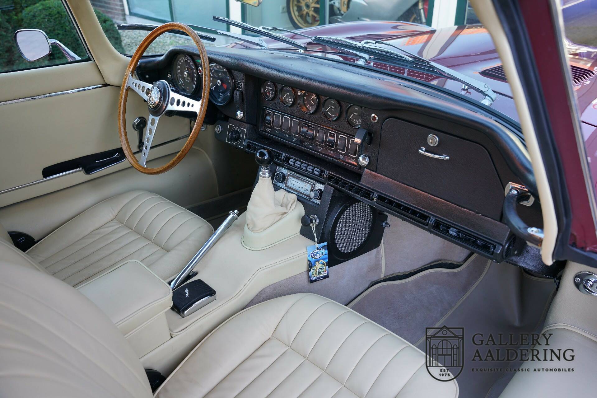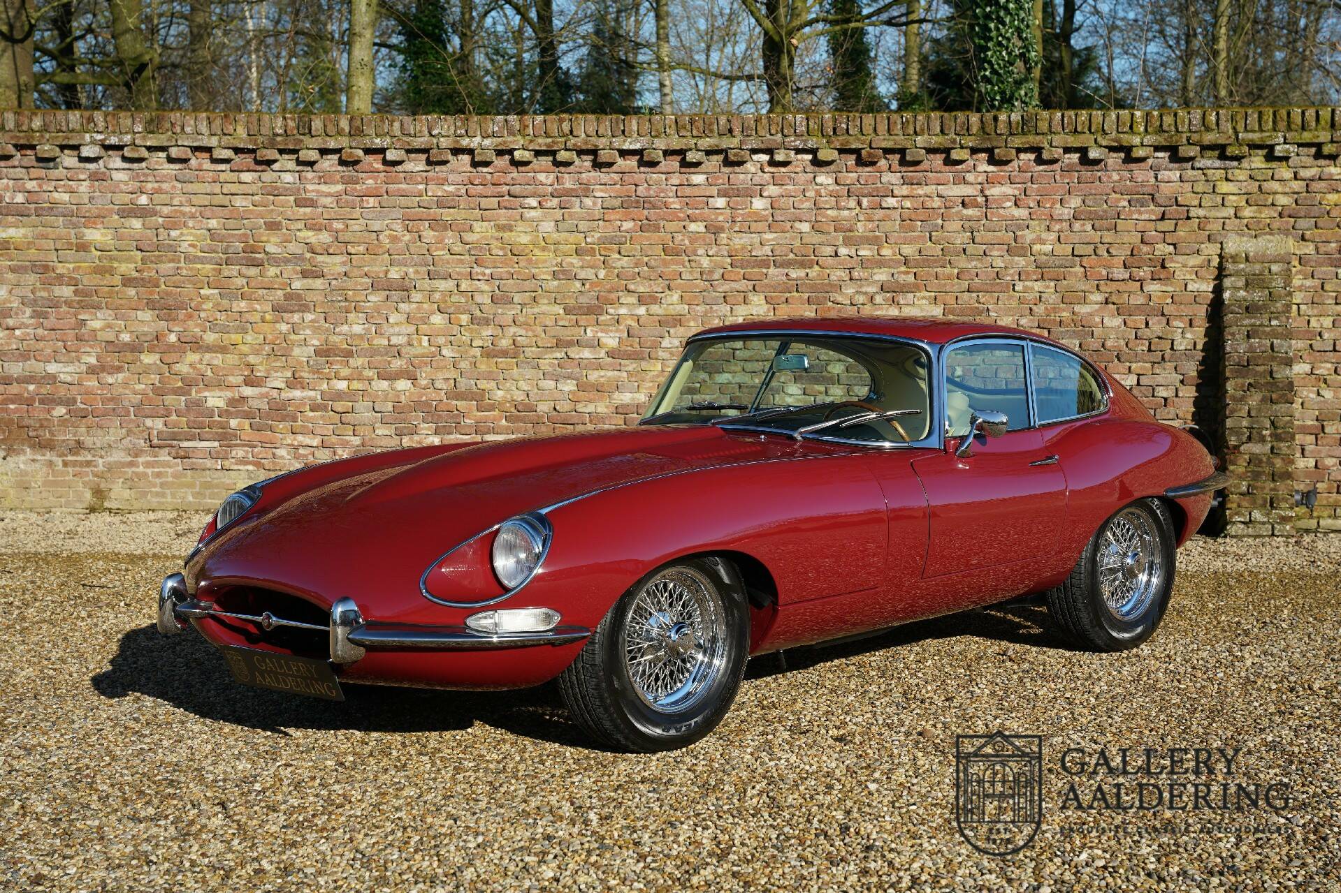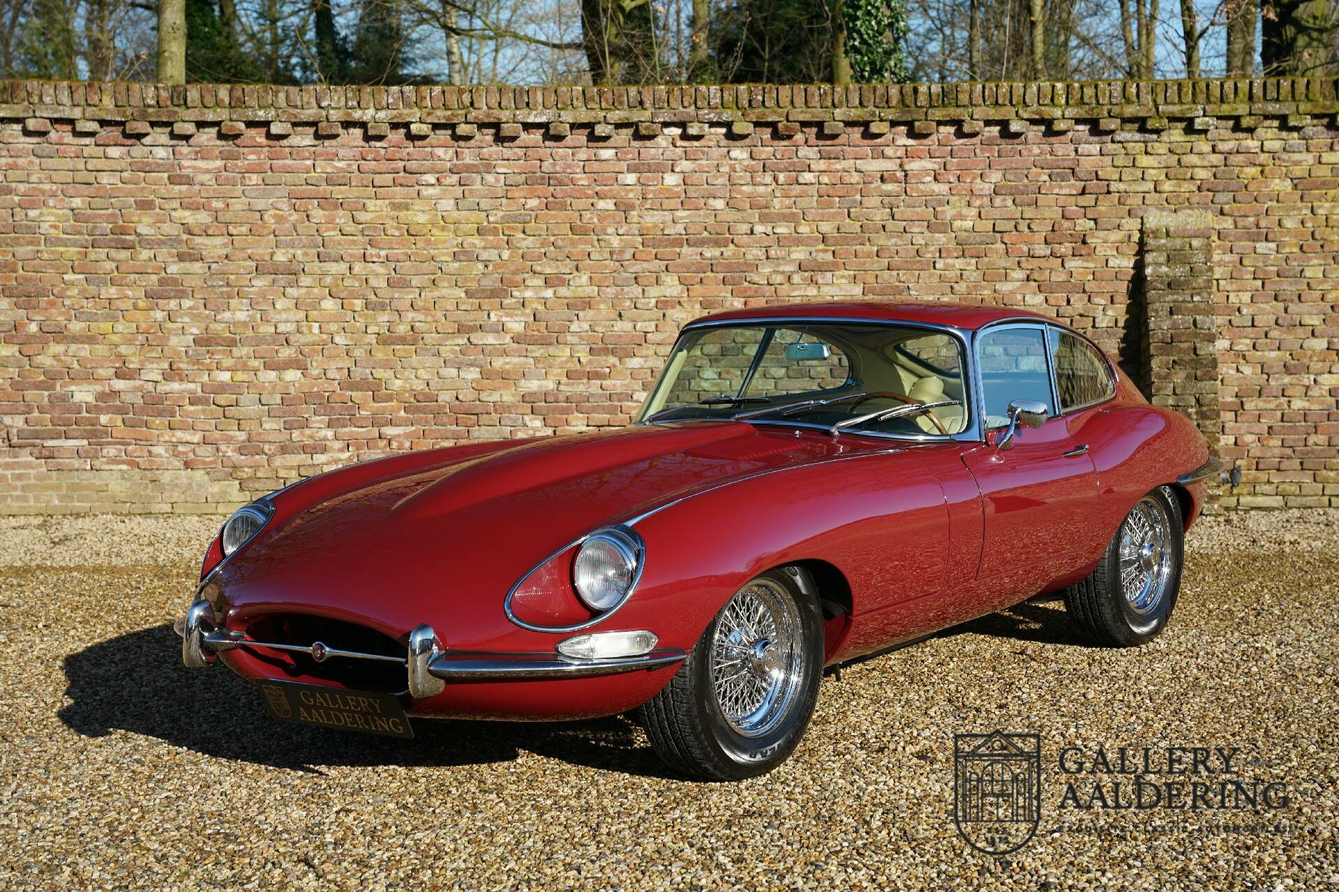 Jaguar E-Type 4.2 Litre Coupe Series 1.5 Superb restored condition, Matching Numbers example (offered with Jaguar Certificate) , AC from factory, Extensive photo report of the "Bare metal" restoration, Completely correct to the original factory specifications, Including correct colors "Opalescent Maroon / Beige leather"