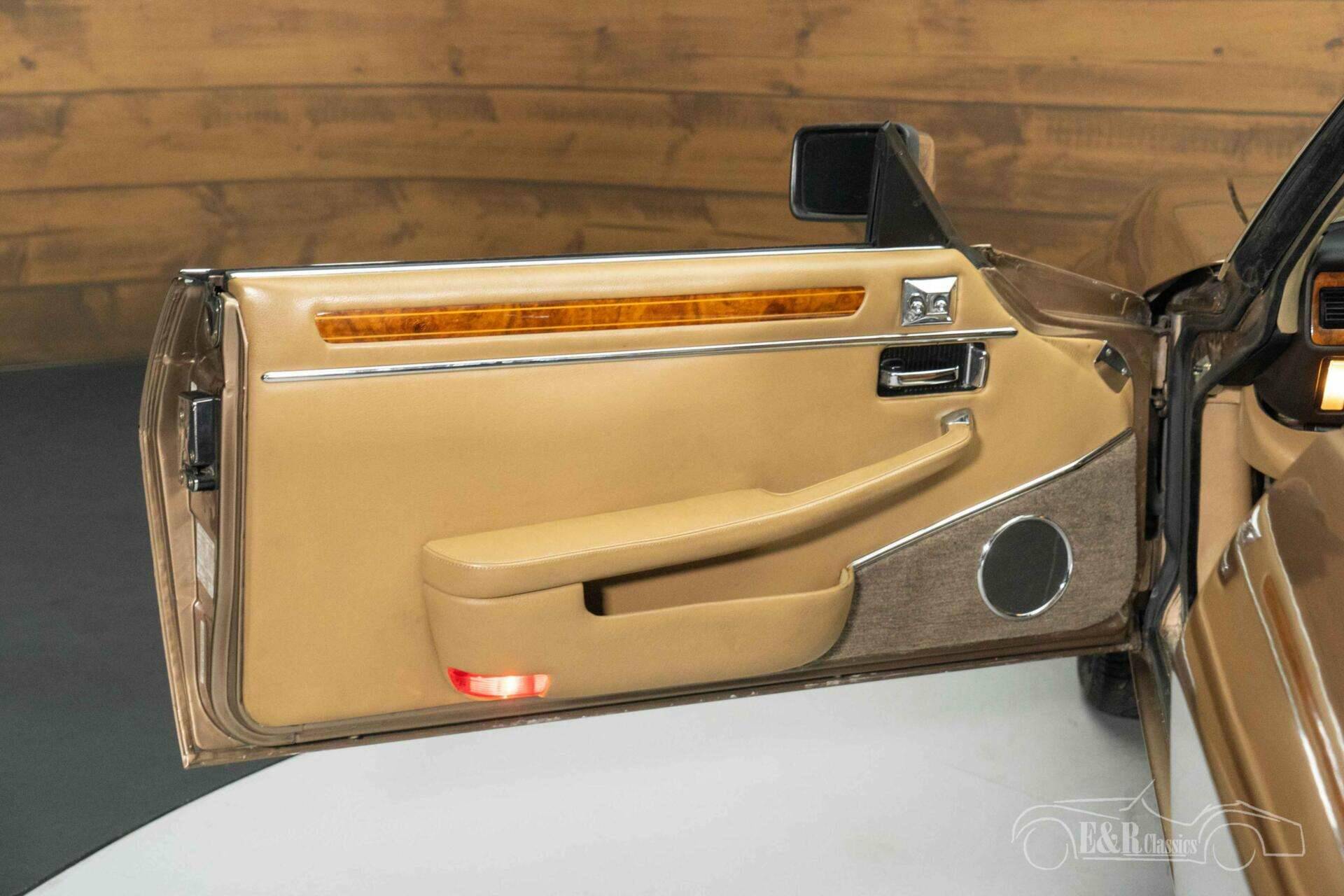 In terms of appearance, this Jaguar is a real eye-catcher. The satin beige paintwork stands out beautifully in combination with the dark brown, electrically operated soft top and the original alloy honeycomb wheels. The interior is equally stylish: brown leather upholstery with chestnut piping, beautiful wood inlays, and a very neat finish create a particularly warm and chic atmosphere. The interplay of exterior and interior colors gives this XJS an extremely exclusive appearance, the likes of which you rarely see. A richly equipped, extensively restored convertible that is ready for many new, carefree kilometers.