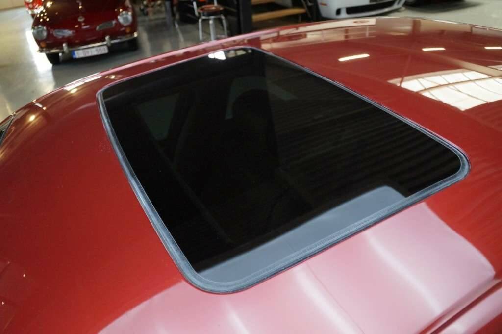 Deze uitvoering is extra aantrekkelijk uitgevoerd in Ruby Red met een prachtige crème lederen interieur en zwarte piping — een zeer stijlvolle en zeldzame combinatie.