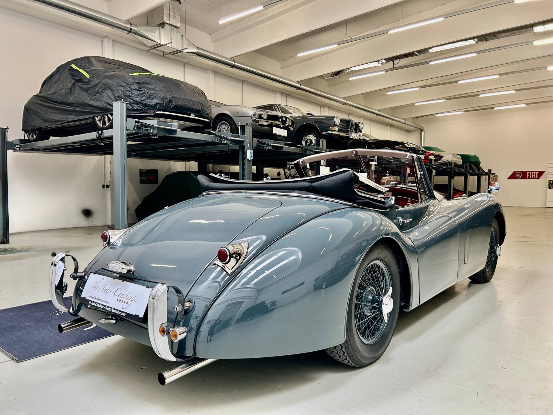 Sämtliche Servicearbeiten wurden bei Peter Orlainsky und später bei dessen ehemaligem Mitarbeiter und Markenspezialisten René Feineler (Premium Garage) durchgeführt. Zur Verbesserung der Alltagstauglichkeit wurde ein zuschaltbarer Lüfter installiert. Für den Komfort bei Fahrten mit geschlossenem Verdeck ist das größere Heckfenster des XK 140 verbaut. Neben den montierten Speichenfelgen in Wagenfarbe ist optional ein Satz Chrom-Speichenfelgen verfügbar.