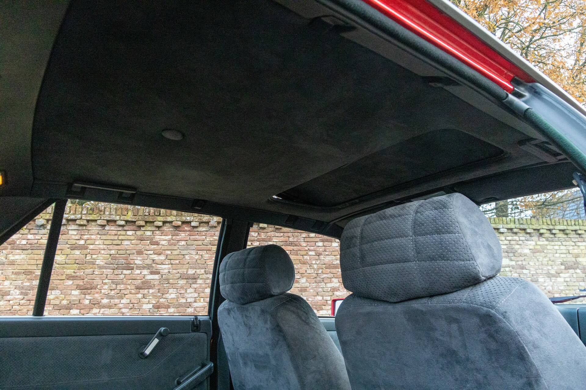 Finished from the factory in Rosso Monza and paired with a dark gray Alcantara interior, this Integrale is presented exactly as enthusiasts like to see it. Compact, muscular, and purpose-built. The flared wheel arches and iconic details were never meant to impress visually—they exist to perform. Even the electric sunroof, one of only four available factory options, adds a subtle layer of comfort to an otherwise uncompromising package.