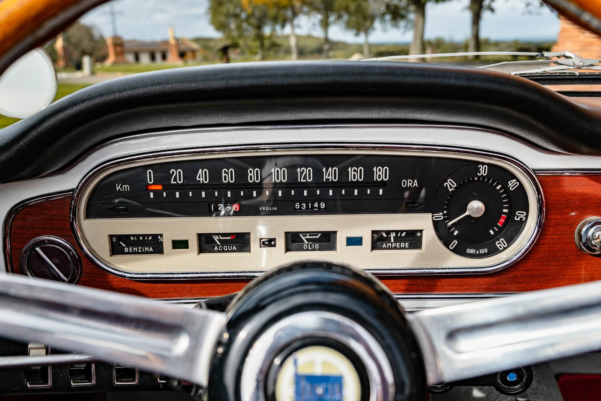 El habitáculo desprende elegancia auténtica: tapicería de época, diseño sobrio y materiales nobles. El amplio espacio interior y el techo descapotable invitan a disfrutar del placer de conducir al aire libre, en un ambiente de puro encanto italiano.