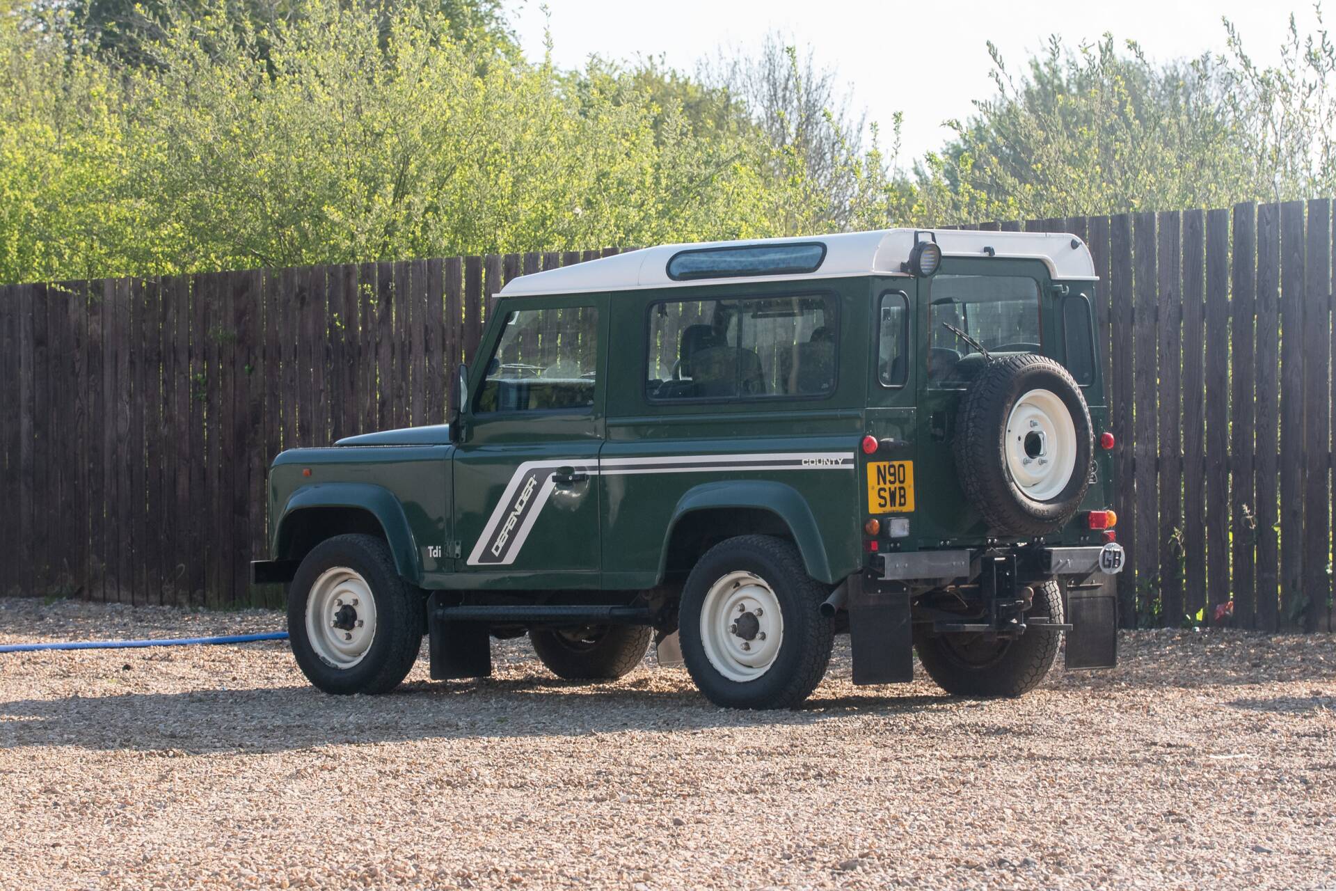 The 1996 Land Rover Defender 90 County is a compact and highly capable 4x4, known for its rugged build and go-anywhere ability. The County specification adds improved comfort and trim over standard models. With its short wheelbase, durable diesel engine, and iconic boxy design, it remains a favourite among off-road enthusiasts and collectors alike.1996 Land Rover Defender 90 County presented in classic green coachwork with a contrasting white roof, offering one of the most iconic and recognisable colour combinations for this much-loved British 4x4. The vehicle sits on white steel wheels, complemented by mud flaps and side steps, enhancing both its rugged appearance and everyday usability.