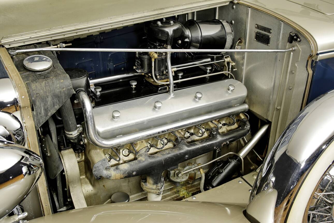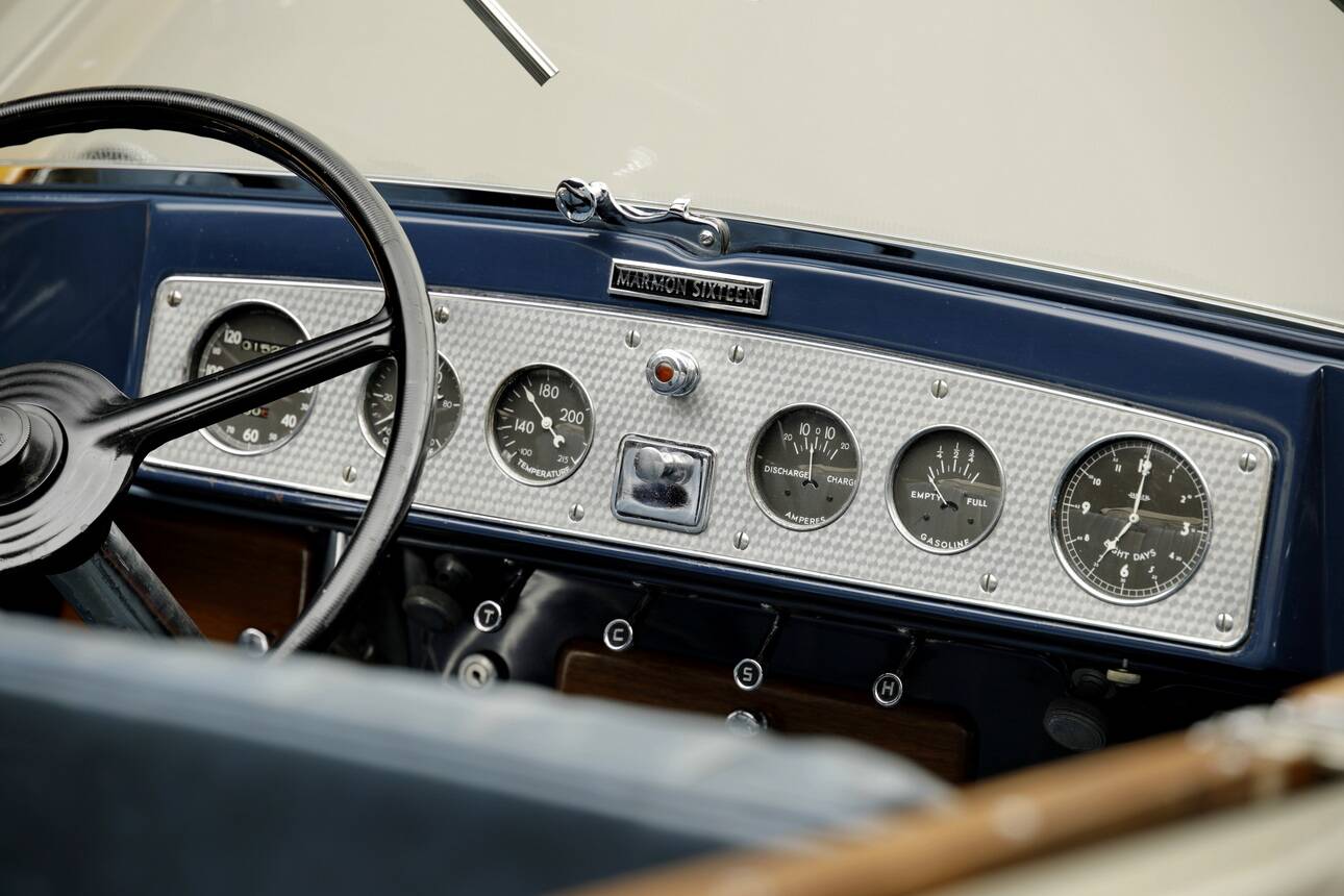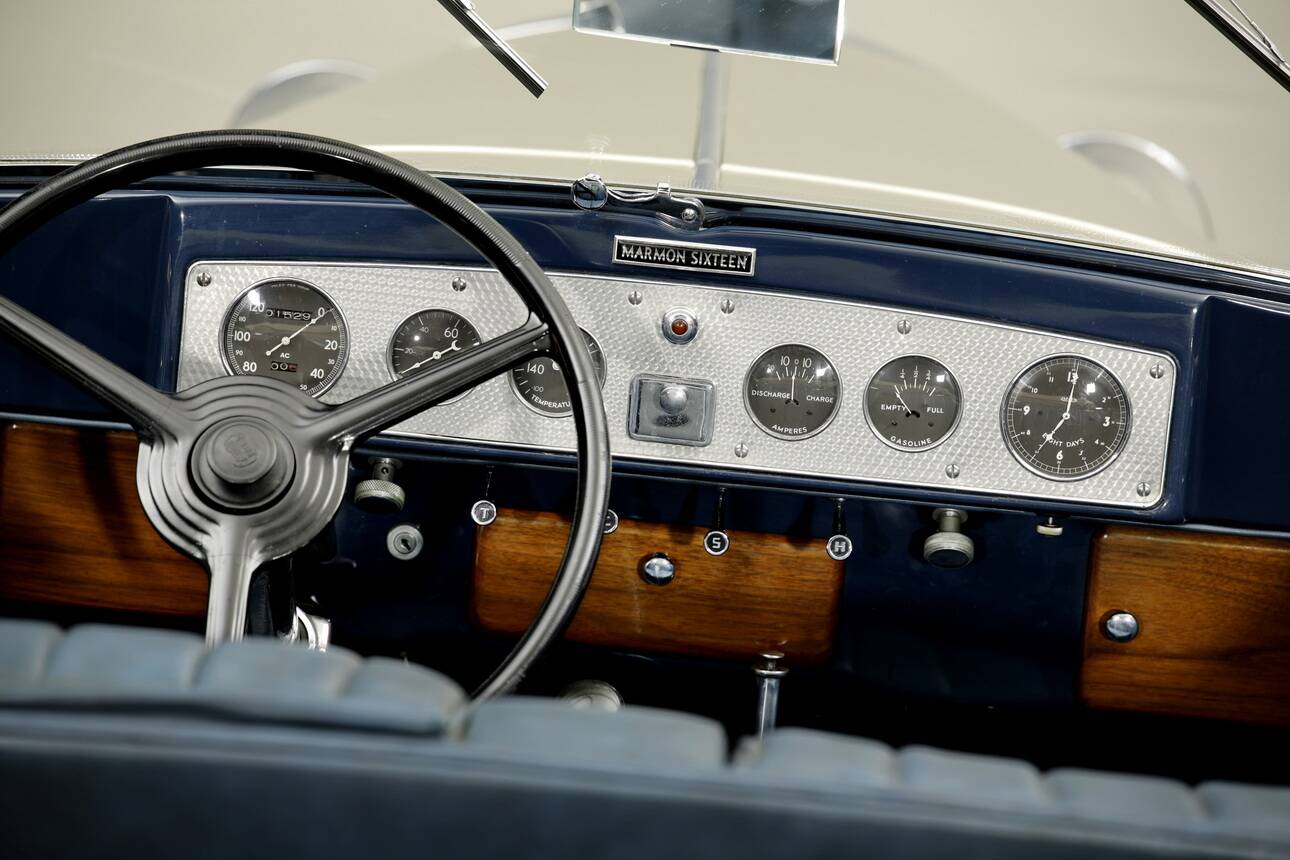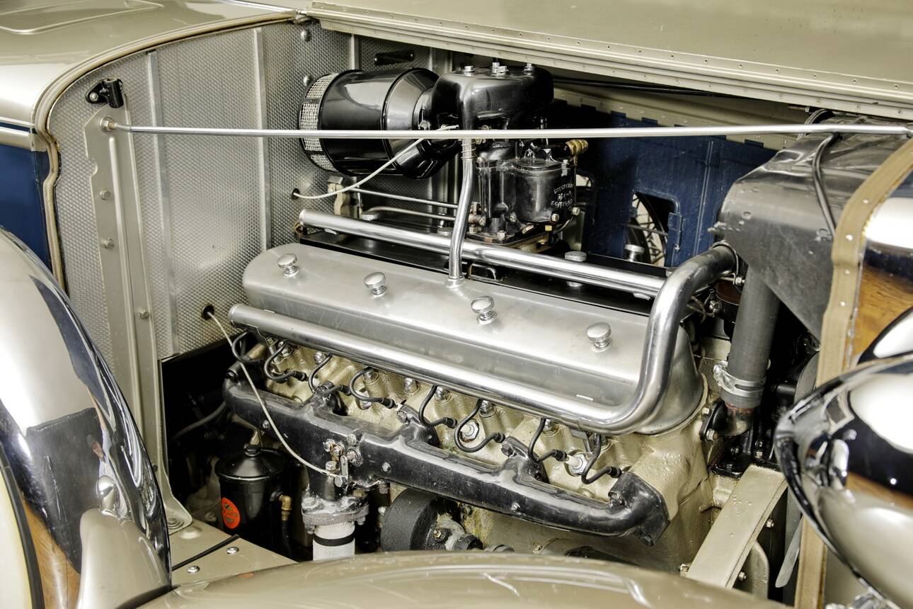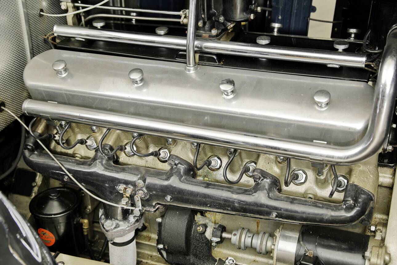 The Marmon V16 was also a technical masterpiece: it had overhead valves and cylinder banks arranged at a 45-degree angle. In addition, the engine block, crankcase, intake manifold, oil pan, cylinder heads and flywheel housing were made of aluminium, making the engine exceptionally light. With a ratio of 6:1, the Marmon also had the highest compression of any American engine at the time. With a displacement of 8,040 cc and 200 hp, it was also more powerful than its competitor Cadillac, and its top speed was measured at 170 km/h. The designation ‘Type 145’ refers to the wheelbase of 145 inches, or approximately 368 centimetres.