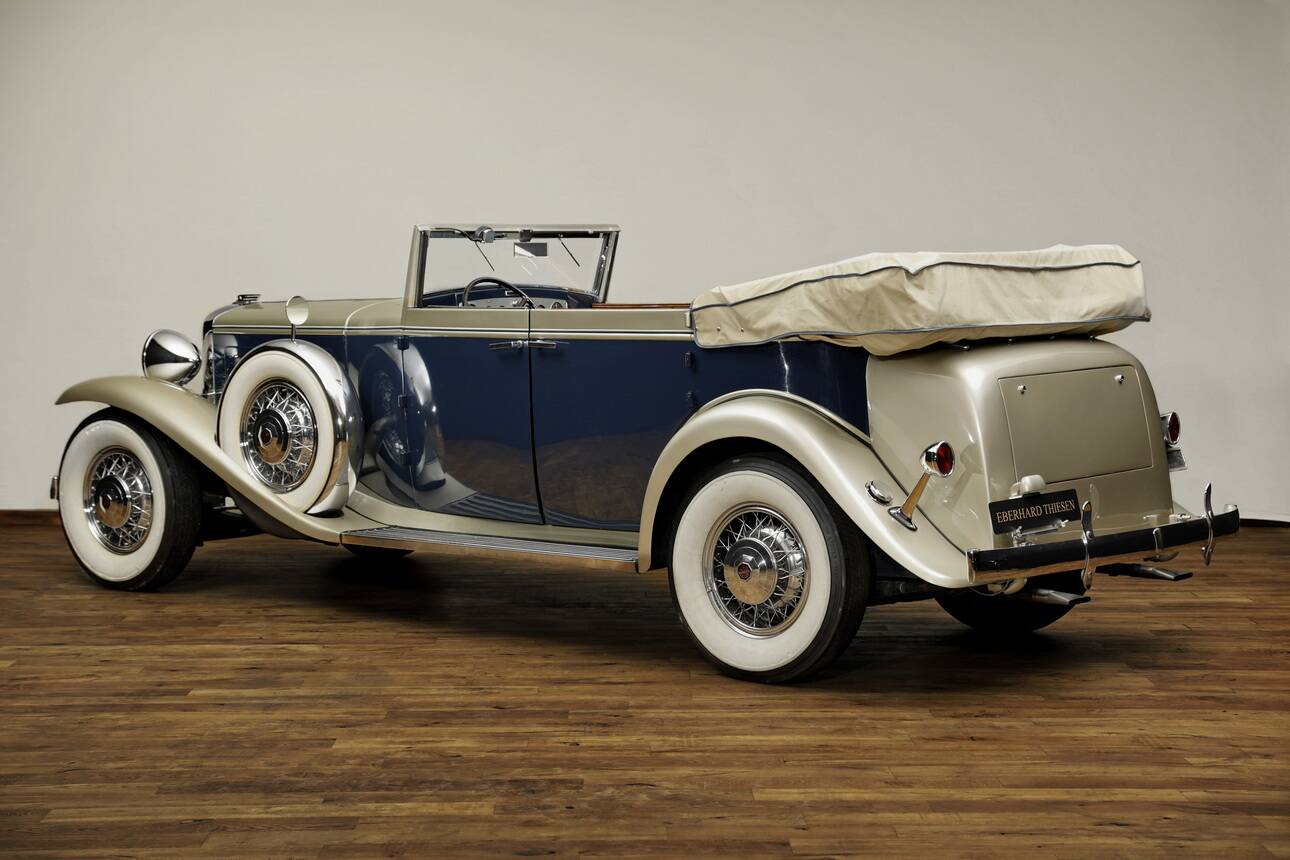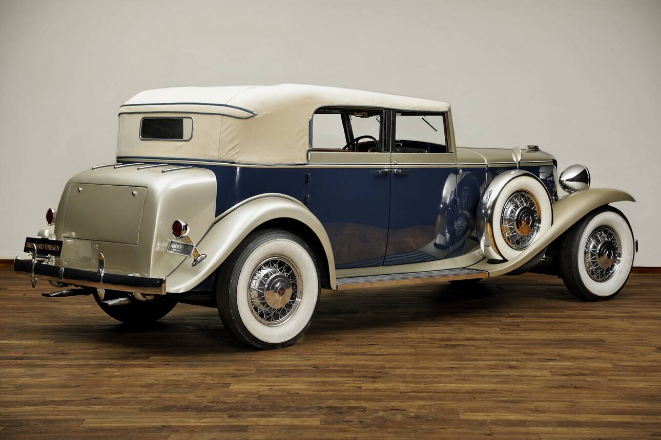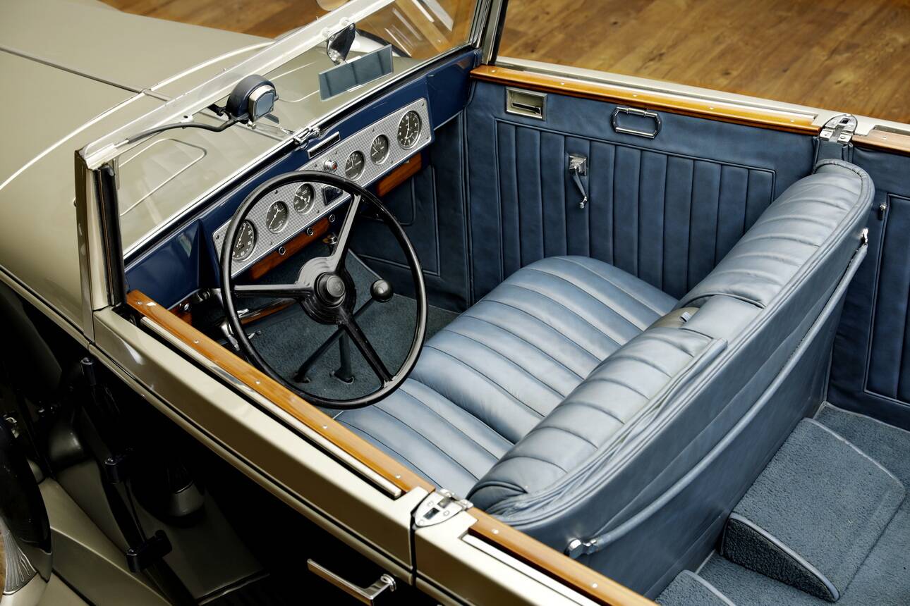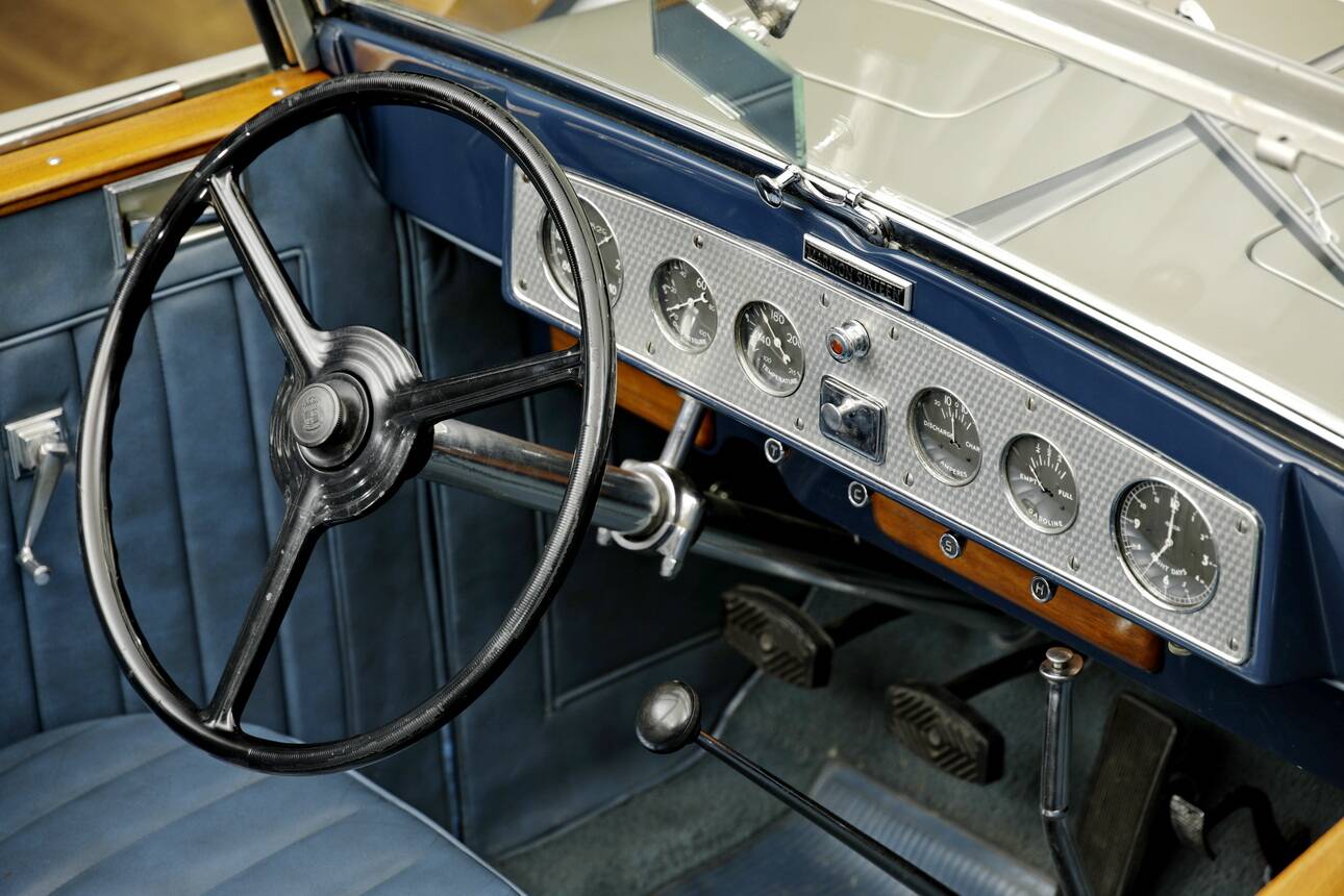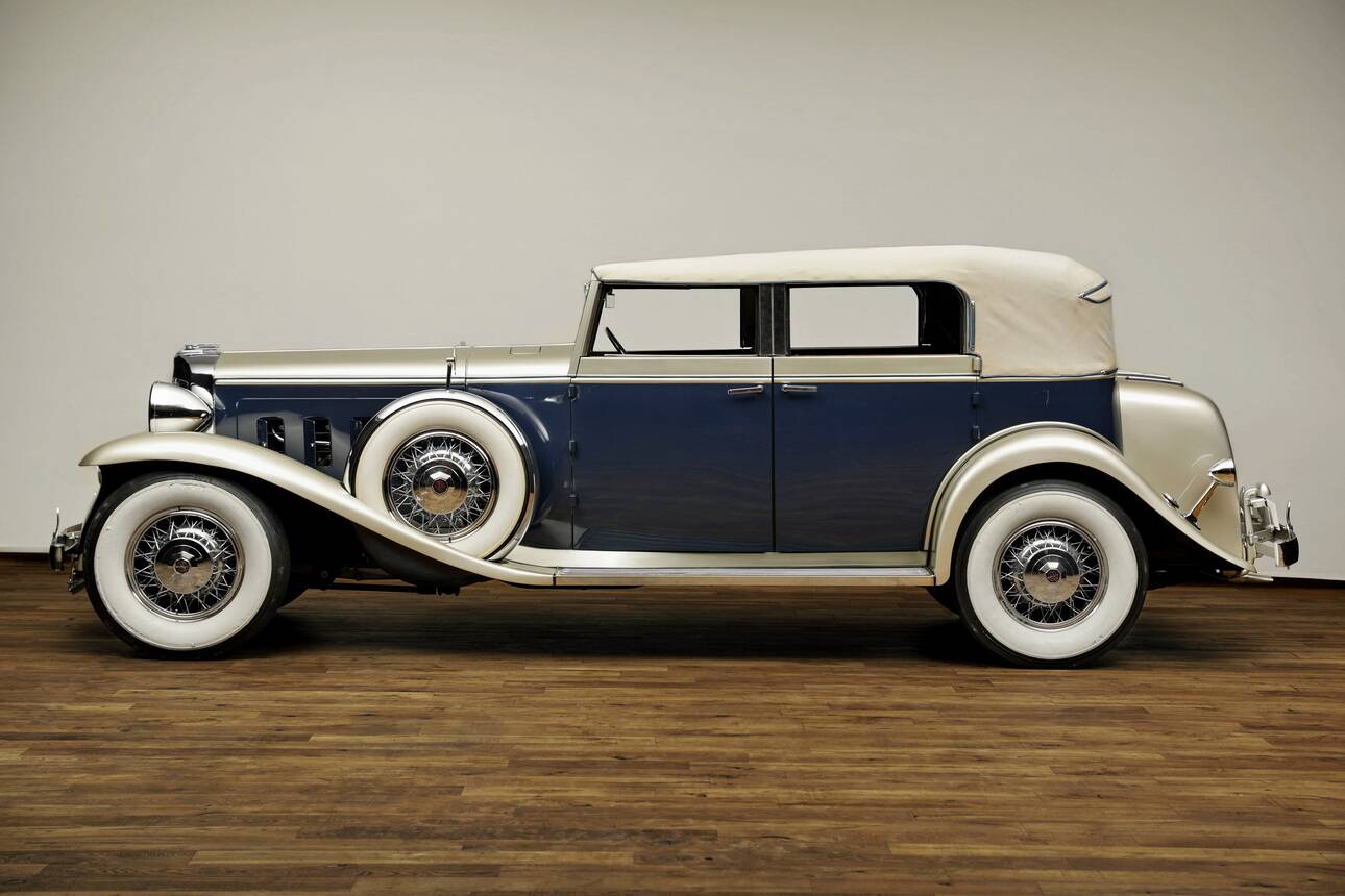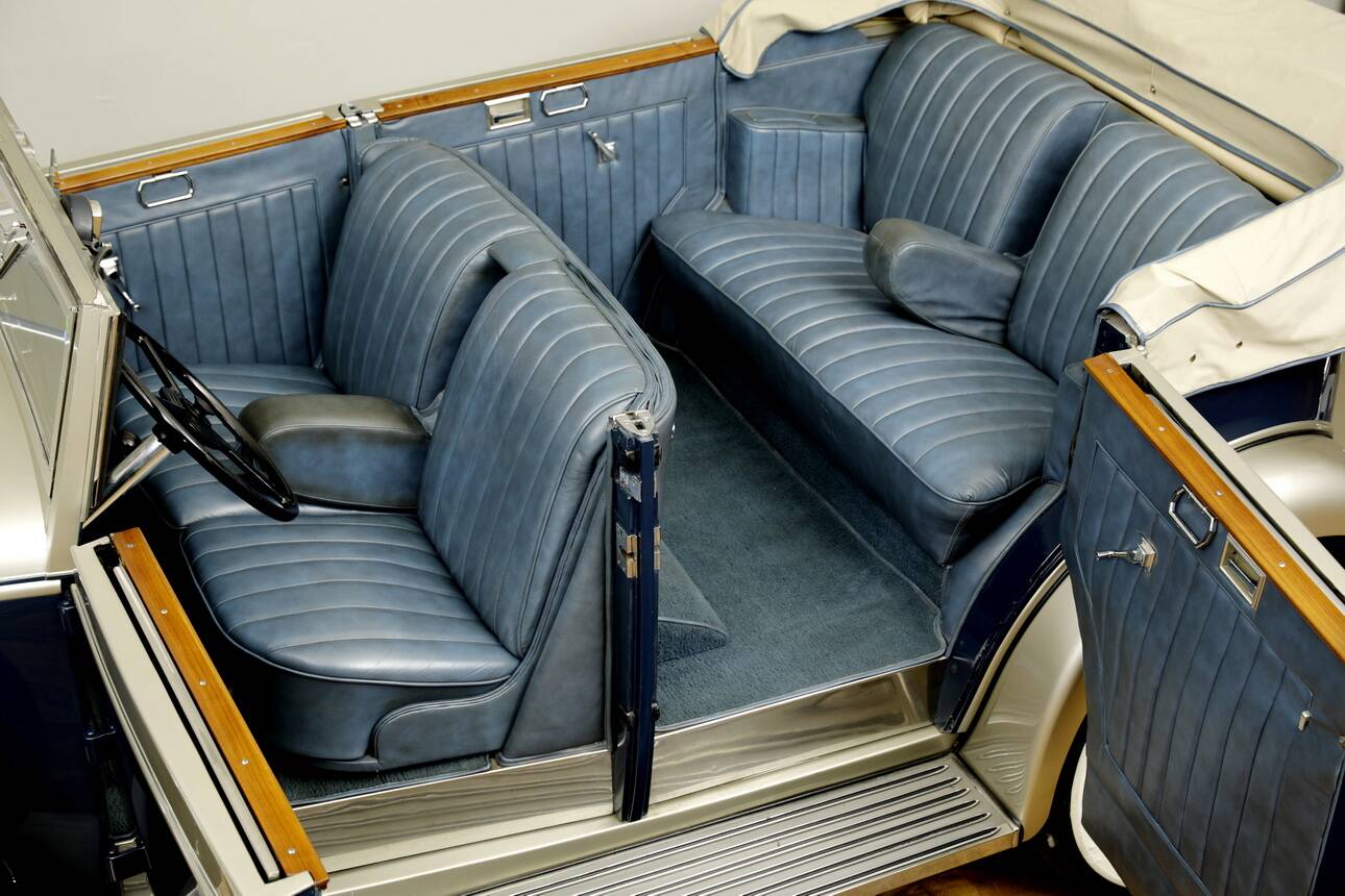 The Marmon V16 was also a technical masterpiece: it had overhead valves and cylinder banks arranged at a 45-degree angle. In addition, the engine block, crankcase, intake manifold, oil pan, cylinder heads and flywheel housing were made of aluminium, making the engine exceptionally light. With a ratio of 6:1, the Marmon also had the highest compression of any American engine at the time. With a displacement of 8,040 cc and 200 hp, it was also more powerful than its competitor Cadillac, and its top speed was measured at 170 km/h. The designation ‘Type 145’ refers to the wheelbase of 145 inches, or approximately 368 centimetres.