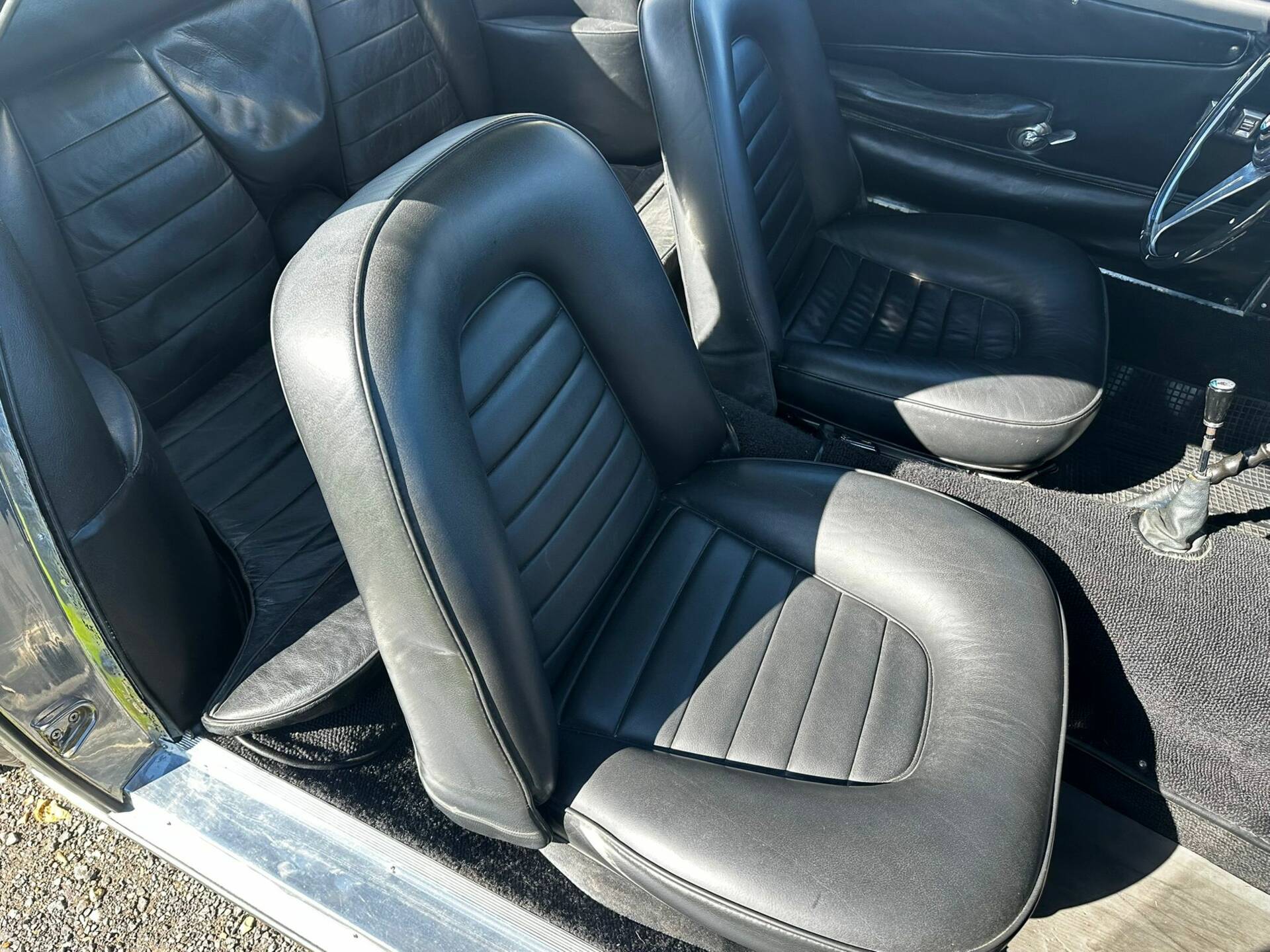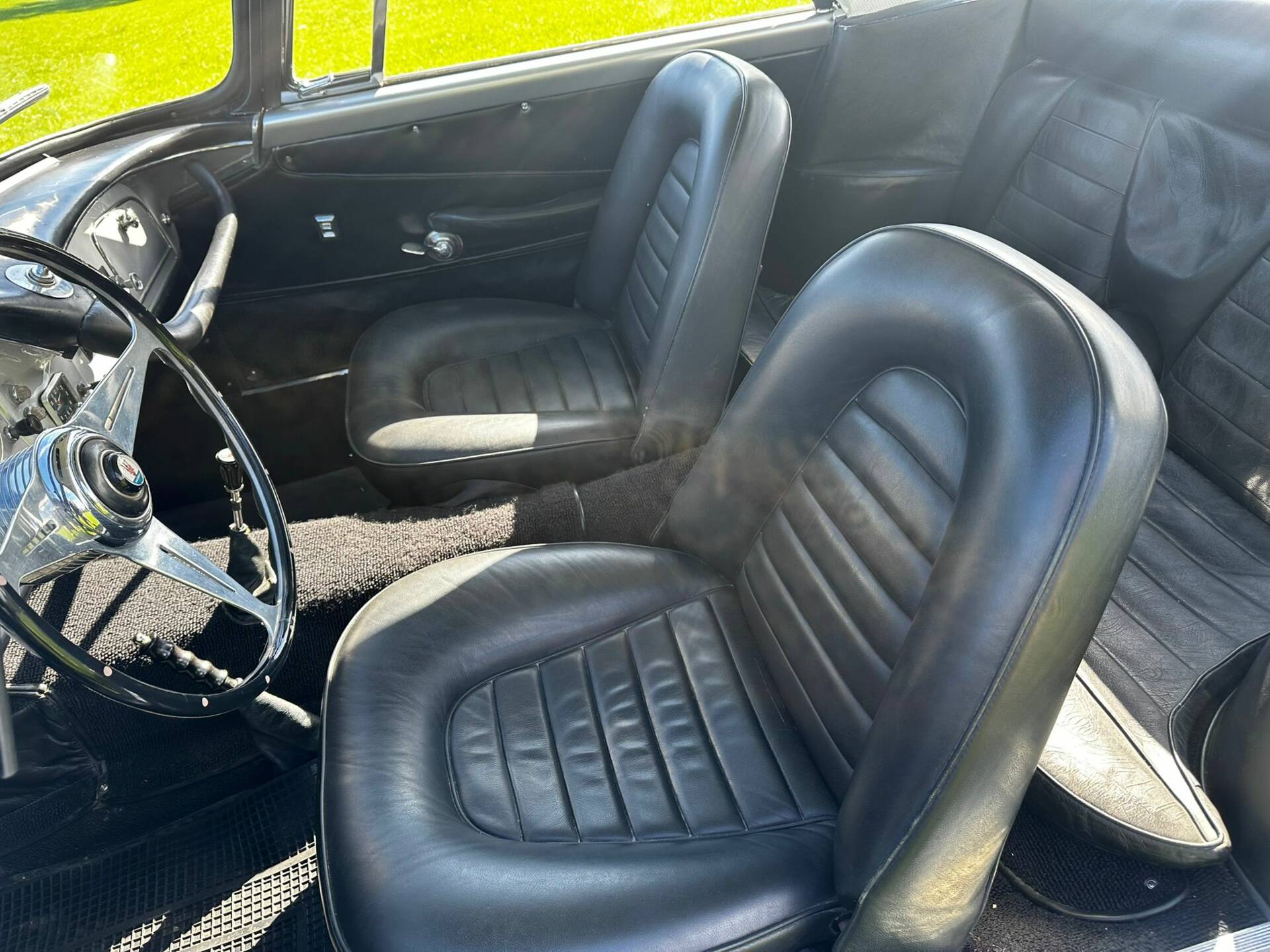 The underneath is in superb rust free original condition, the engine bay is in restored condition and the front seats have been completely restored in Italy. What an incredibly rare and beautiful car that starts, drives and stops as well as it possibly could, especially with its disc brakes all around, hidden behind those exceptional Borrani wire wheels and spinners.