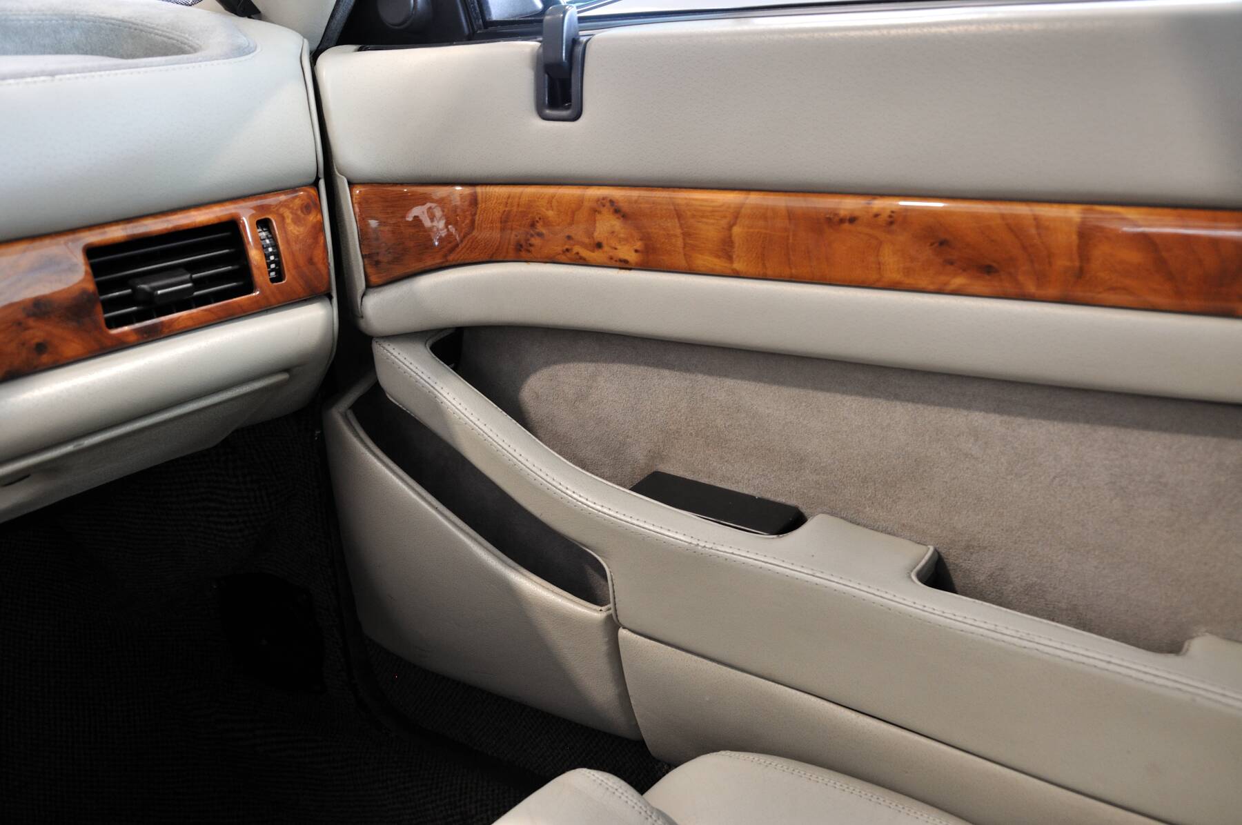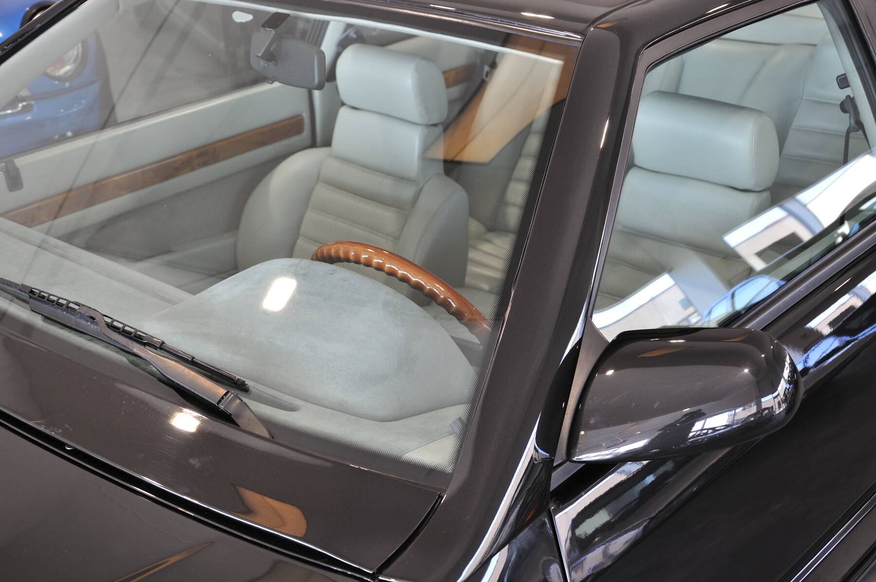 Interni totalmente originali in ottime condizioni, con pelle mai restaurata o verniciata, legni integri e lucenti, segno che la vettura è stata custodita con cura e che il chilometraggio è reale. Revisione valida fino a gennaio 2027.