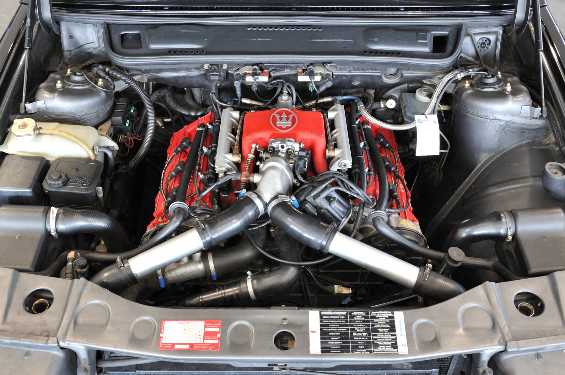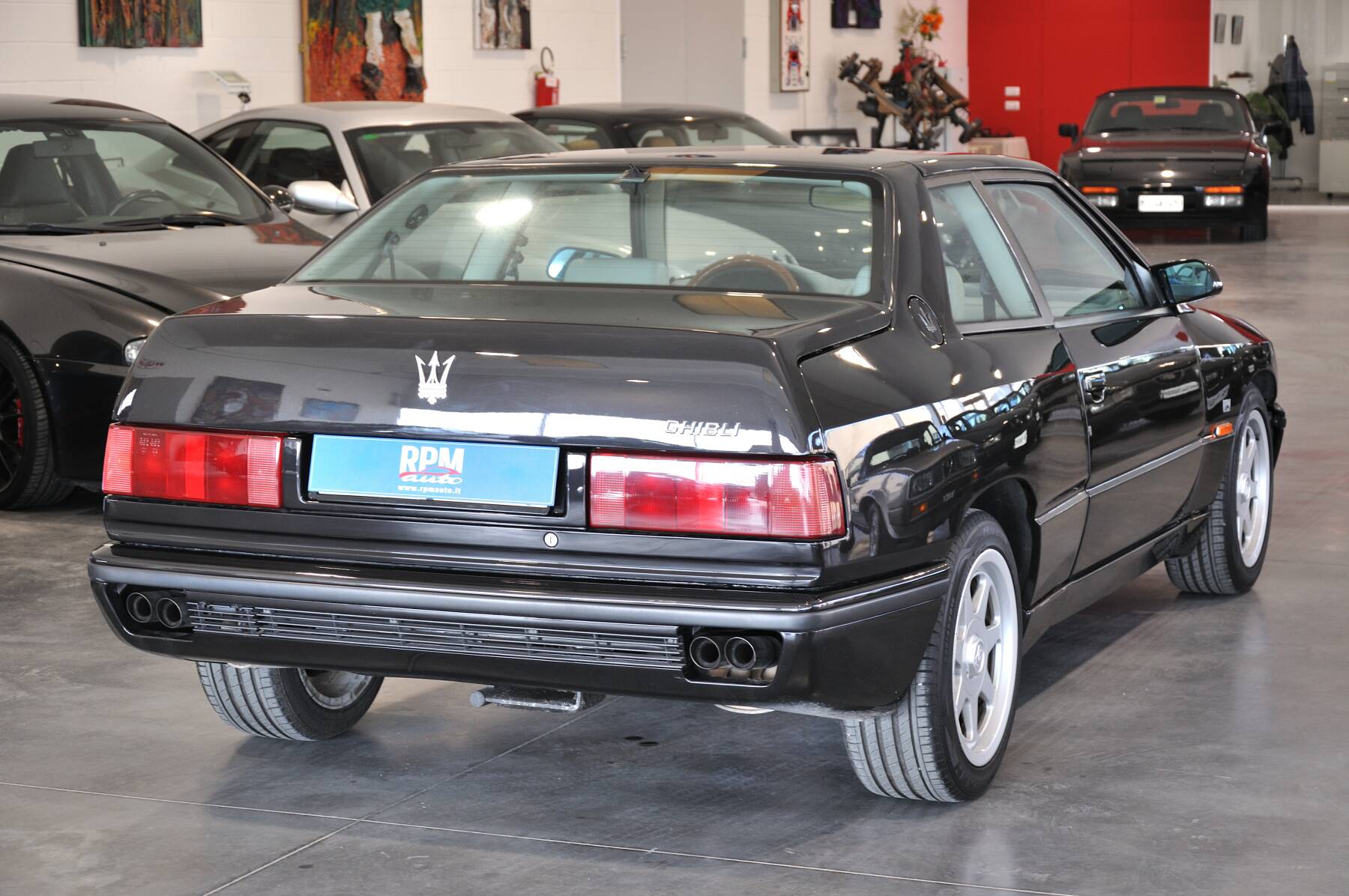 Spettacolare Maserati Ghibli, colore Nero Sideral metallizzato con interni in pelle grigio chiaro, prime targhe e libretto dal 1994, doppie chiavi, kit completo di manuali di bordo con carpetta in pelle originale Maserati, brochure modello, trousse attrezzi originale, iscrizione ASI con CRS, telo con logo Maserati, storico della manutenzione.