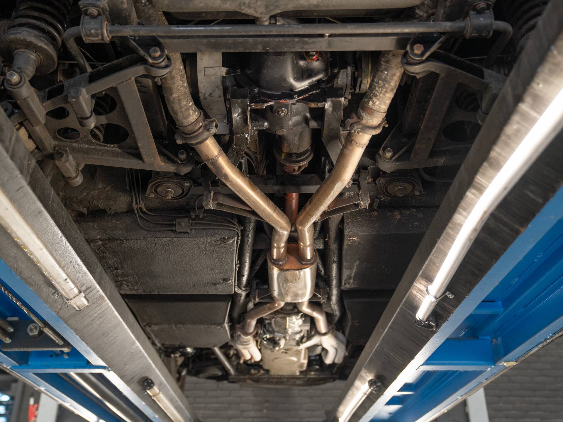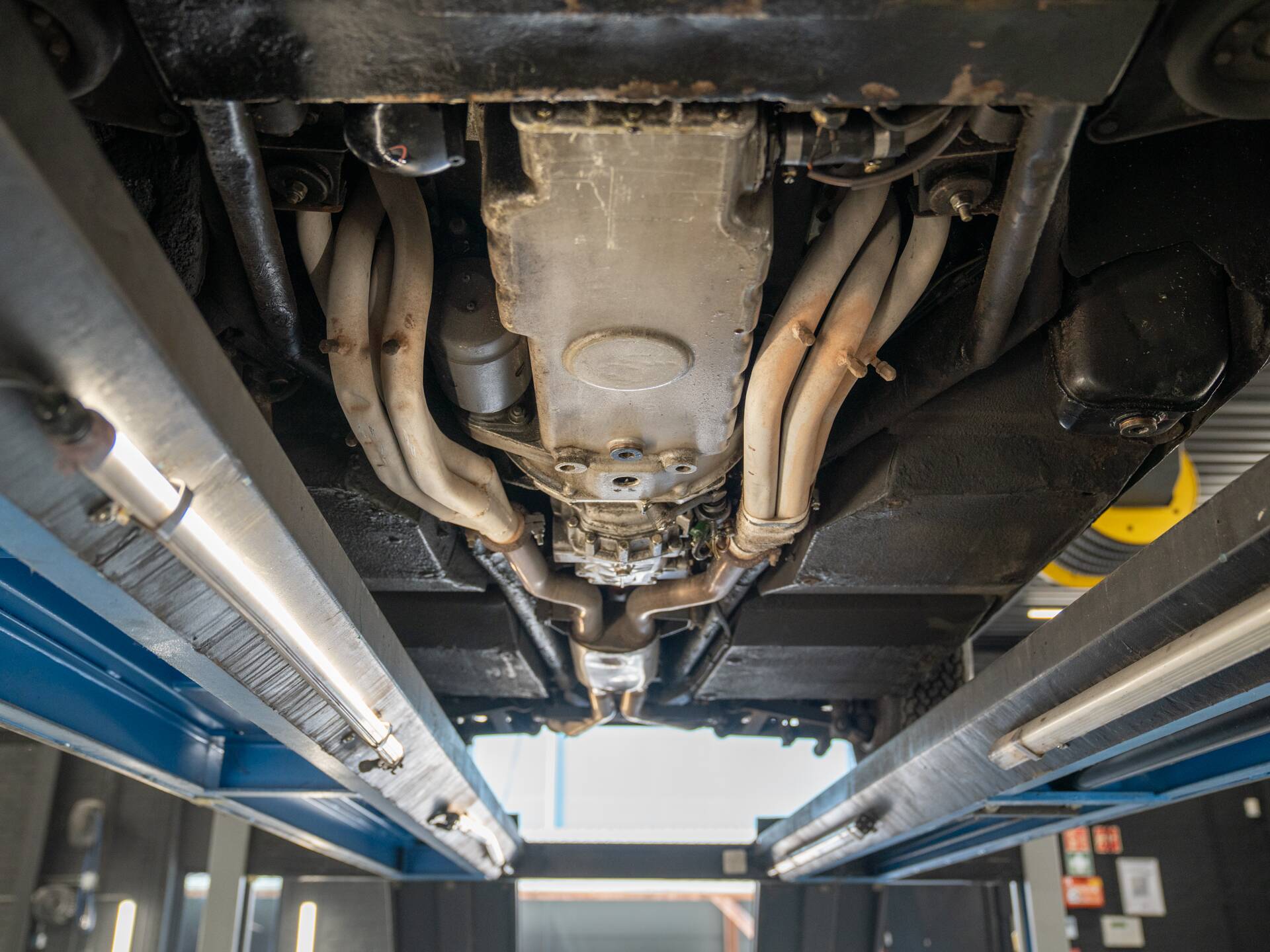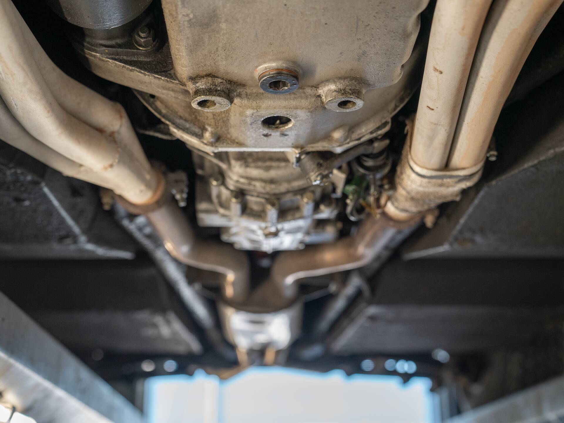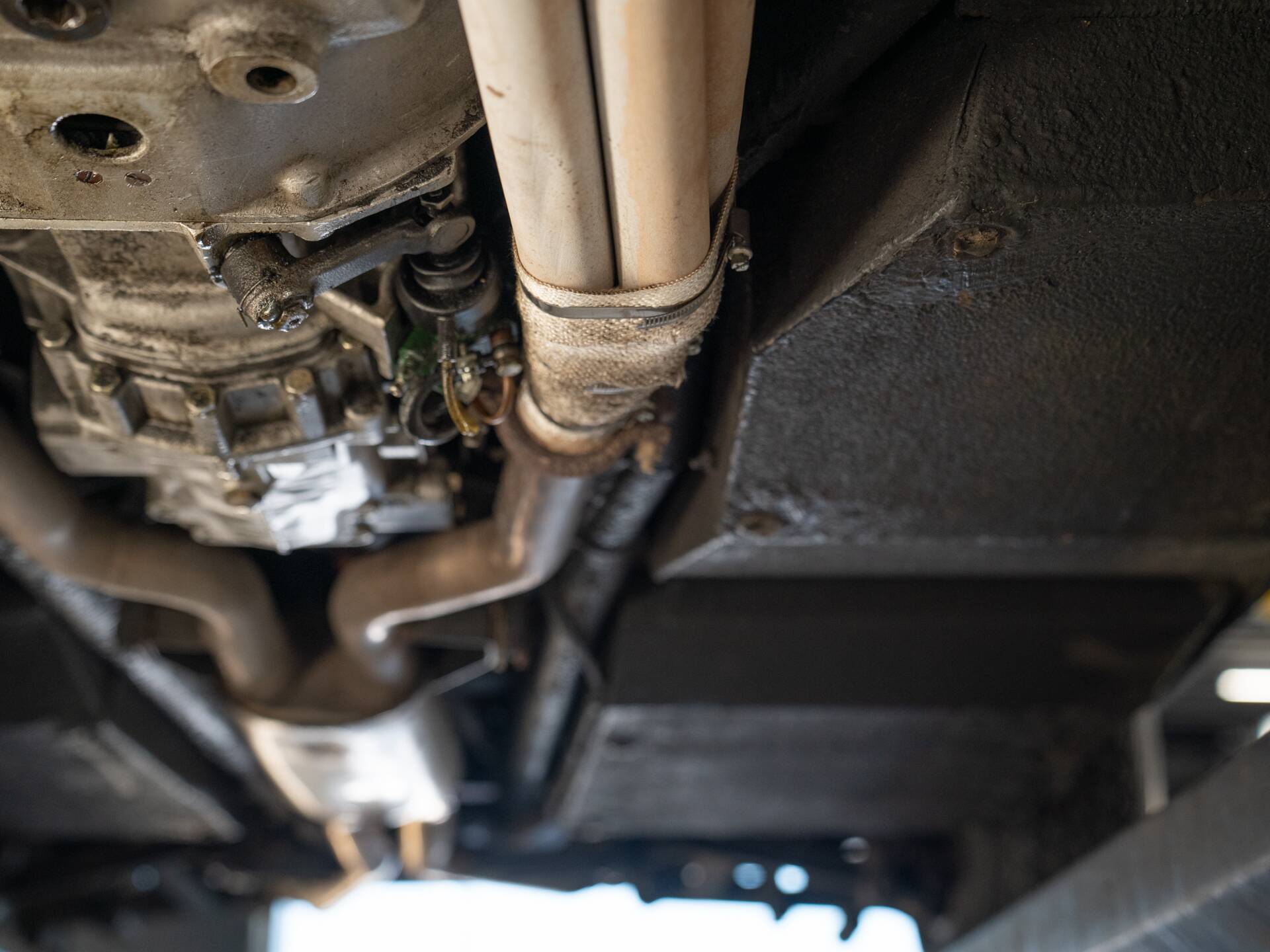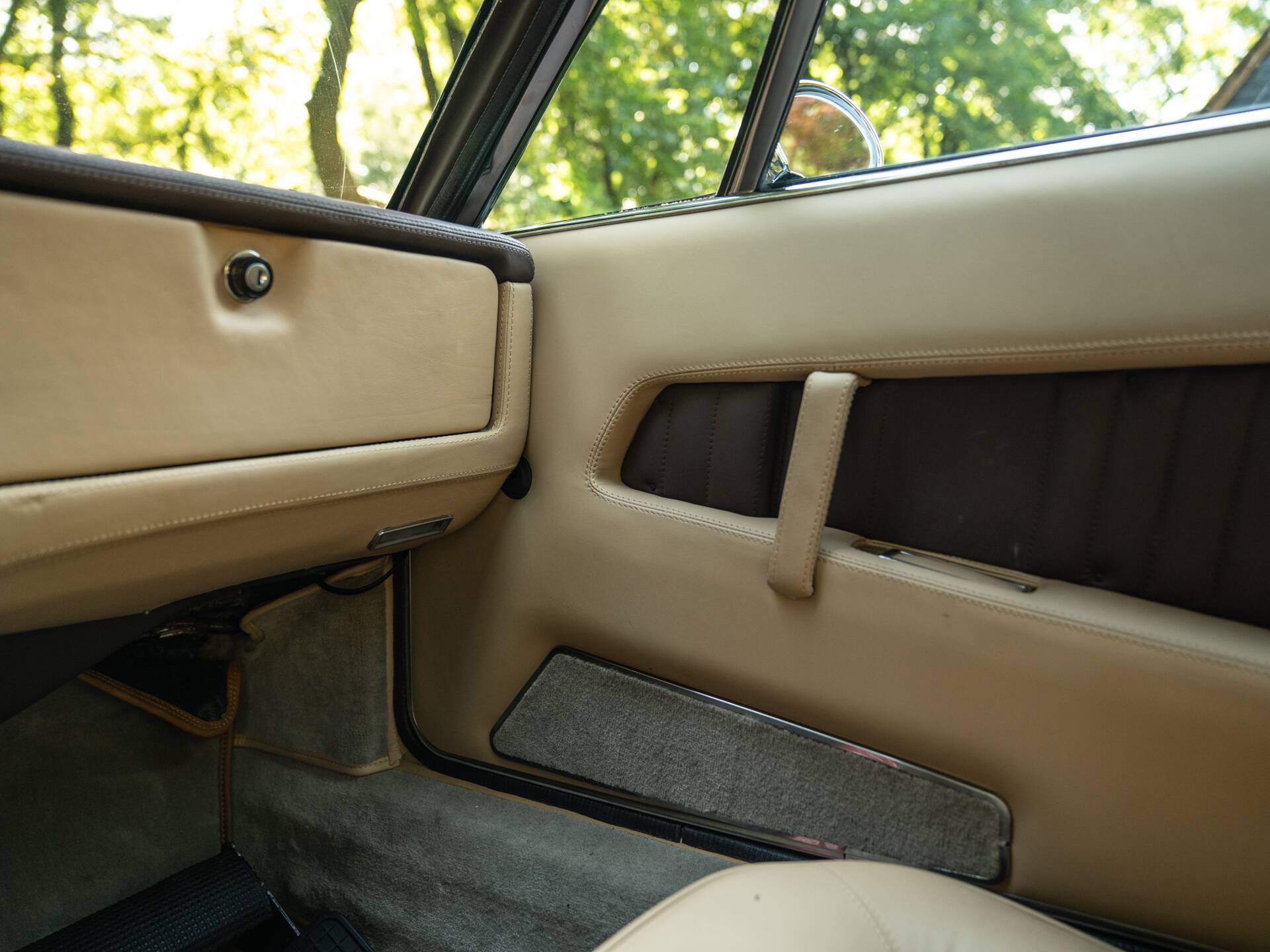 Beautiful on the outside, beautiful on the inside: the seats are upholstered in stunning beige leather, echoed on the door panels and center console. Much of the dashboard is also finished in beige, contrasted by a coffee-colored upper section and a black three-spoke Nardi steering wheel. Note the ruler-straight layout of the instrument cluster and the exceptionally wide center tunnel. This cockpit is pure, timeless style. What class, what charisma, what an extraordinary design icon! Remarkably comfortable too, with genuinely sporty handling. And importantly: the original air conditioning functions as it should.