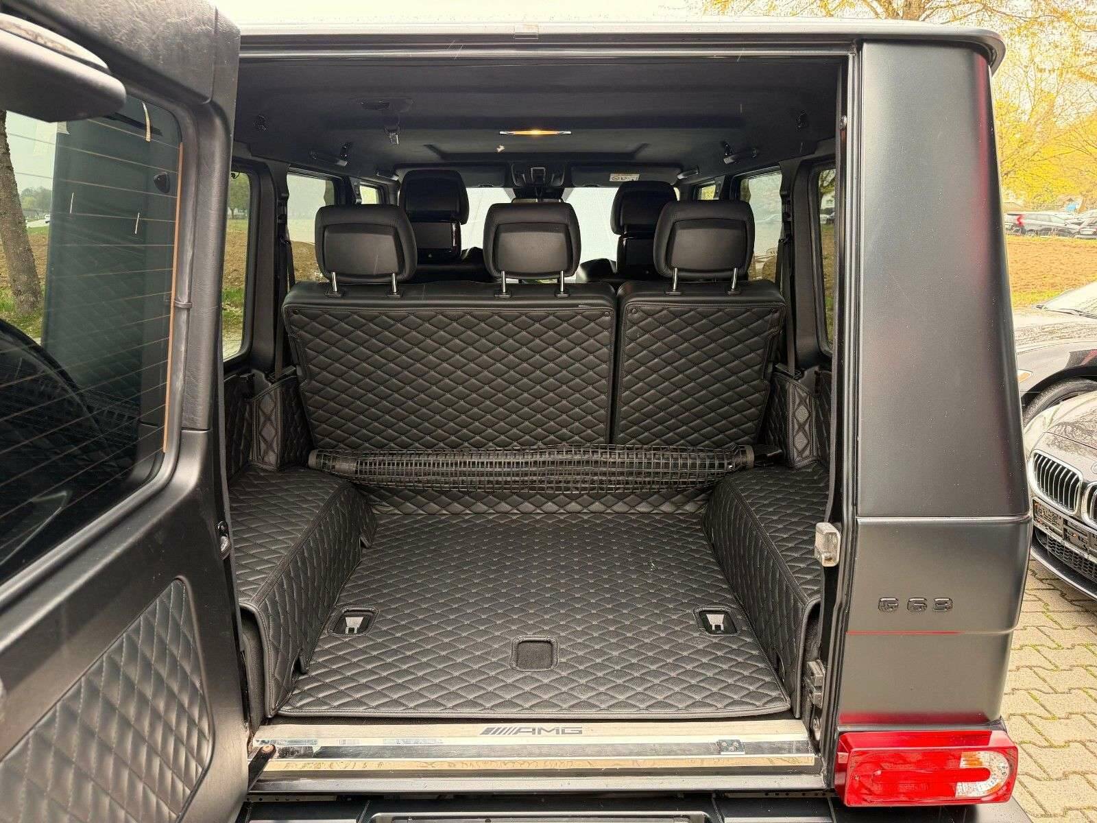 AMG Driver's Package, Ausführung designo-manufaktur, Ausstattungs-Paket: designo Exklusiv (Leder), Außenspiegel mit Totwinkel-Assistent, DAB-Tuner (Radioempfang digital), Entertainment-System im Fond (2 Bildschirme), Getränkehalter hinten, Gummimatten in Fahrgast-/Laderaum, Lackierung: designo magno, Ladungsschutz-Paket, Media Interface (Universal-Schnittstelle für iPod / AUX / USB / MP3), Parktronic-System PTS (vorn und hinten), Rückfahrkamera, Schiebe-/Hebedach elektrisch, Seitenscheiben hinten abgedunkelt, Seitenschutzleisten, Sender für Garagentoröffner (integriert), Sitz-Komfort-Paket, Sound-System Harman-Kardon mit Logic7-Surround-System, TV-Tuner, analog und digital, Vorrüstung Mobiltelefon/Handy / Komfort-Telefonie / LTE-fähig, Zusatzheizung (Standheizung) mit Fernbedienung + 2 Satz Winterräder auf Felgen