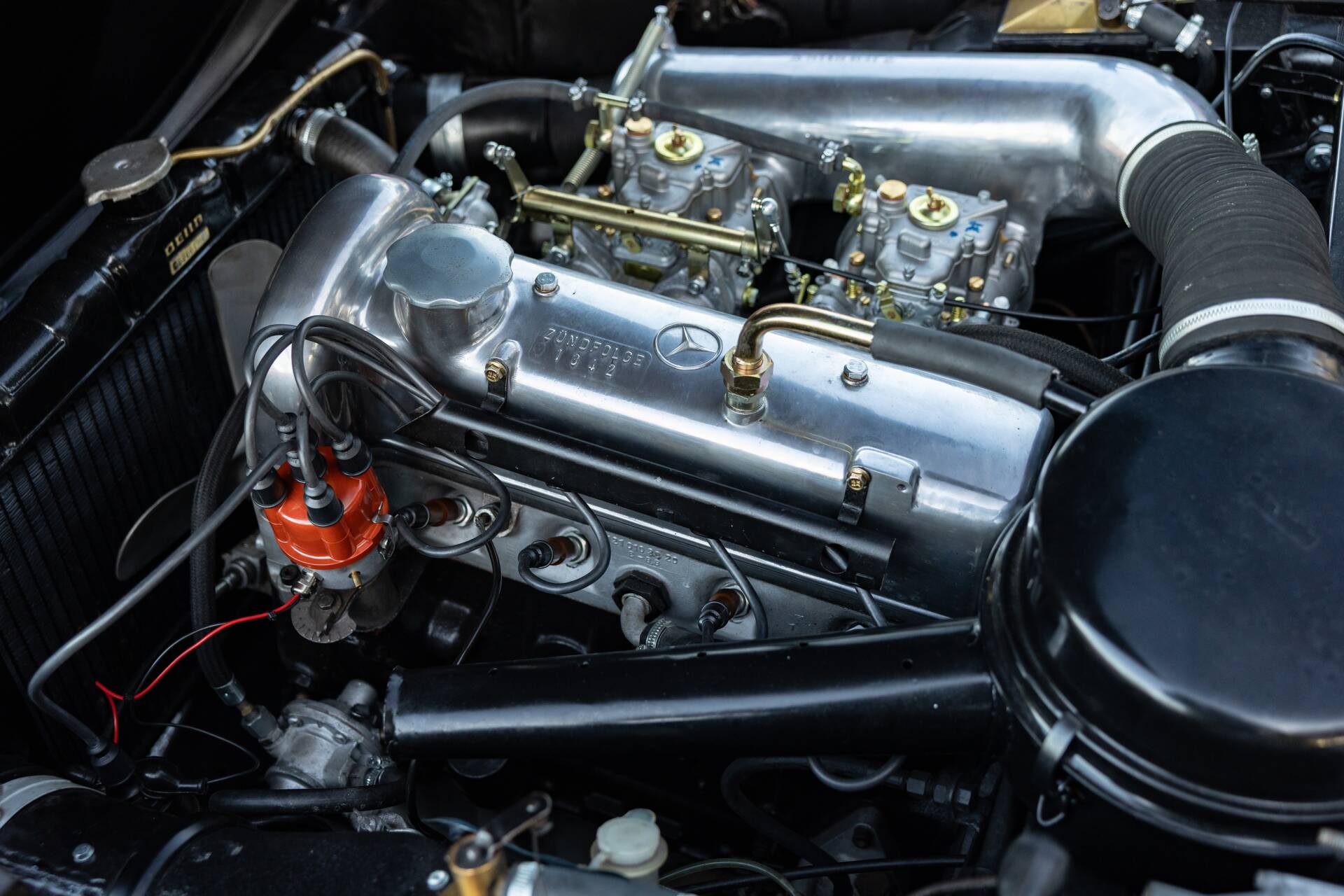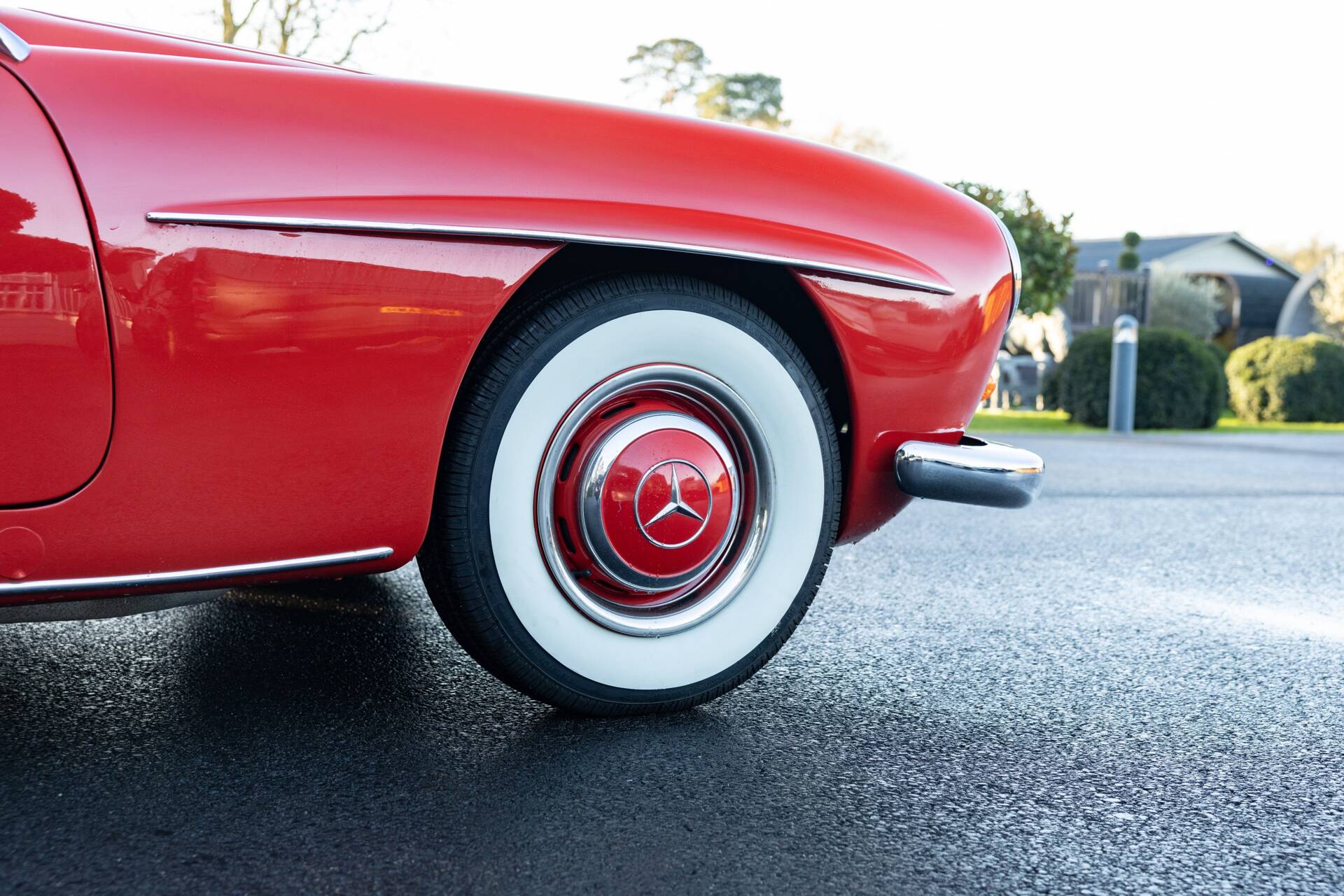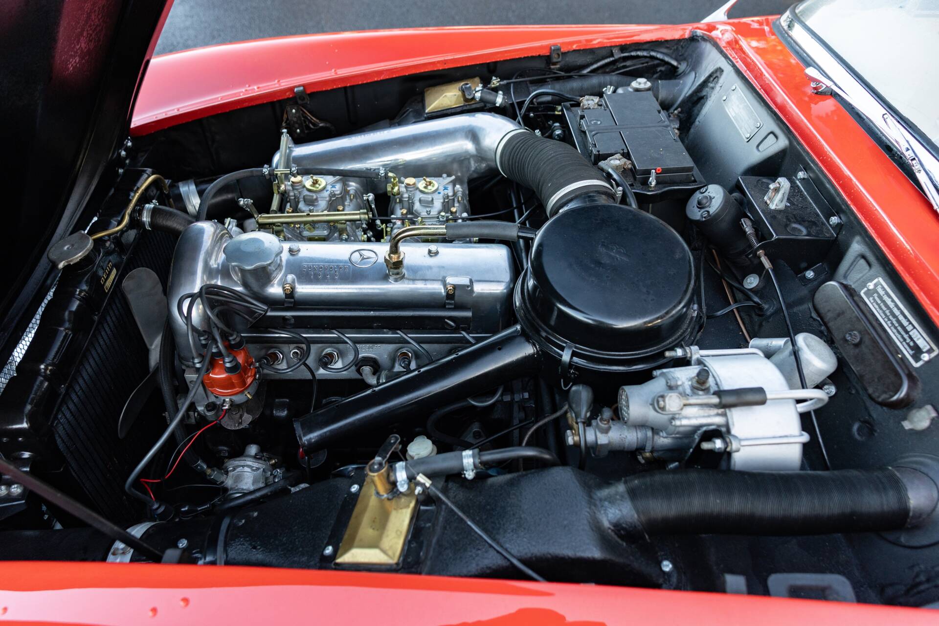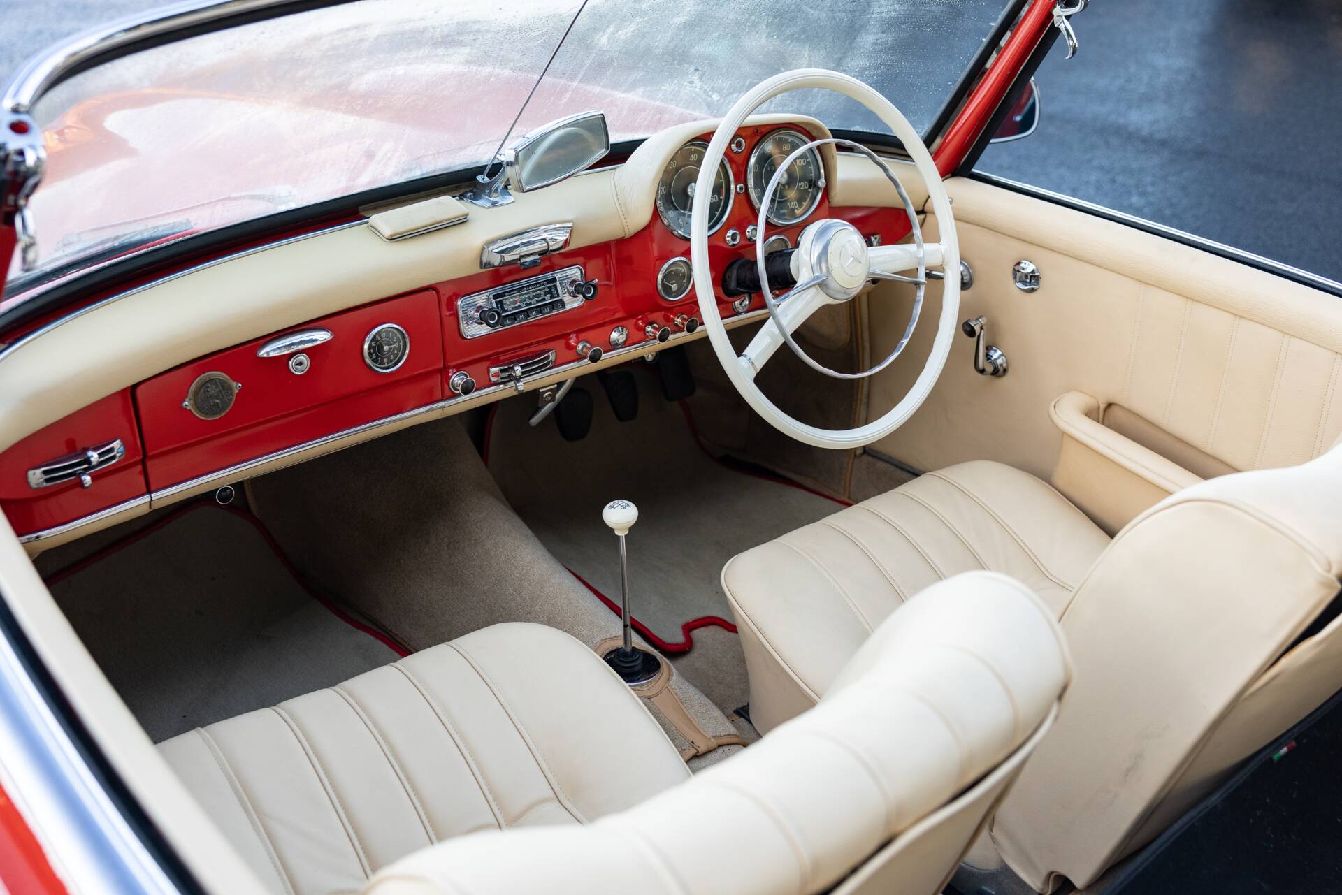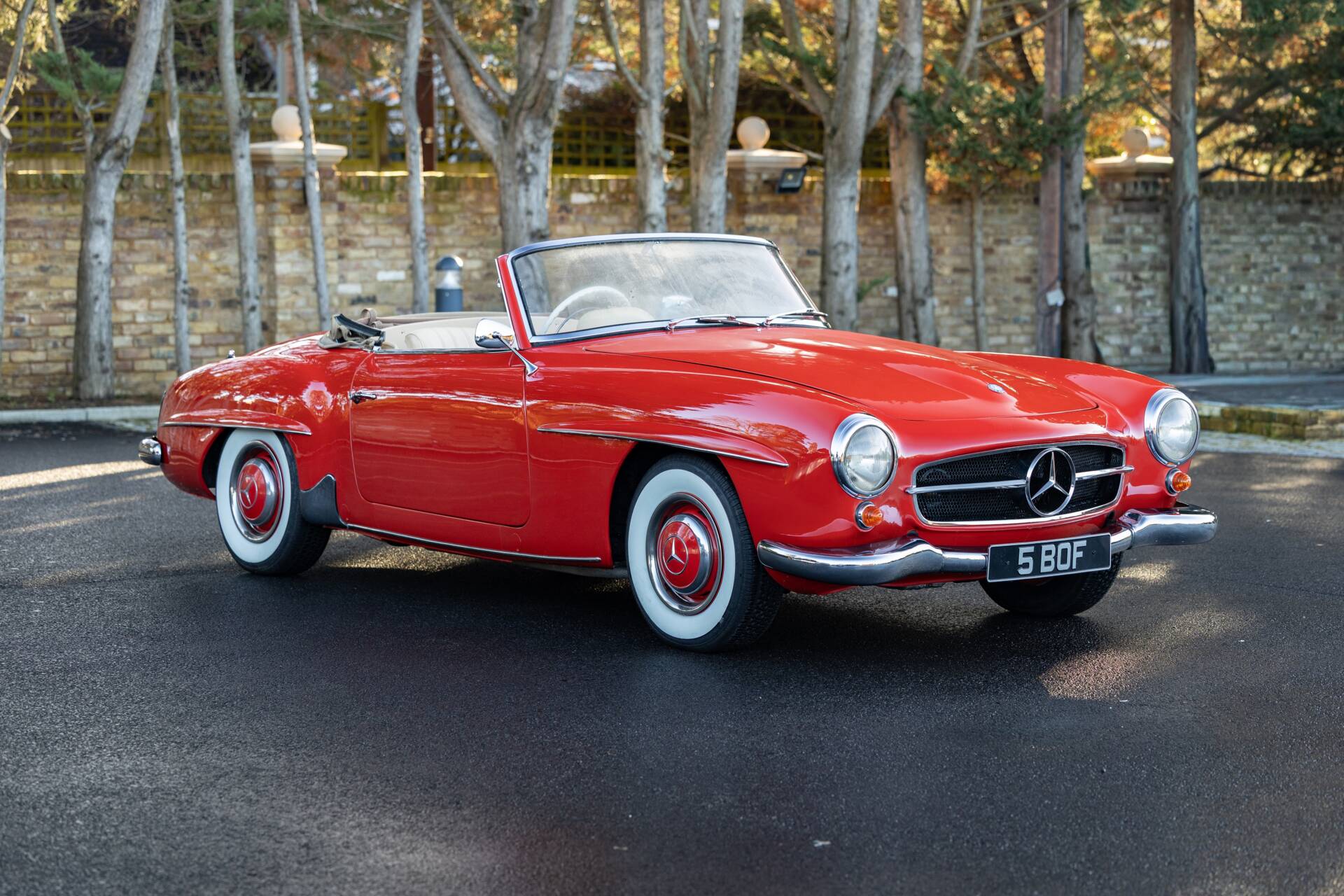 Only a few right-hand drive examples were supplied new to the UK market during the 1959 model year, this example was one of those few, chassis 121.040-20-014566 was originally finished in the striking colour of red with a new beige hood. Issued with registration number '5 BOF' on 23rd September 1959 and still retaining the number, this example has spent the majority of its life in Surrey. One of only 562 units manufactured by Mercedes-Benz in right hand drive guise throughout the eight-year production run, this 190 SL presents exceedingly well. The vendor has just spent circa £12,000 on this Mercedes-Benz, including new carburettors, fuel pump and a thorough engine tune. Shod with a good set of whitewall tyres which help accentuate the shiny Fire Engine Red paintwork. The glovebox has an inset clock and the dashboard carries a Becker Mexico radio which is thought to be original to the car. Ultimately, the Mercedes-Benz 190 SL stands as a car that embodied the glamour of postwar Europe and the growing international reputation of Mercedes-Benz. It wasn't the fastest sports car of its time, but it delivered style, quality, and everyday usability, making it an enduring classic and a cornerstone of Mercedes-Benz's rich heritage in open-top motoring. Consigned by Stewart Banks.