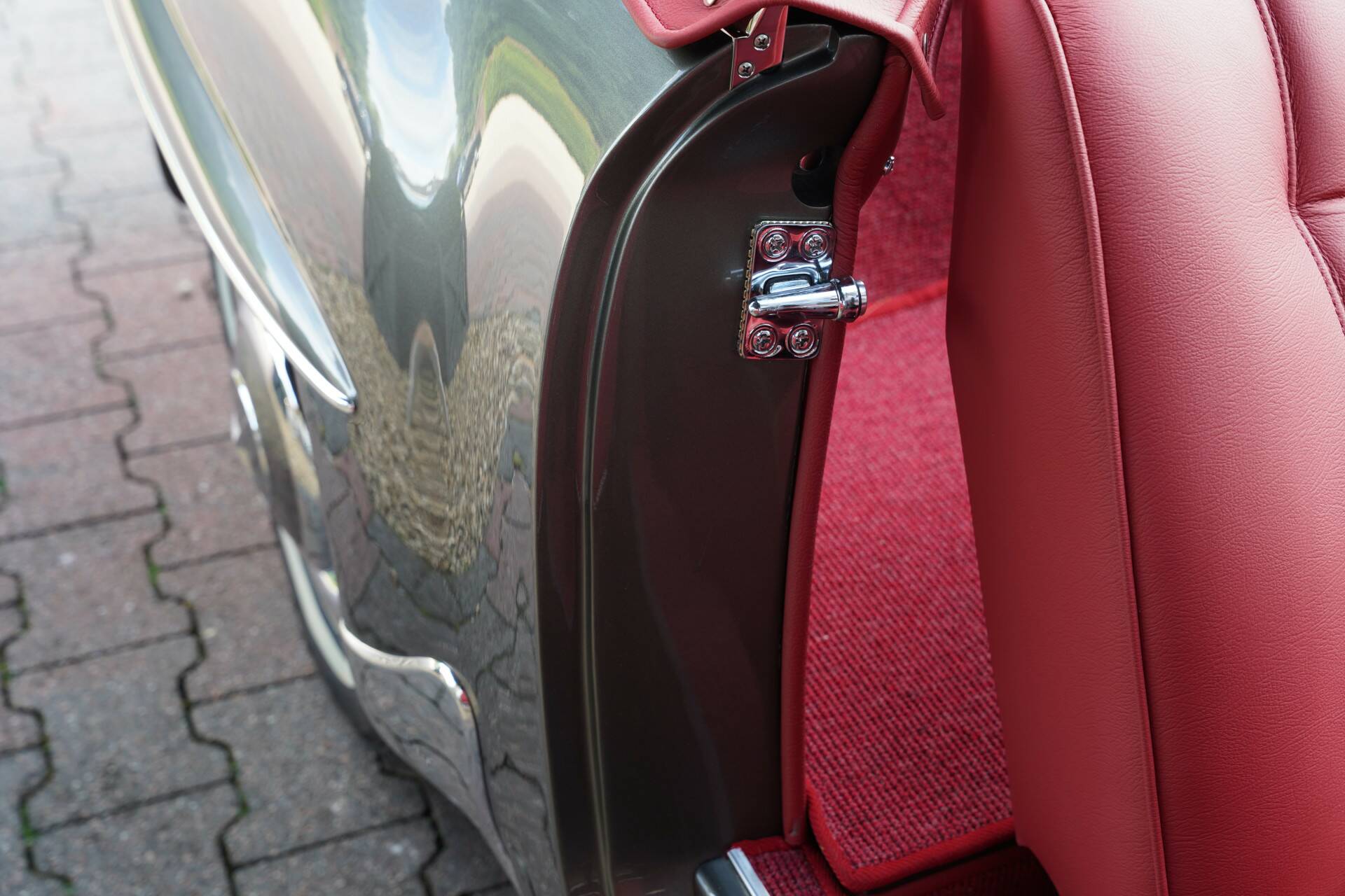 Let’s start with the exterior. The body was stripped down to bare metal before every panel was meticulously restored and resprayed in an elegant Anthracite Grey Metallic. It’s a color that perfectly complements the flowing, timeless lines of the 190 SL. The panel gaps are tight and consistent, and the fit of the doors, hood, and trunk is exactly as it should be. All chrome elements have been renewed and now gleam with flawless brilliance.