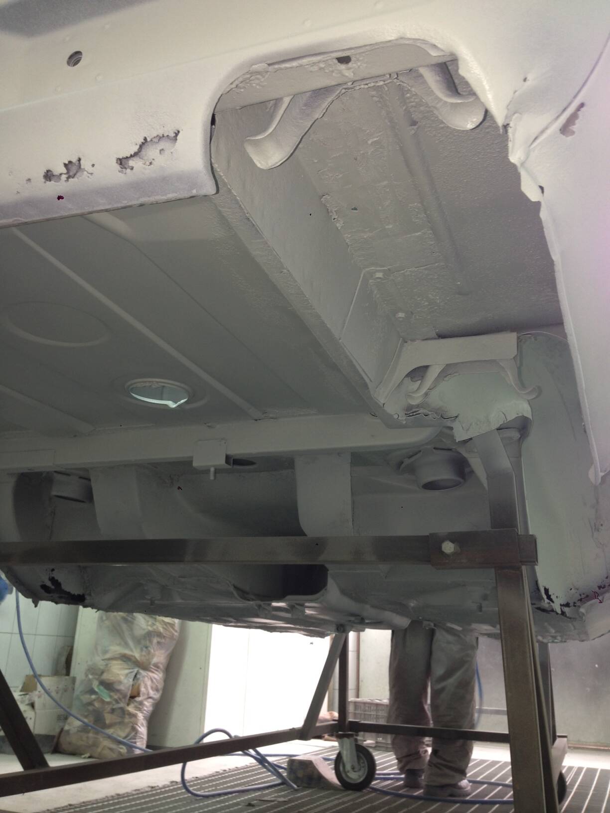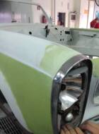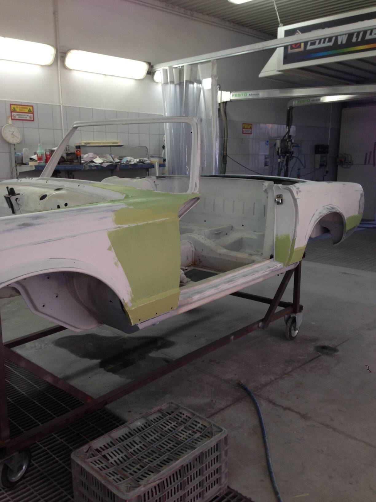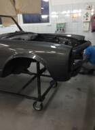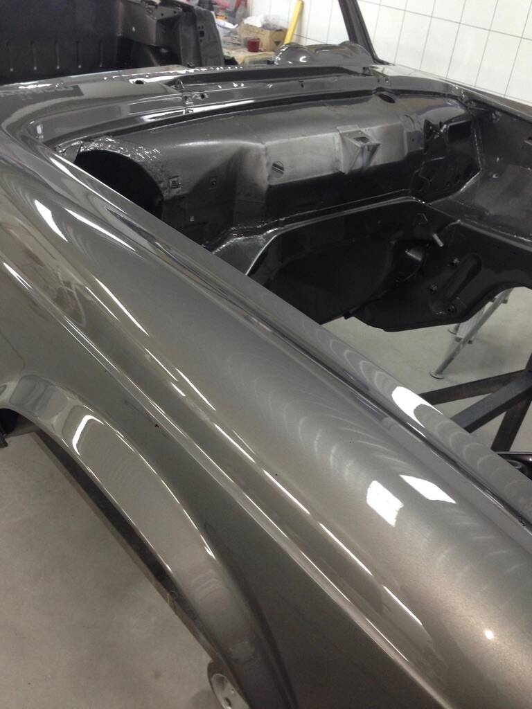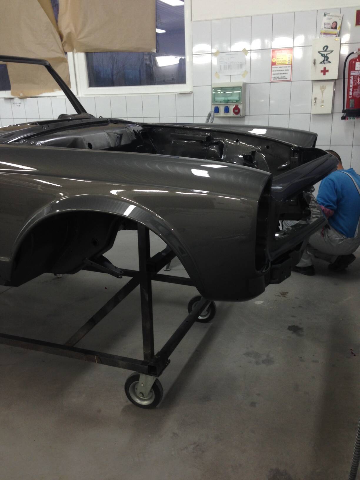 Die Karosserie zeigt sich nach Kalifornien-Import in außergewöhnlich originalem Zustand. Die behutsame Entlackung erfolgte größtenteils chemisch, lediglich an zwei Stellen wurde zur Substanzschonung Glasperlenstrahlen eingesetzt. Die Linienführung der Pagode bleibt so authentisch erhalten; die Spaltmaße und Blecharbeiten geben laut Restaurierungsdokumentation keinen Anlass zu Beanstandungen. Der Lack wurde nach deutschen Qualitätsstandards erneuert und präsentiert sich heute im zeitgenössischen, typischen Farbton. Amerikanische Exportleuchten und Details sind erhalten oder fachgerecht zurückgebaut.